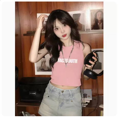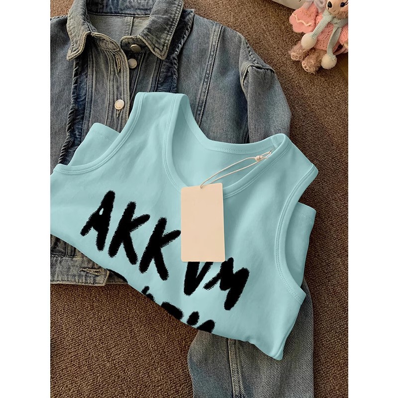 여름 조끼 2025 새로운 여성 스포츠 민소매 코튼 티셔츠 웨이스트 코트 여름 T 솔리드 컬러 셔츠스토어 가기