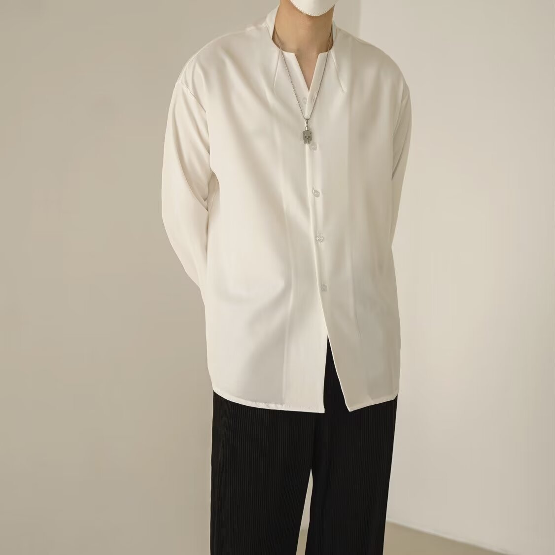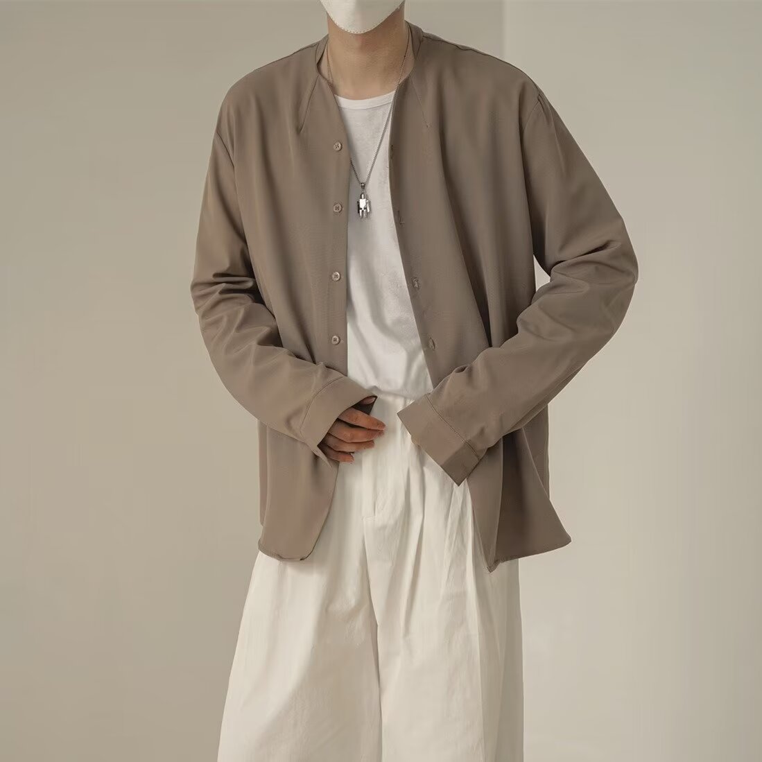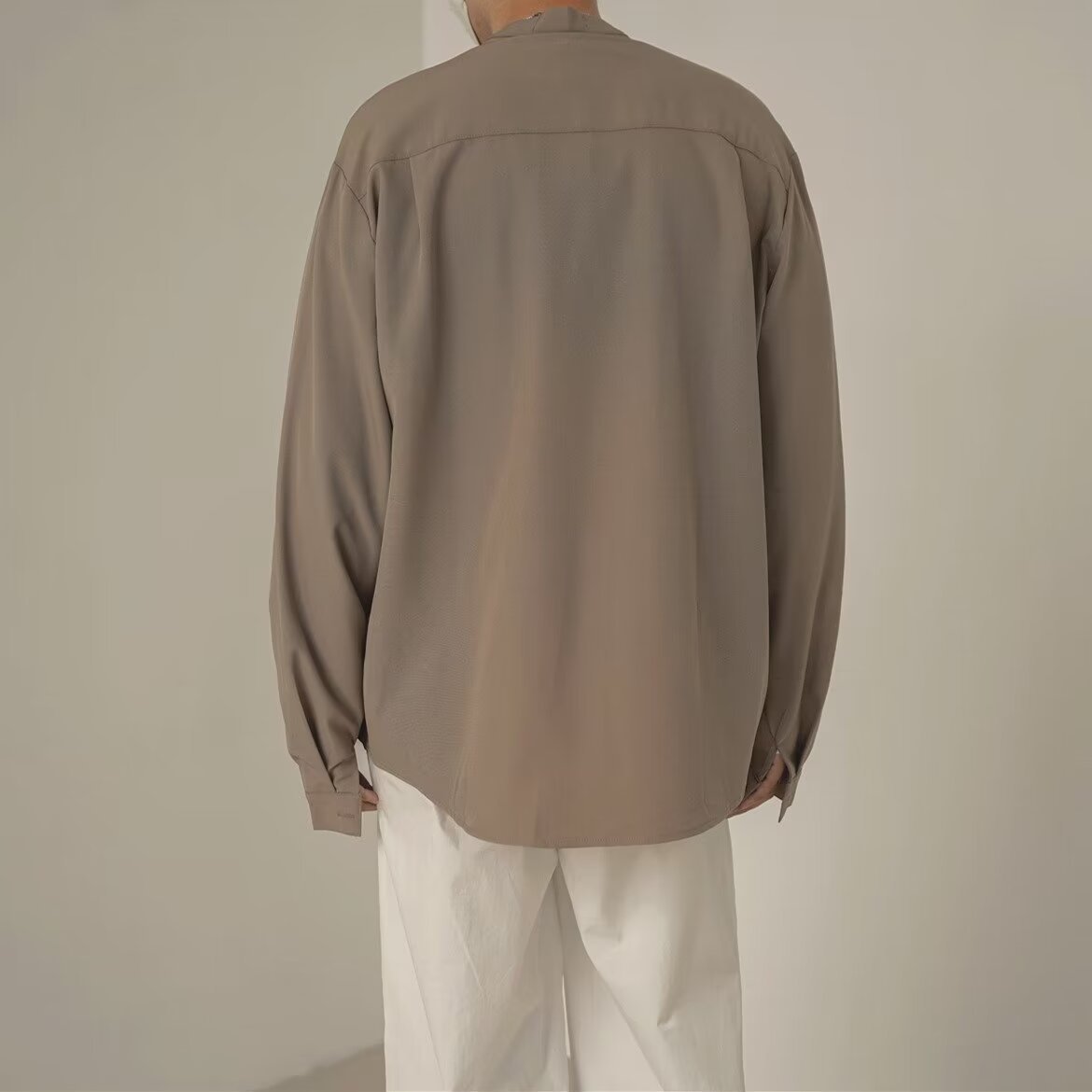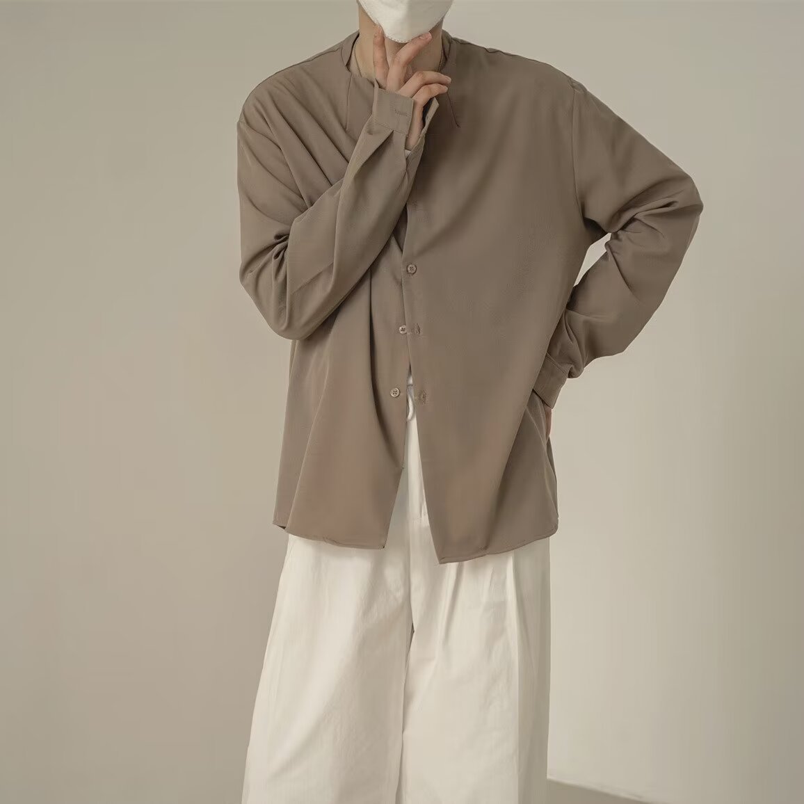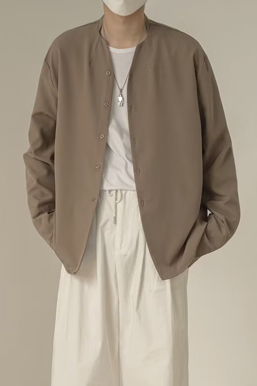 프랑스 하이 엔드 솔리드 컬러 셔츠 남성용 틈새 디자인 칼라리스 긴소매 최고 게으른 스타일 레트로 셔츠 재킷스토어 가기