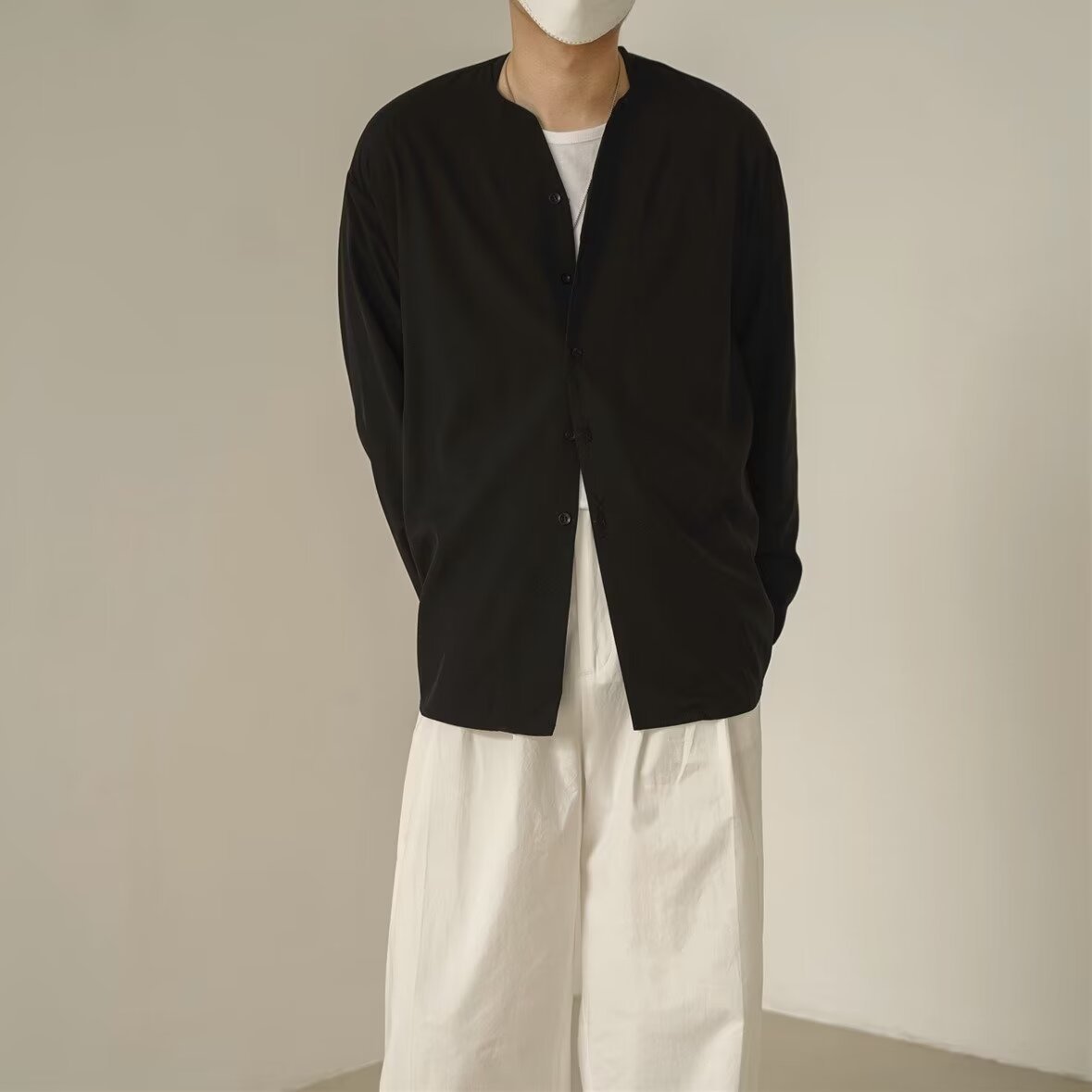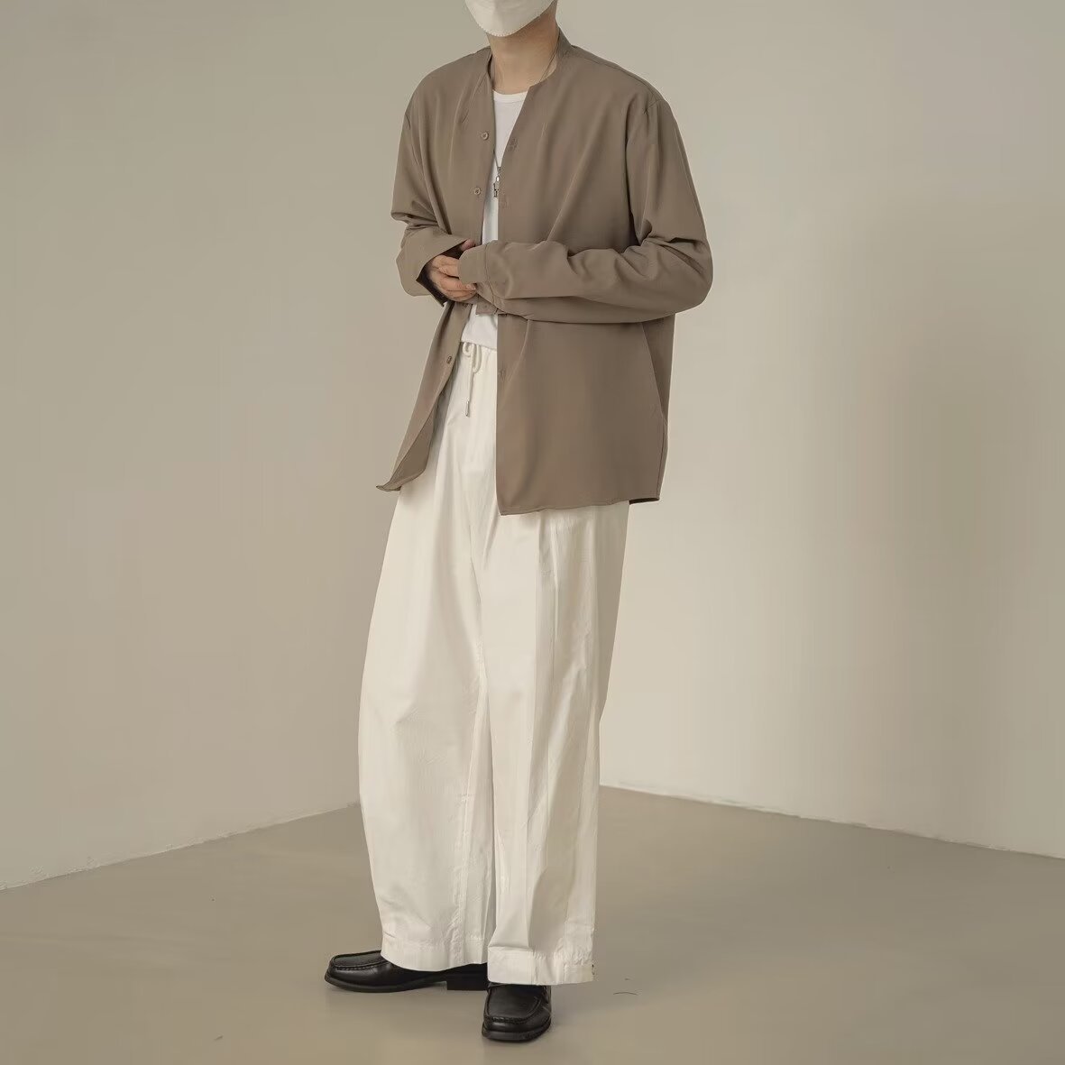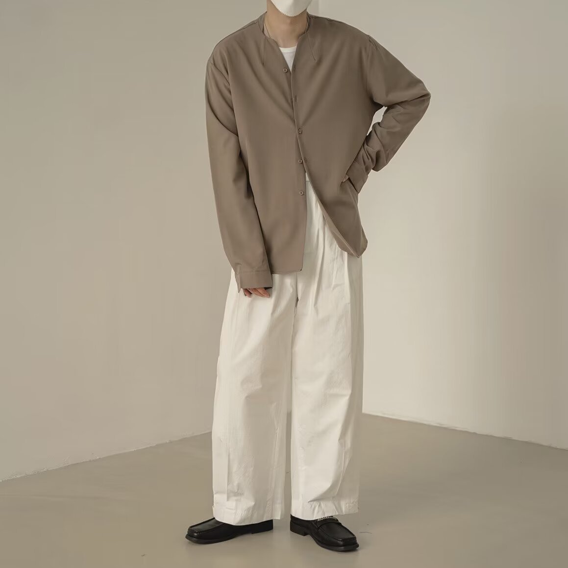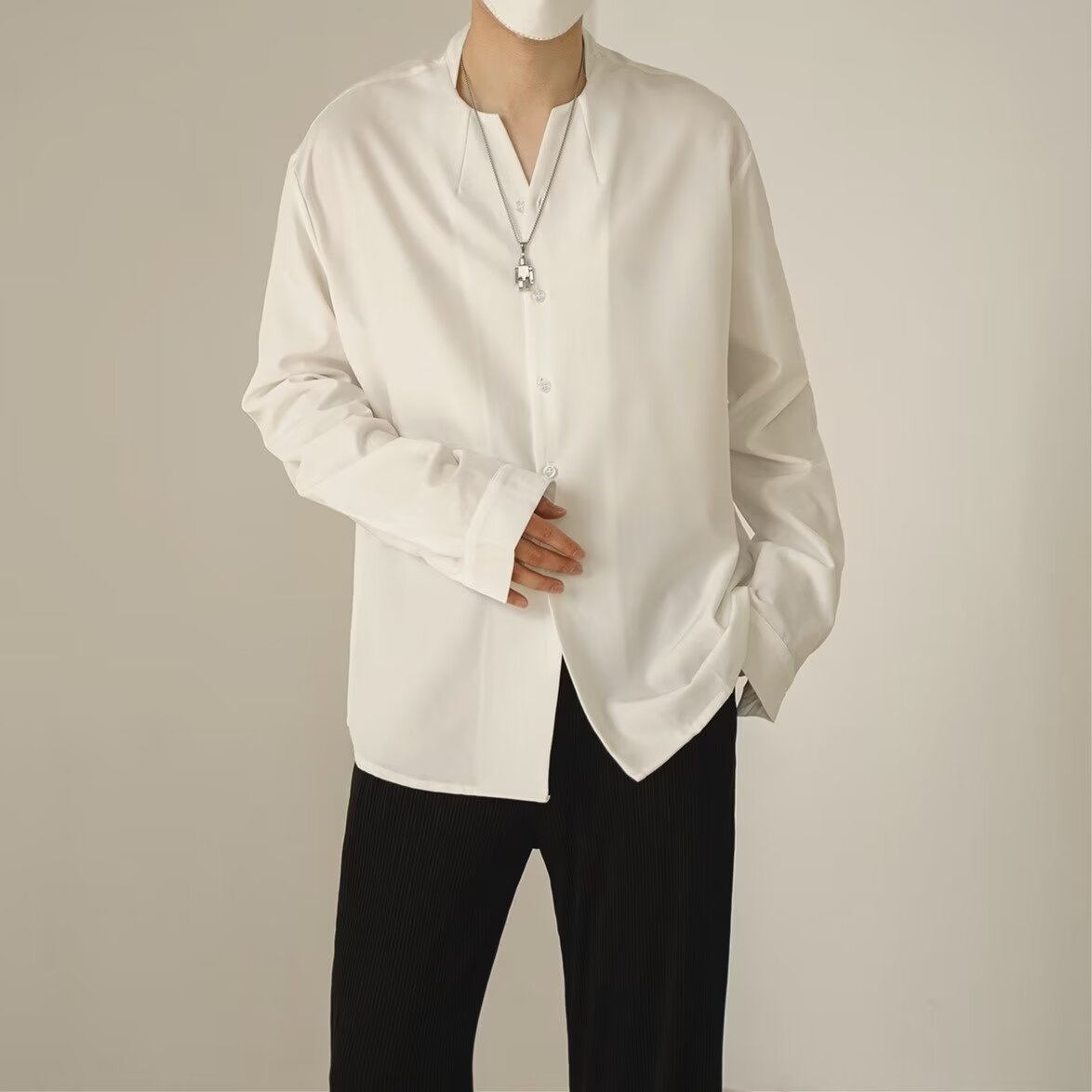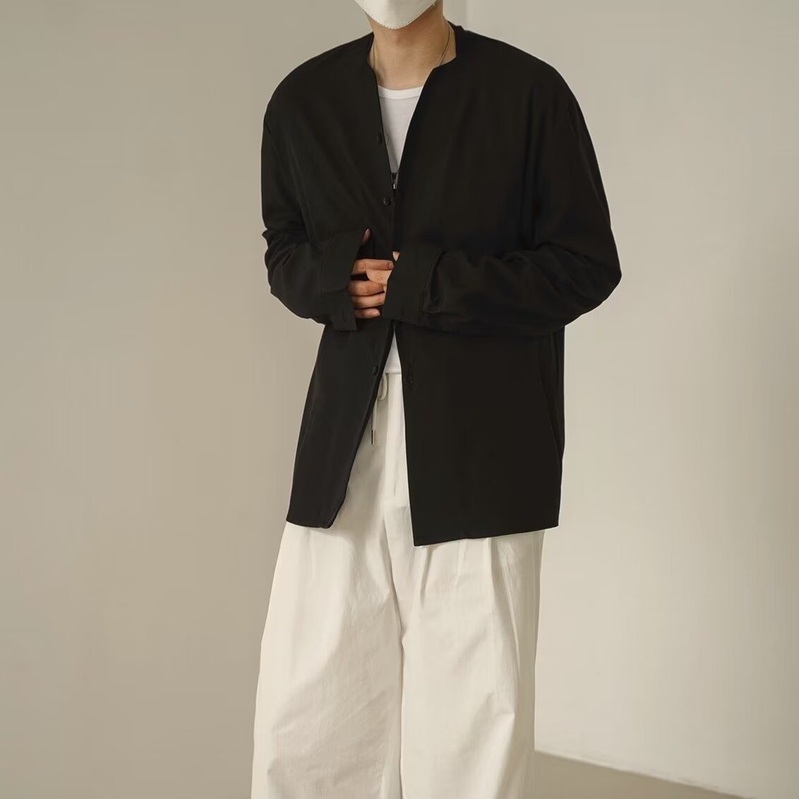 프랑스 하이 엔드 솔리드 컬러 셔츠 남성용 틈새 디자인 칼라리스 긴소매 최고 게으른 스타일 레트로 셔츠 재킷스토어 가기
