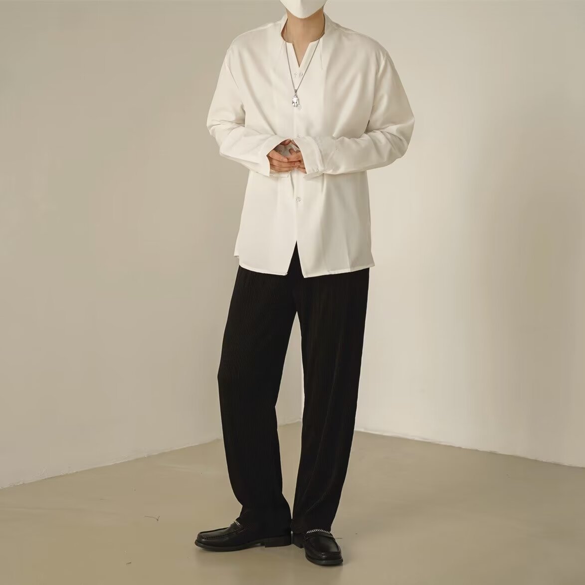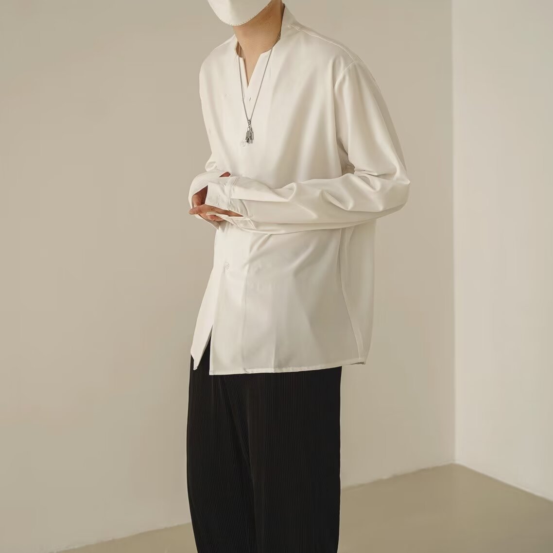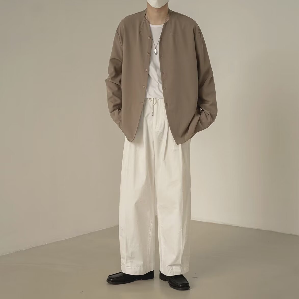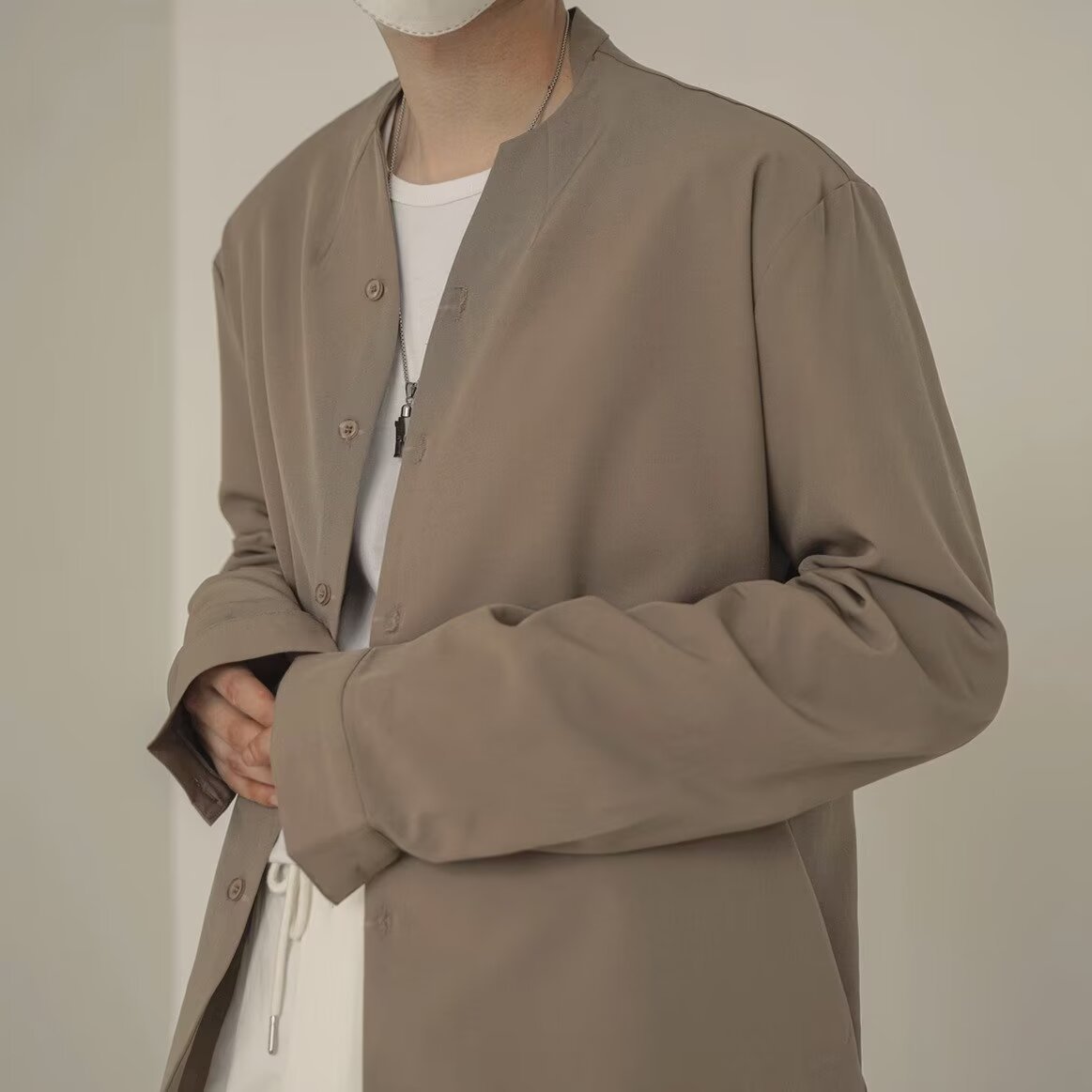 프랑스 하이 엔드 솔리드 컬러 셔츠 남성용 틈새 디자인 칼라리스 긴소매 최고 게으른 스타일 레트로 셔츠 재킷스토어 가기