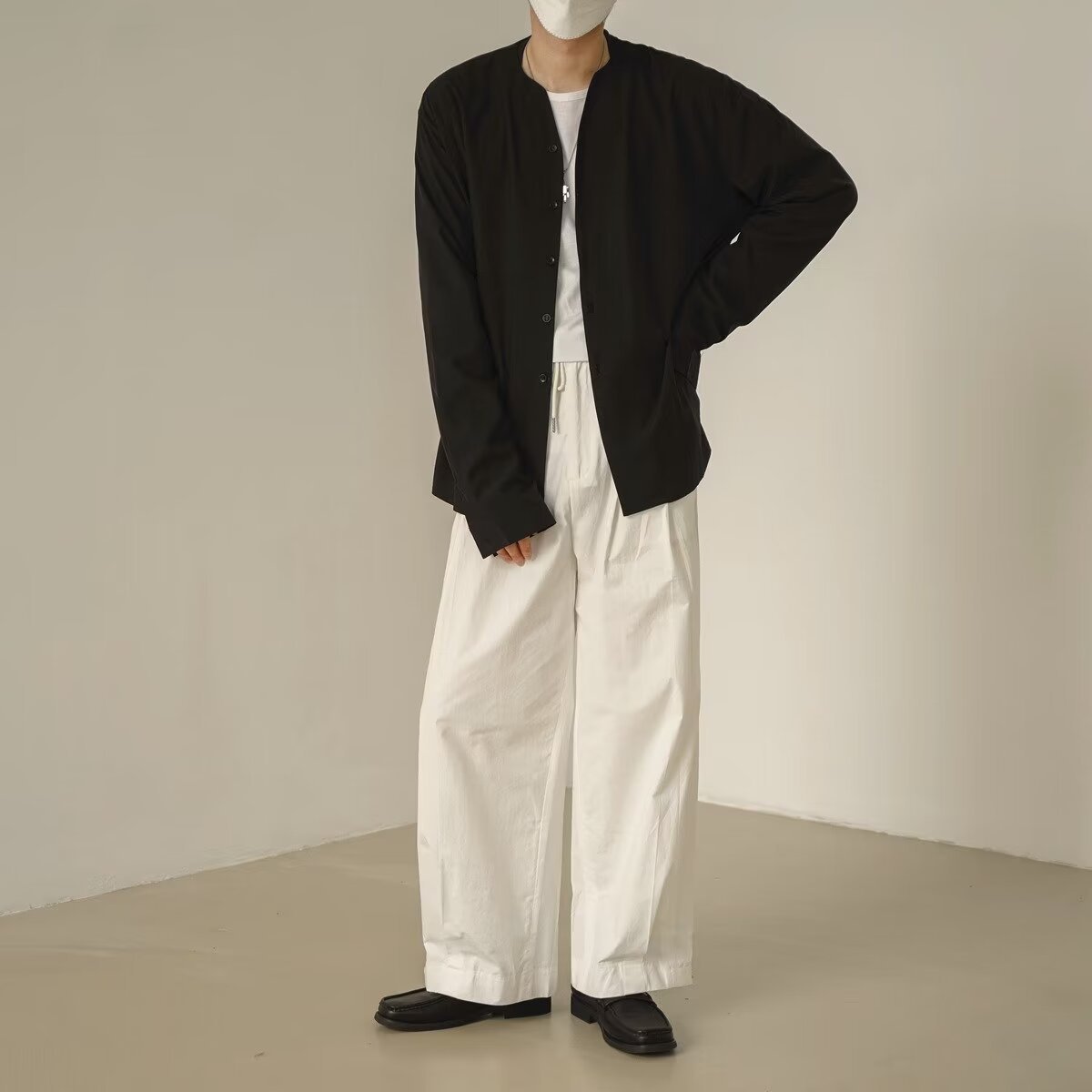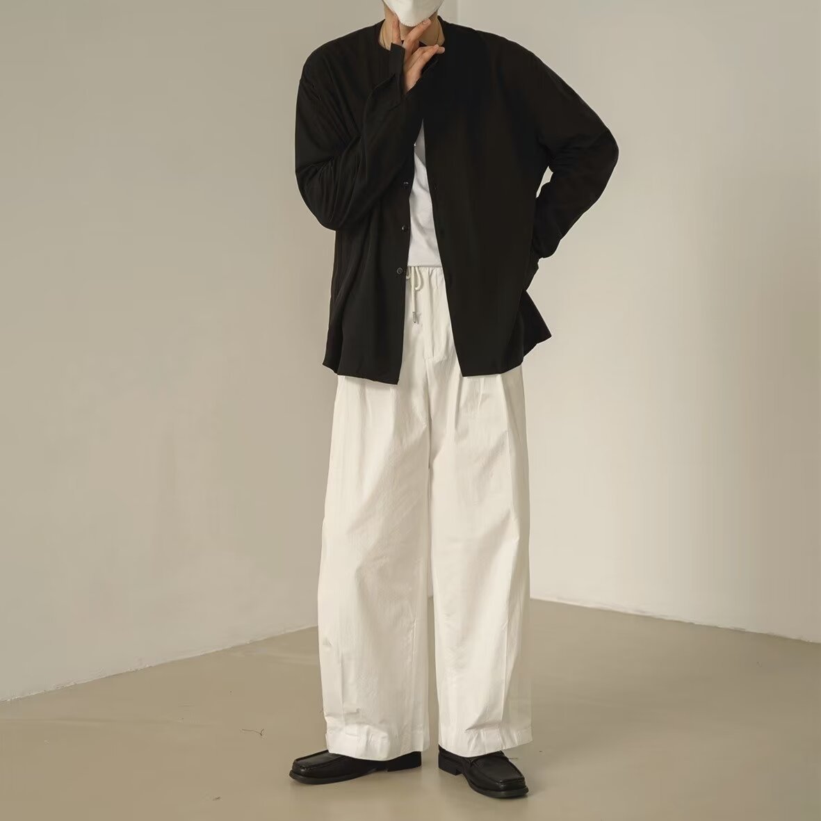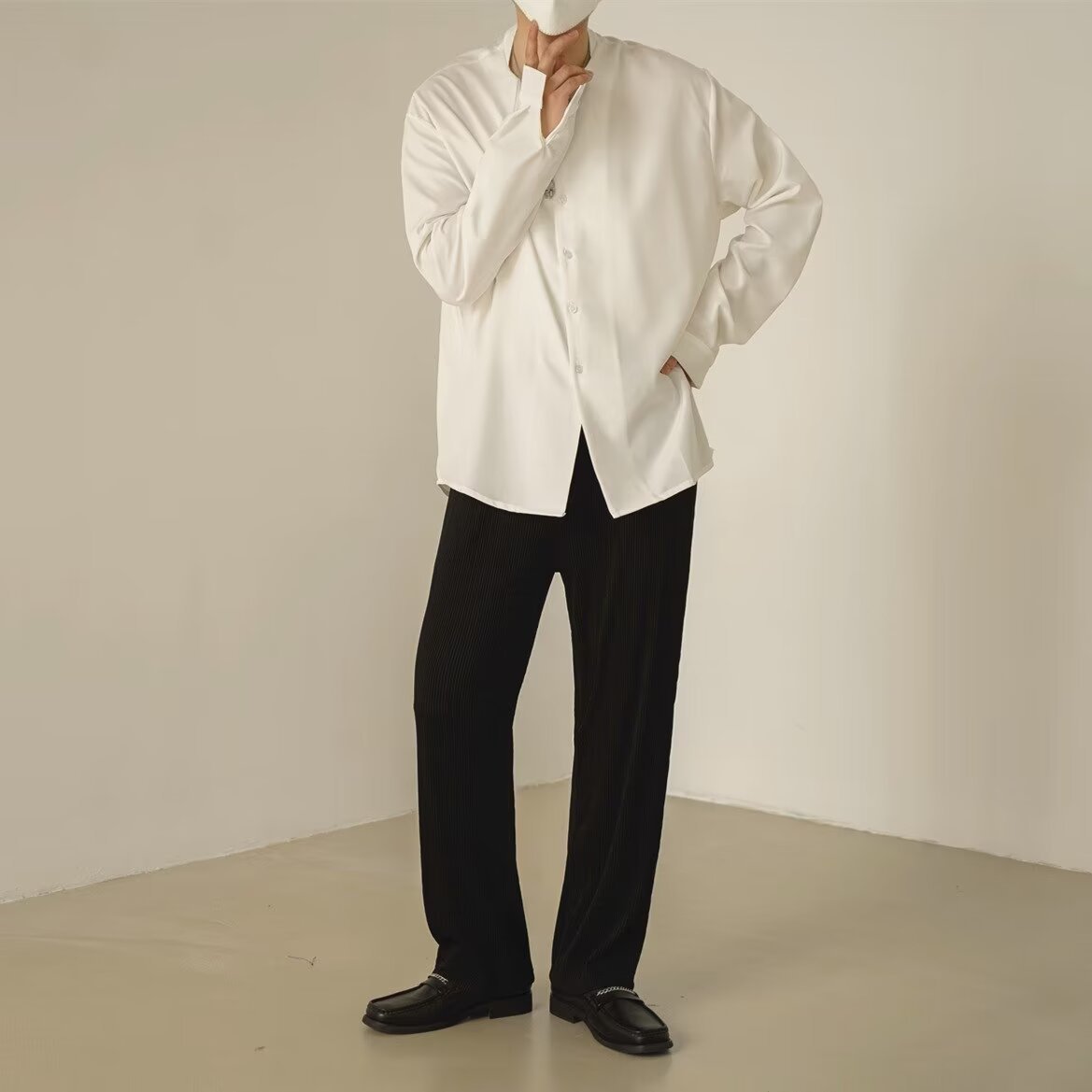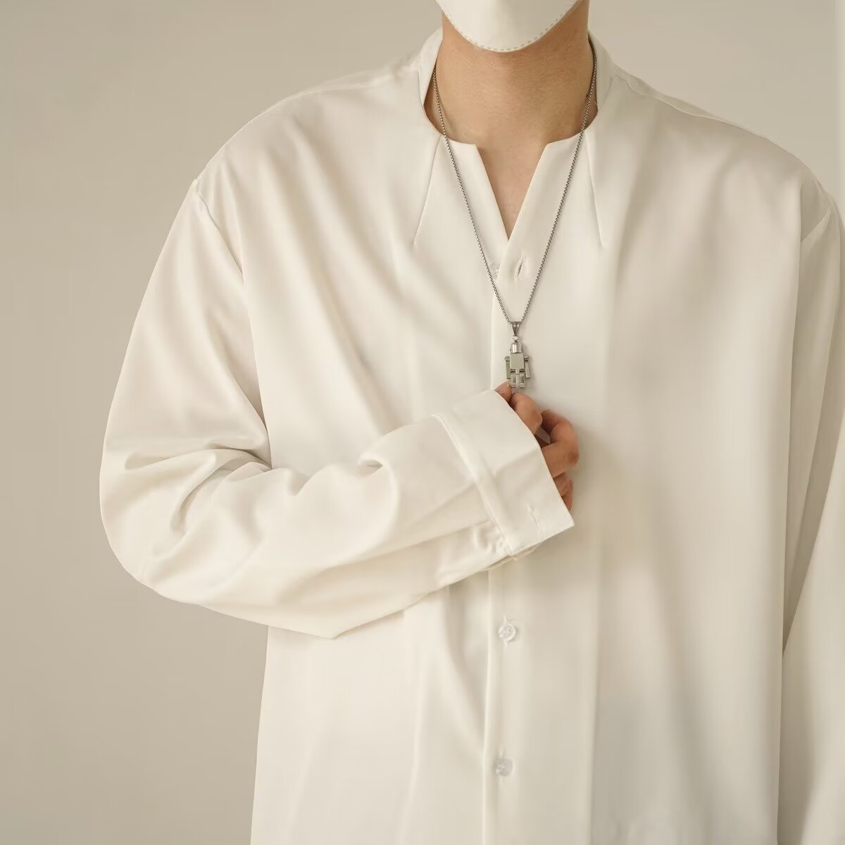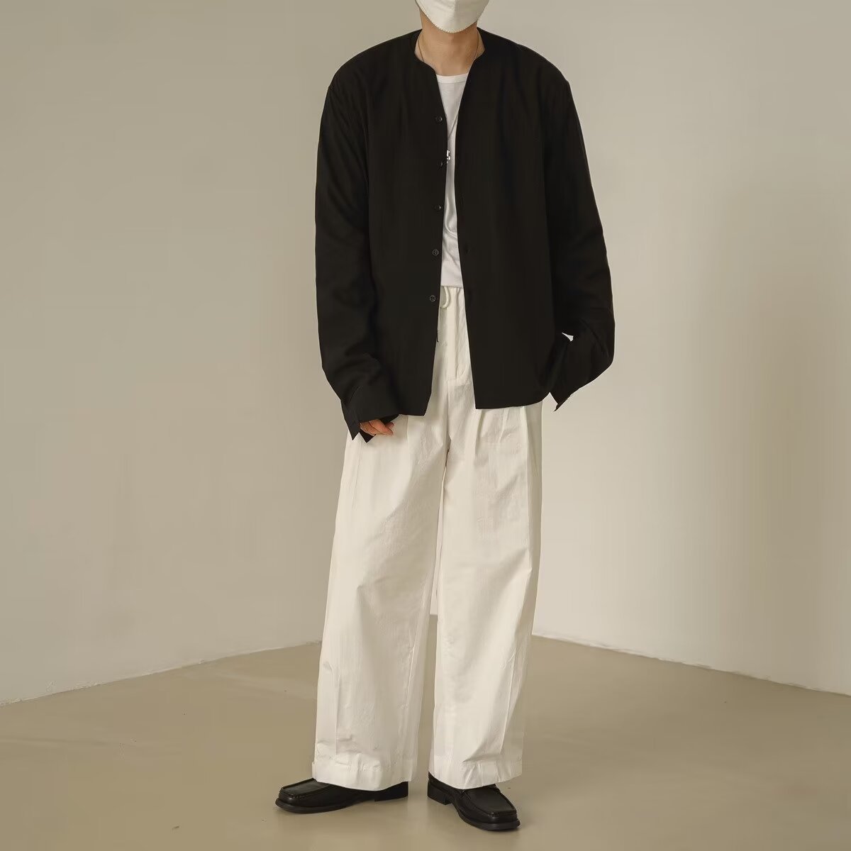 프랑스 하이 엔드 솔리드 컬러 셔츠 남성용 틈새 디자인 칼라리스 긴소매 최고 게으른 스타일 레트로 셔츠 재킷스토어 가기