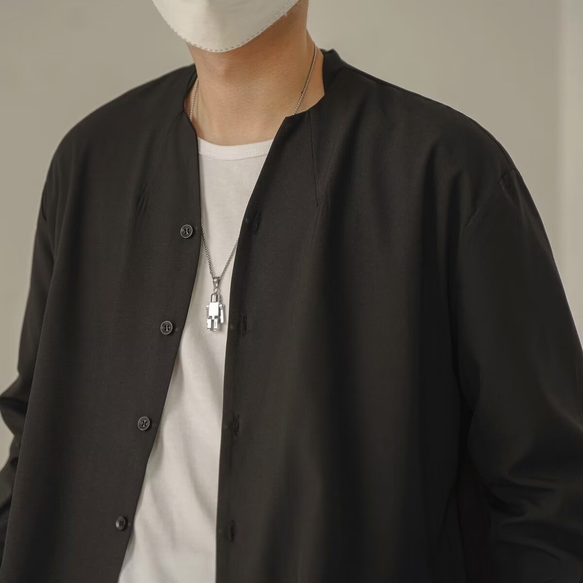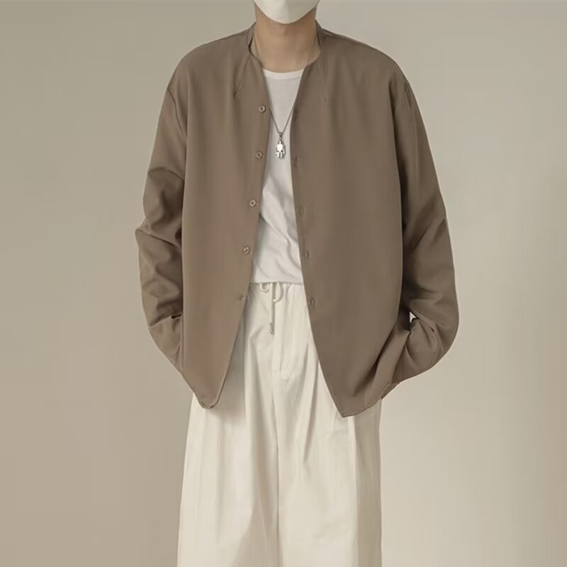 프랑스 하이 엔드 솔리드 컬러 셔츠 남성용 틈새 디자인 칼라리스 긴소매 최고 게으른 스타일 레트로 셔츠 재킷