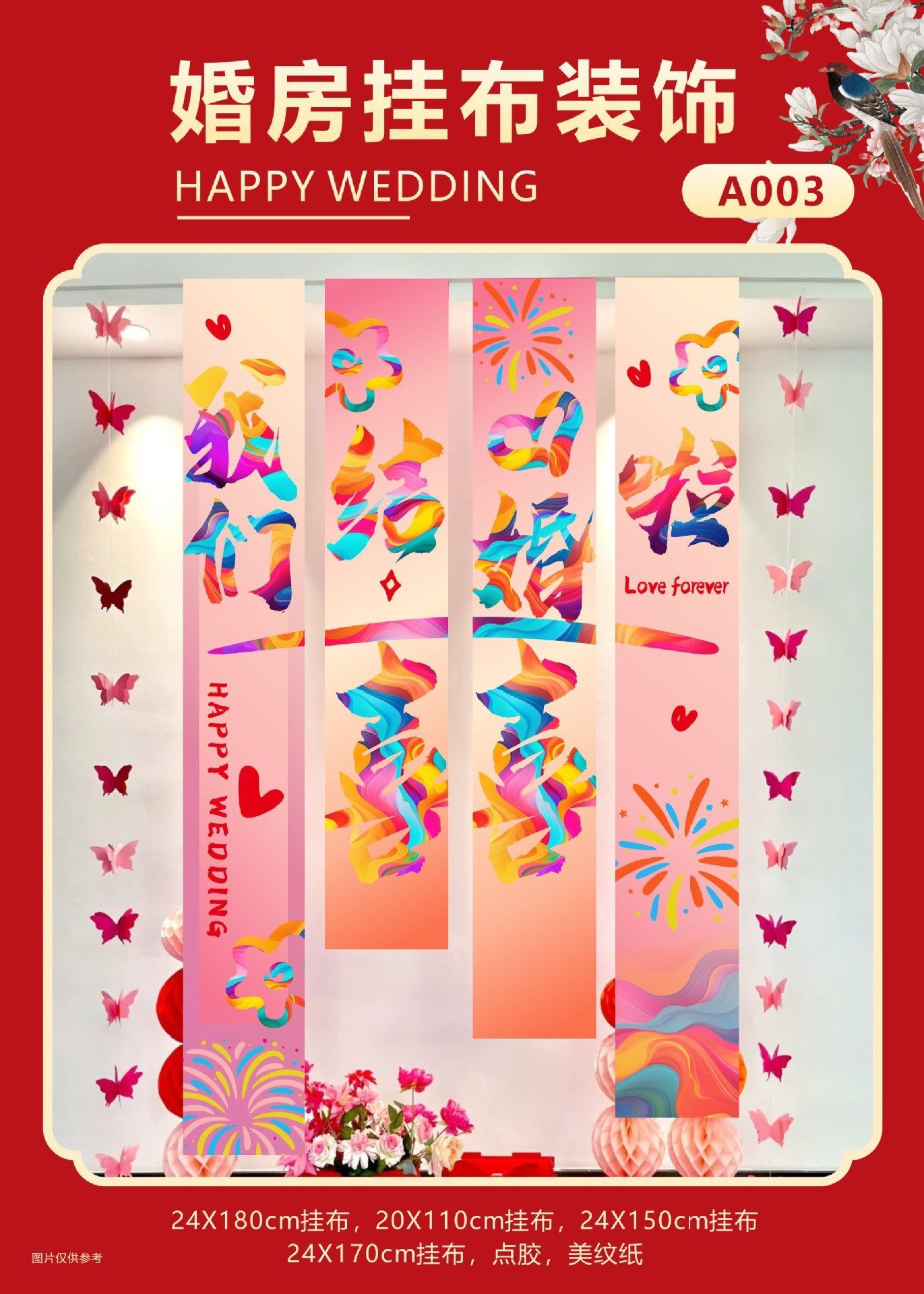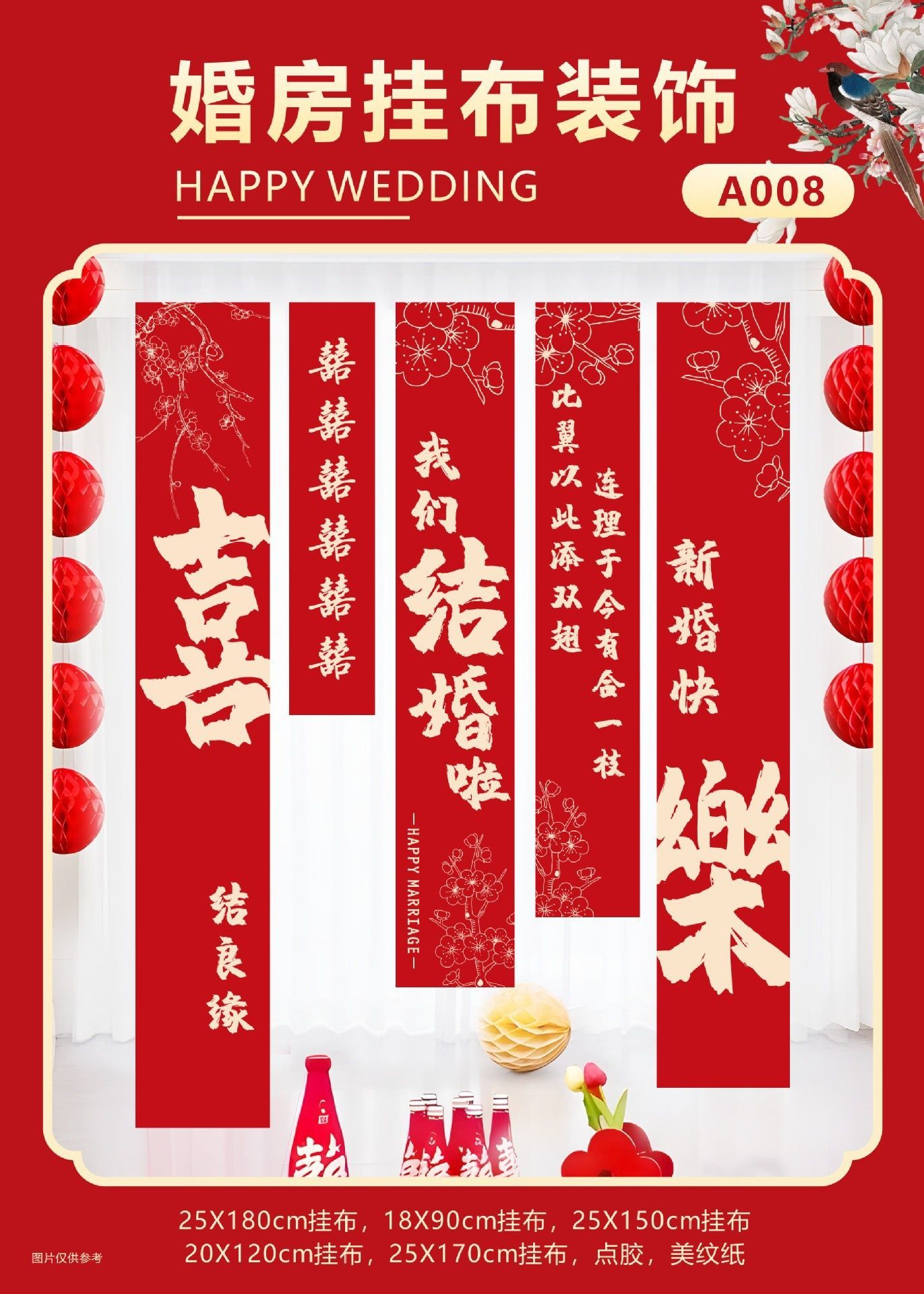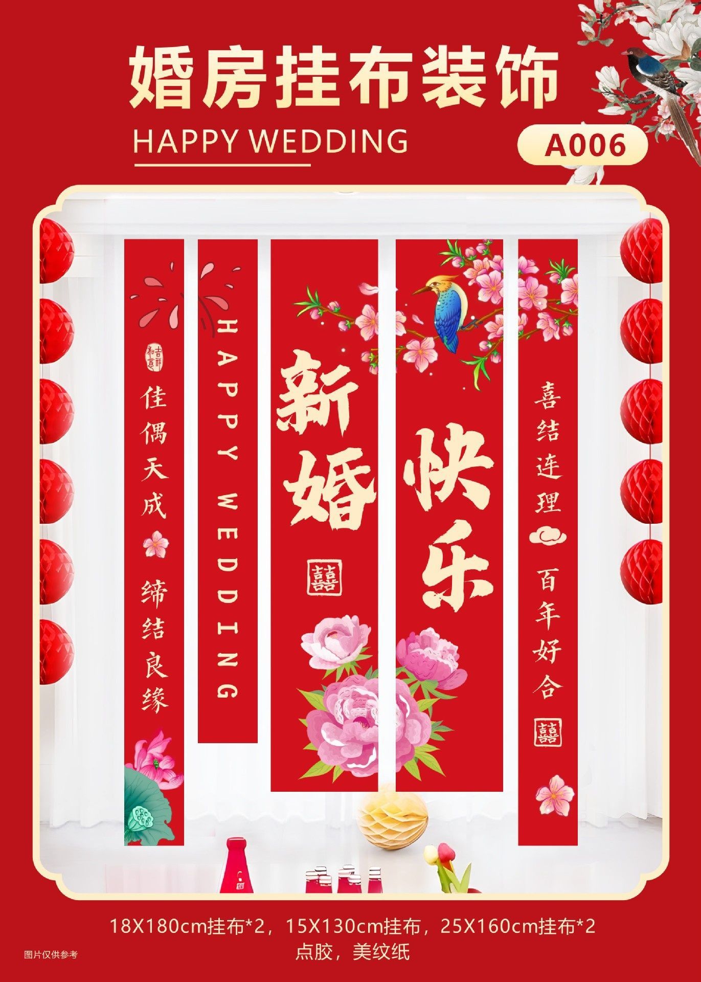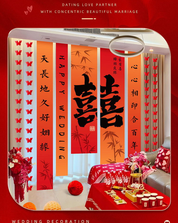 웨딩 배너 웨딩 교수형 천 여자 웨딩 룸 장식 용품 세트 Xi 캐릭터 그리기 꽃 커튼 배경 벽 Xi