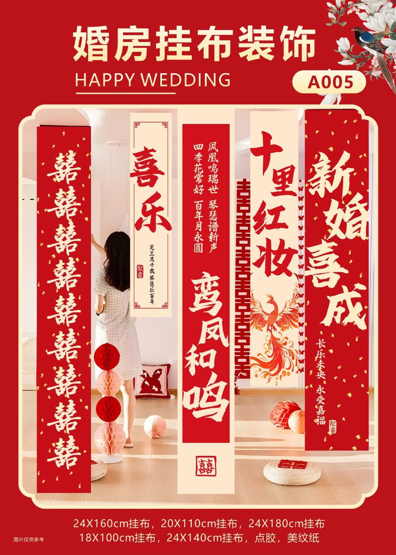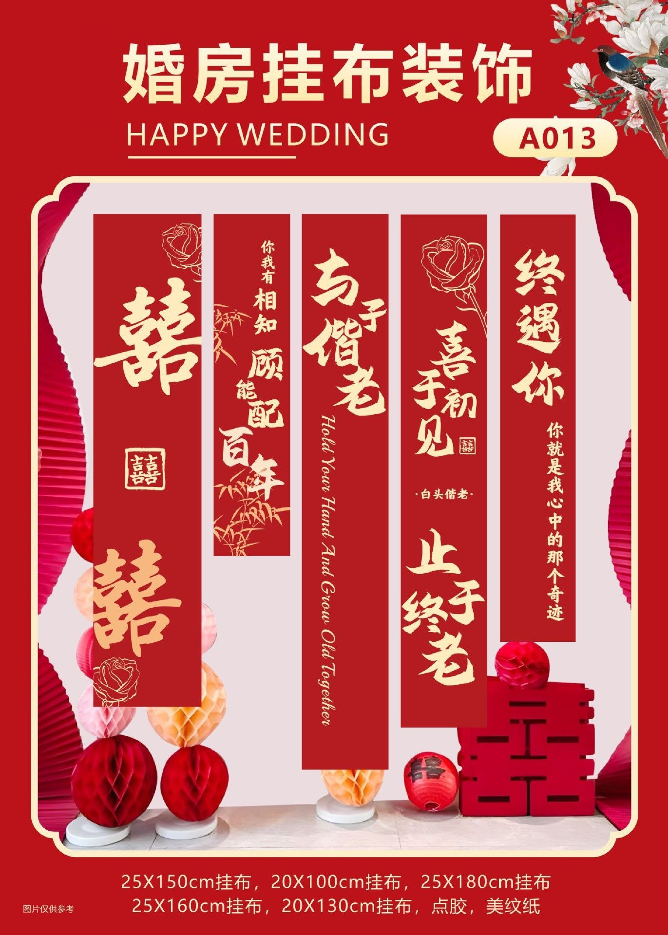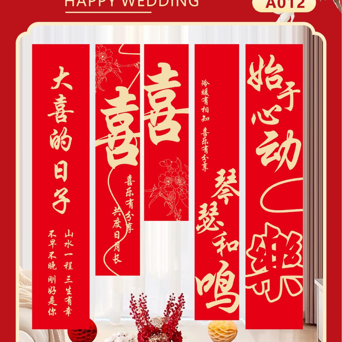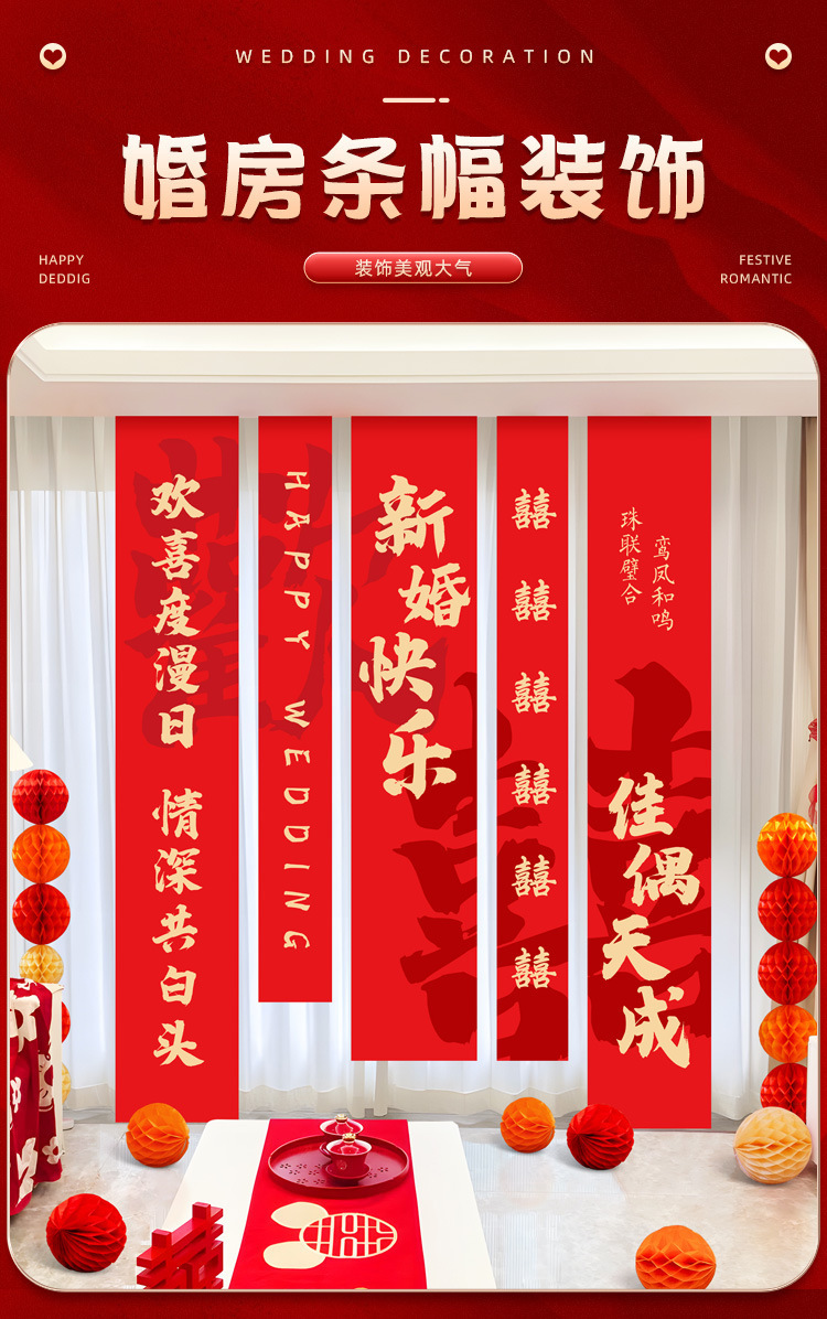 웨딩 배너 웨딩 교수형 천 여자 웨딩 룸 장식 용품 세트 Xi 캐릭터 그리기 꽃 커튼 배경 벽 Xi