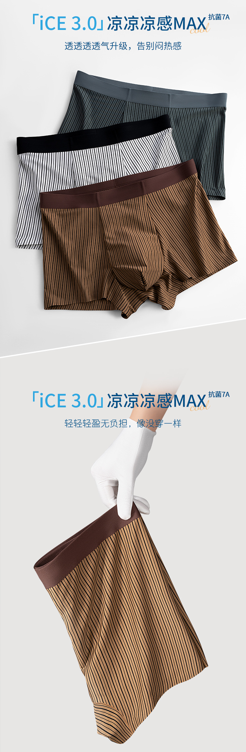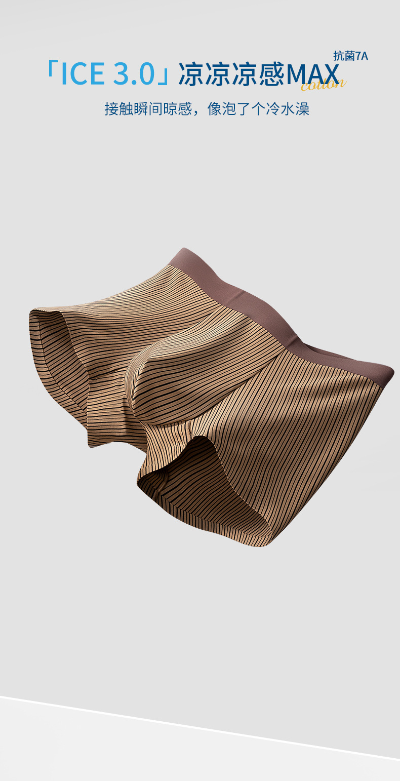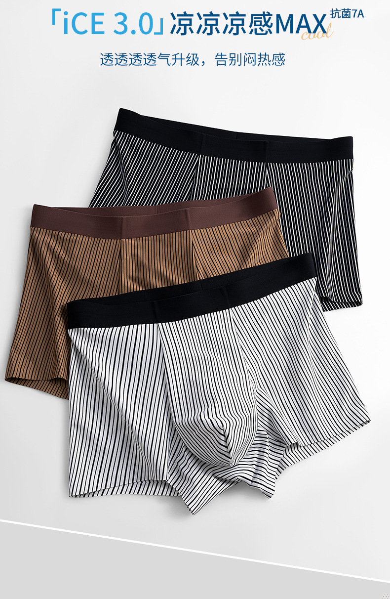 2025 밀라노 여름 새로운 줄무늬 남성 아이스 실크 복서 바지 통기성 원활한 소년 속옷 허리 복서 바지