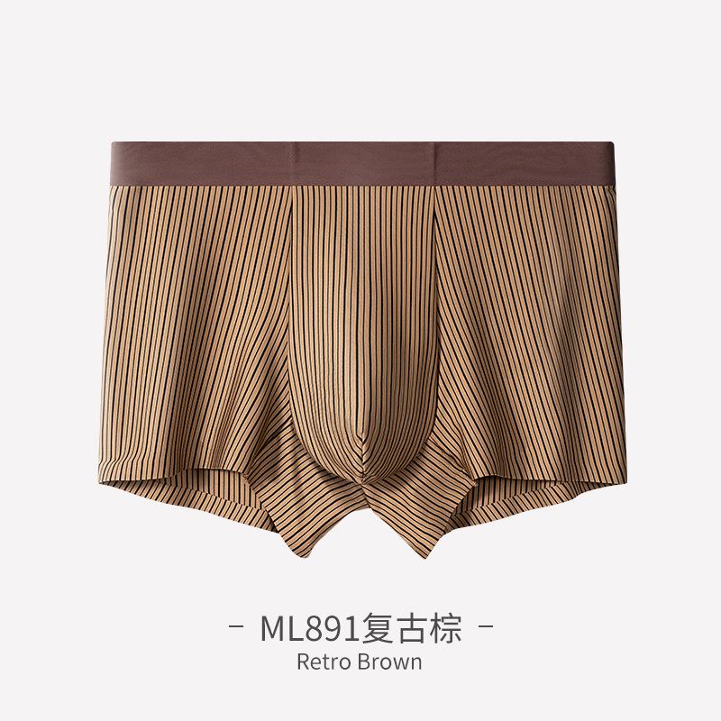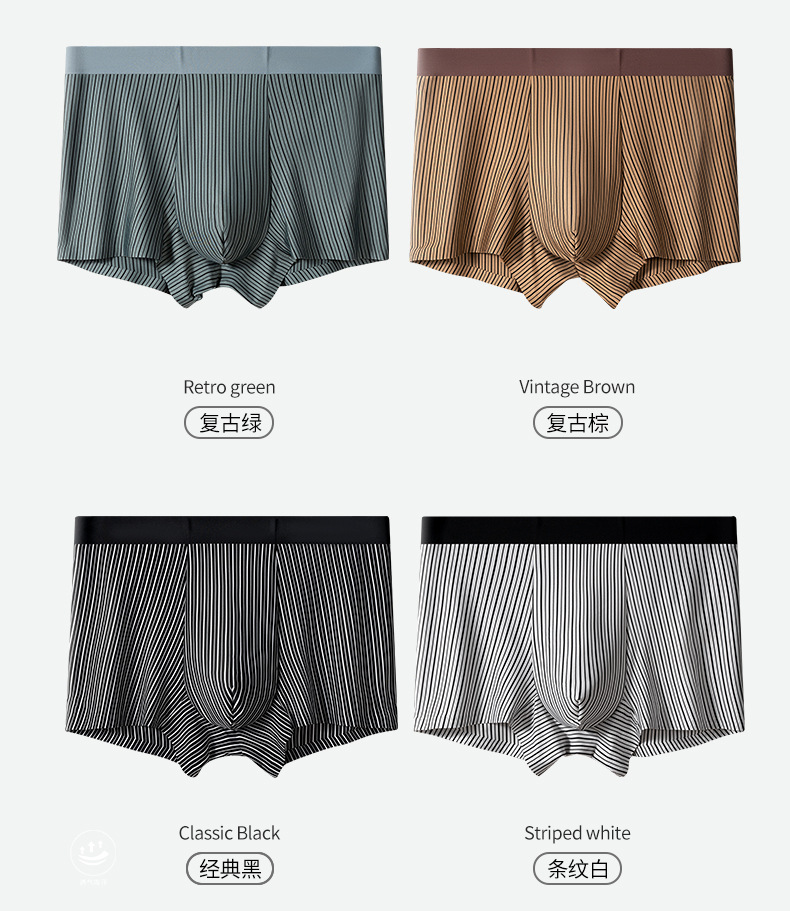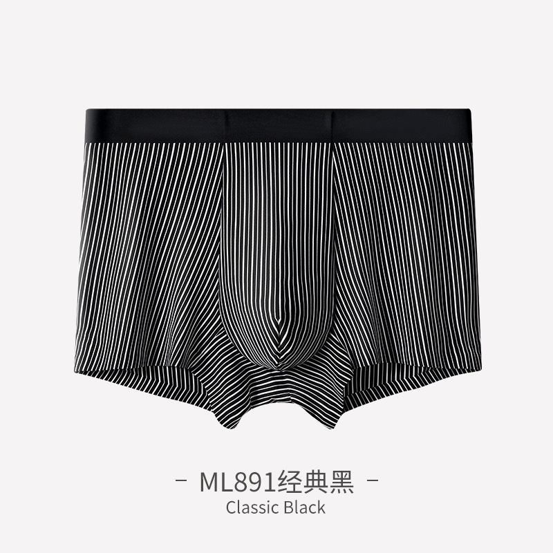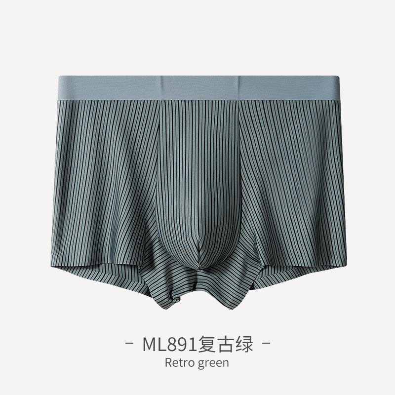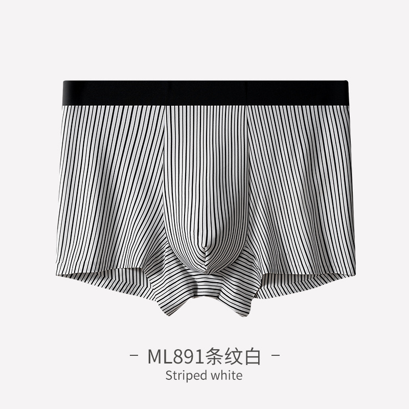 2025 밀라노 여름 새로운 줄무늬 남성 아이스 실크 복서 바지 통기성 원활한 소년 속옷 허리 복서 바지