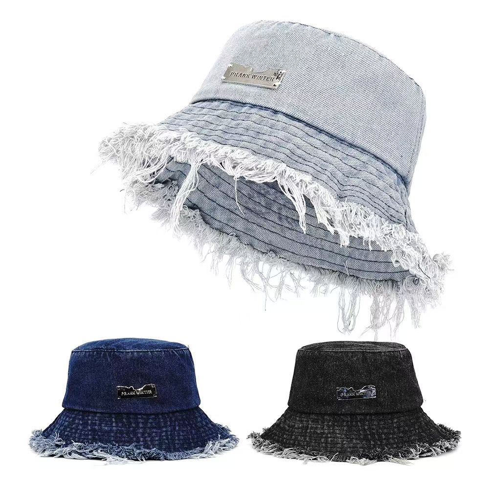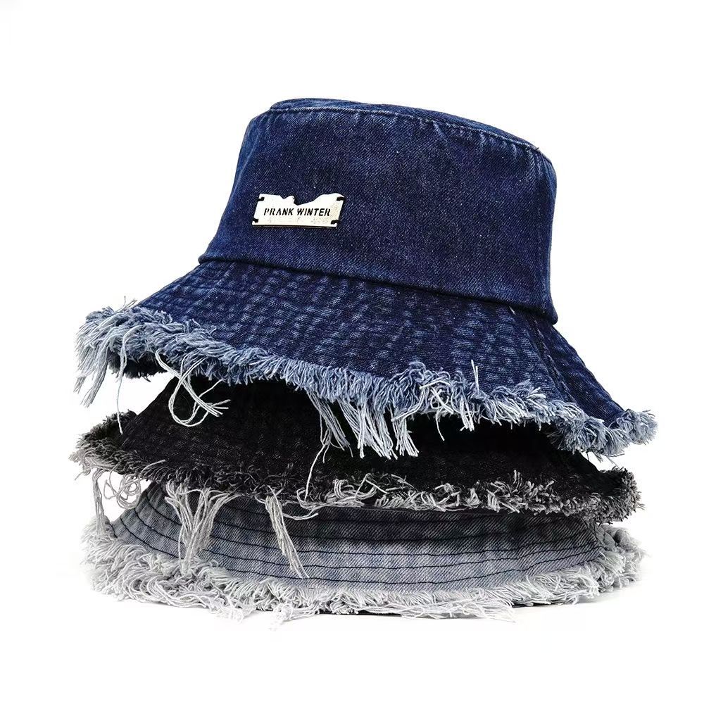 러프 데님 어부 모자 야외 레저 자외선 차단제 러프 분지 모자 한국 패션 트렌드 얼굴 작은 차양 모자
