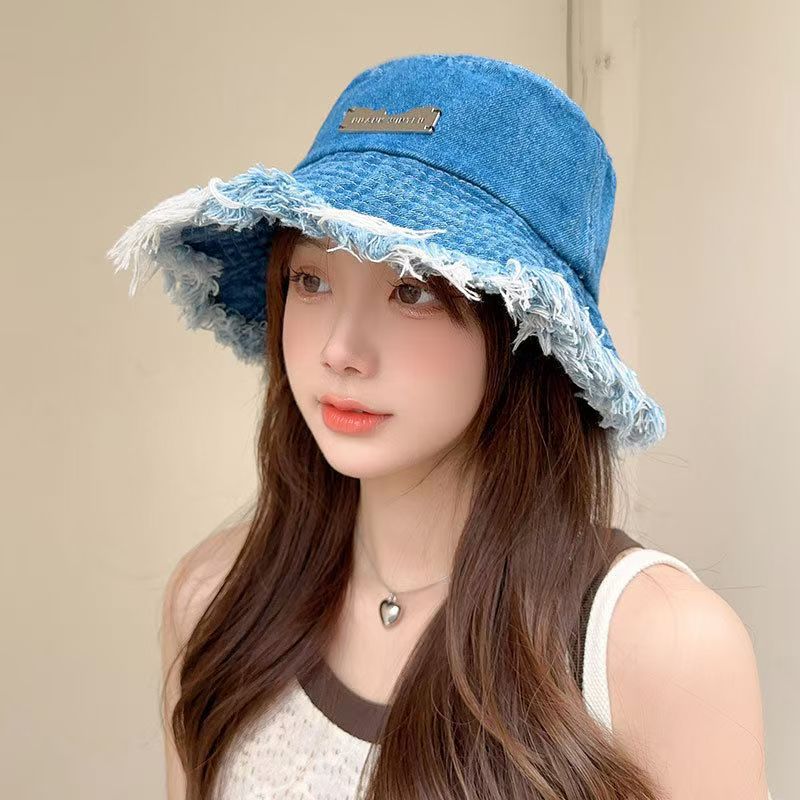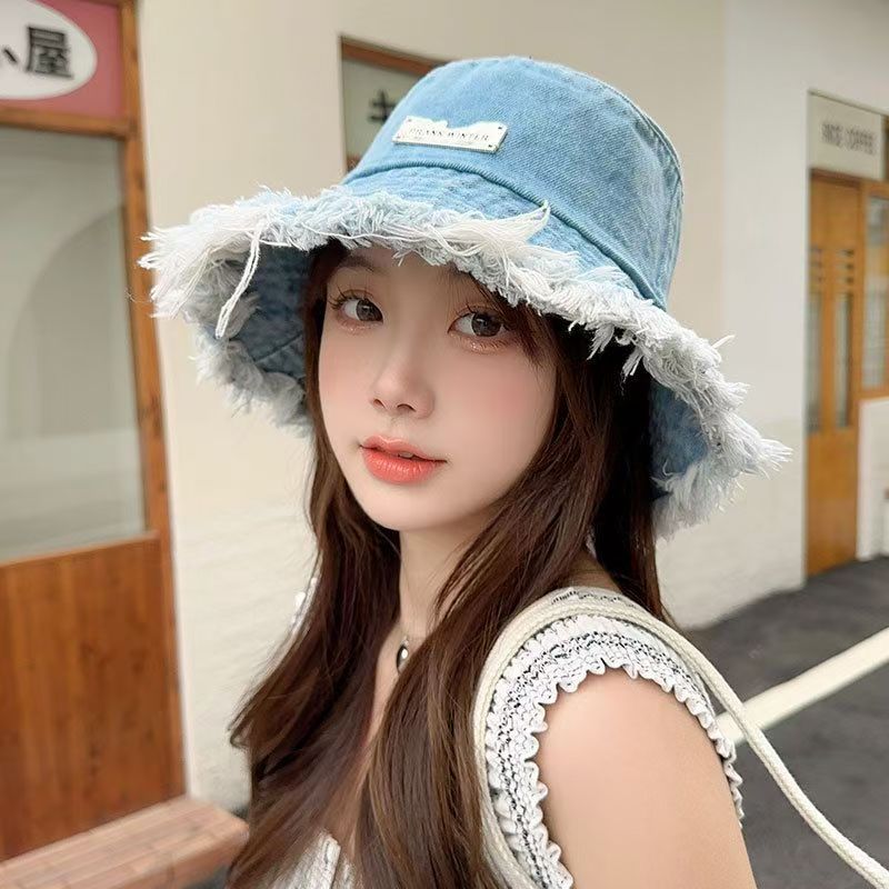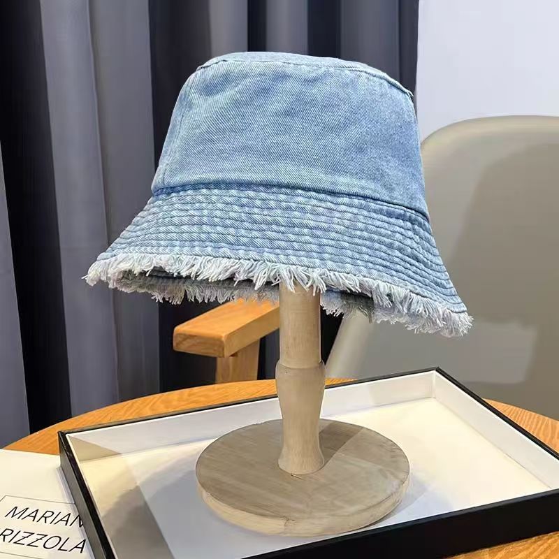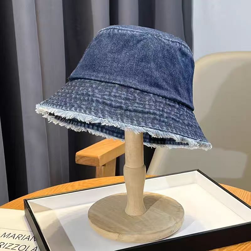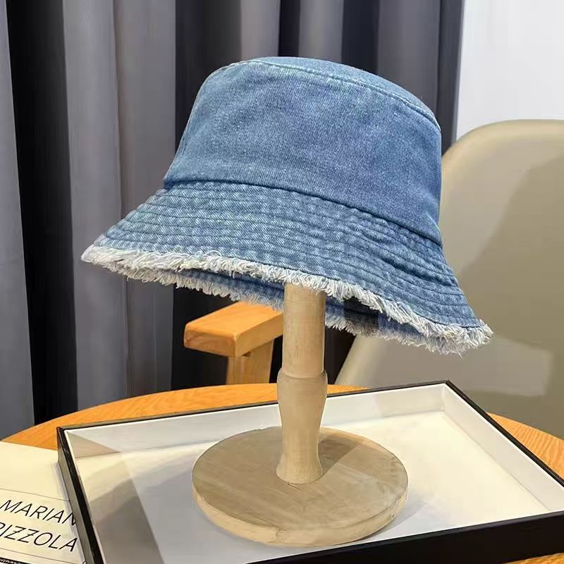 러프 데님 어부 모자 야외 레저 자외선 차단제 러프 분지 모자 한국 패션 트렌드 얼굴 작은 차양 모자스토어 가기