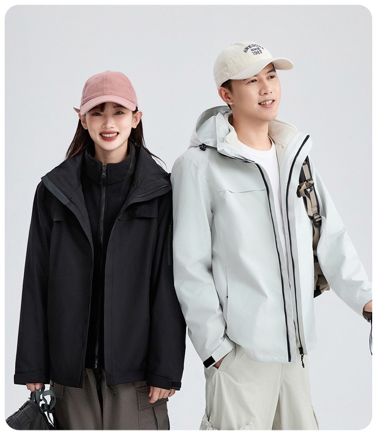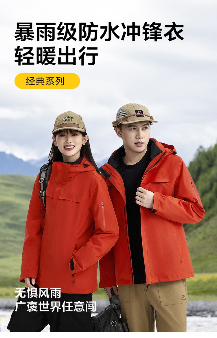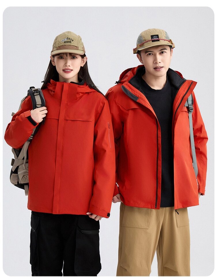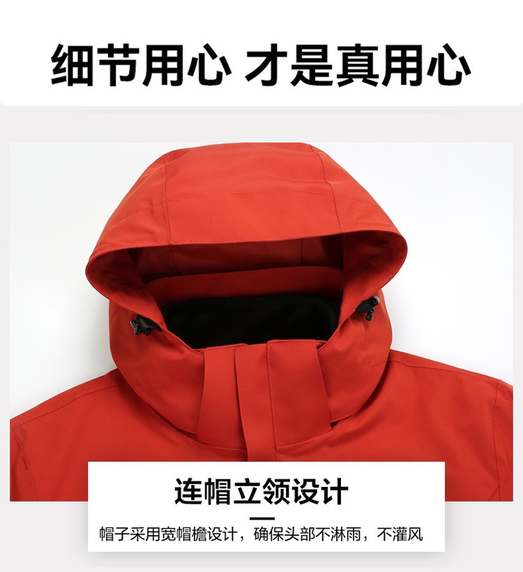 전국 표준 3 대 1 충전 의류 여성 압력 접착제 후드 재킷 로즈 핀치 레드 솔리드 컬러 커플 작업복