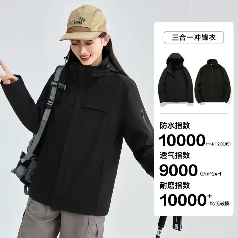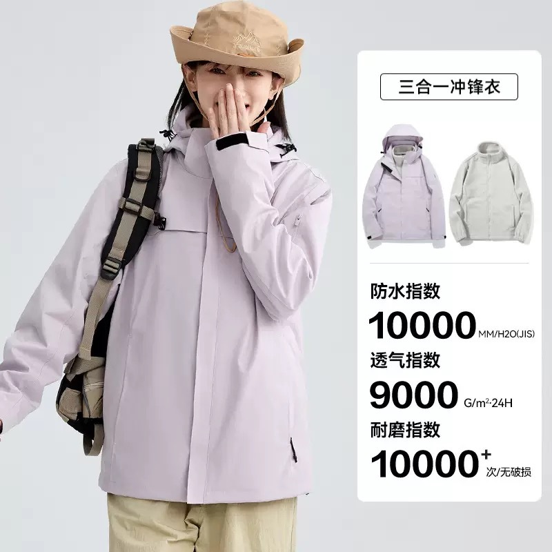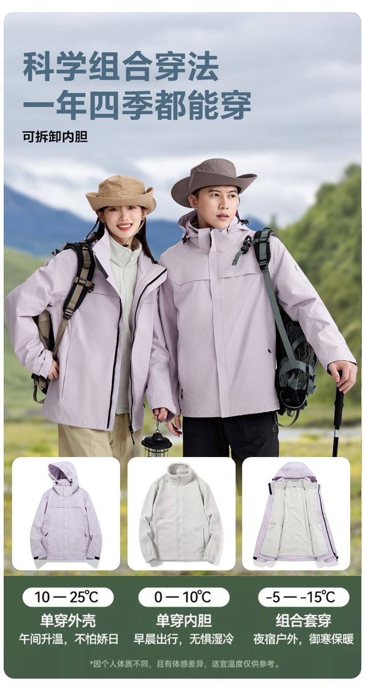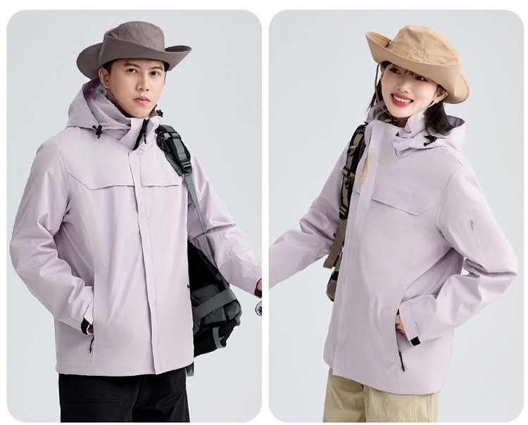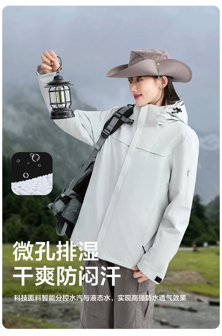 전국 표준 3 대 1 충전 의류 여성 압력 접착제 후드 재킷 로즈 핀치 레드 솔리드 컬러 커플 작업복
