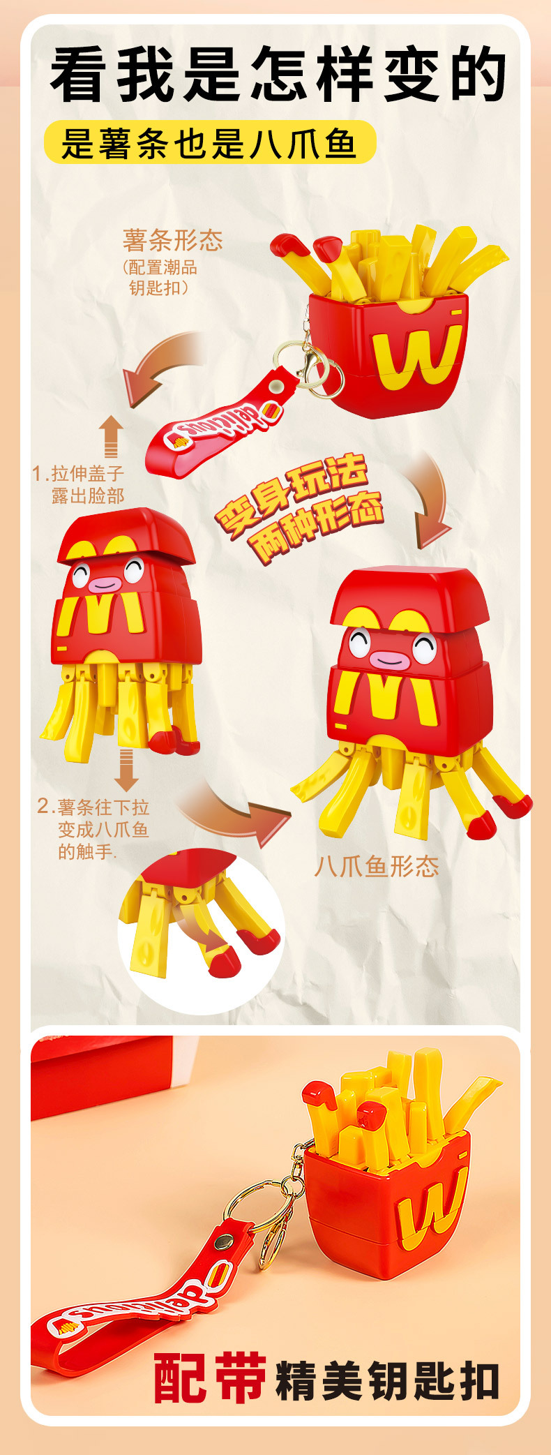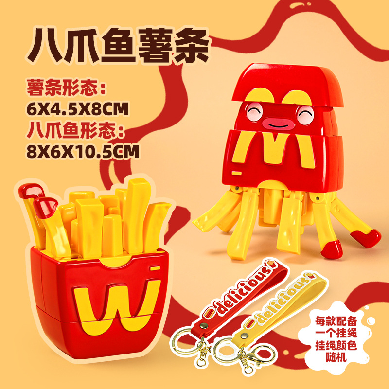 M 변형 햄버거 프라이 키 체인 백 펜던트 유행 재미있는 장난감 문어 어린이 창의 장식품