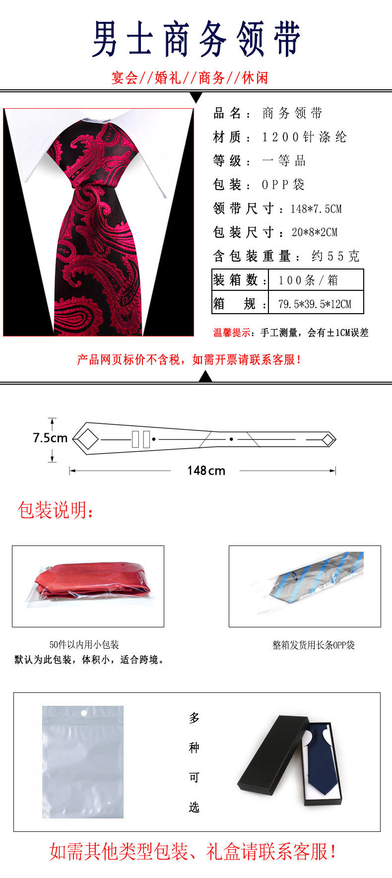 남성 모조 실크 넥타이 유럽 스타일 원피스 연회 웨딩 티 핸드 타이 긴 넥타이 7.5cm Shengzhou 공장 재고