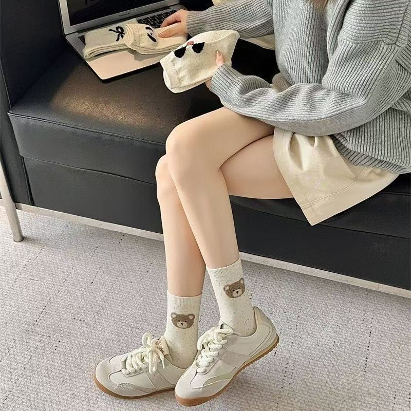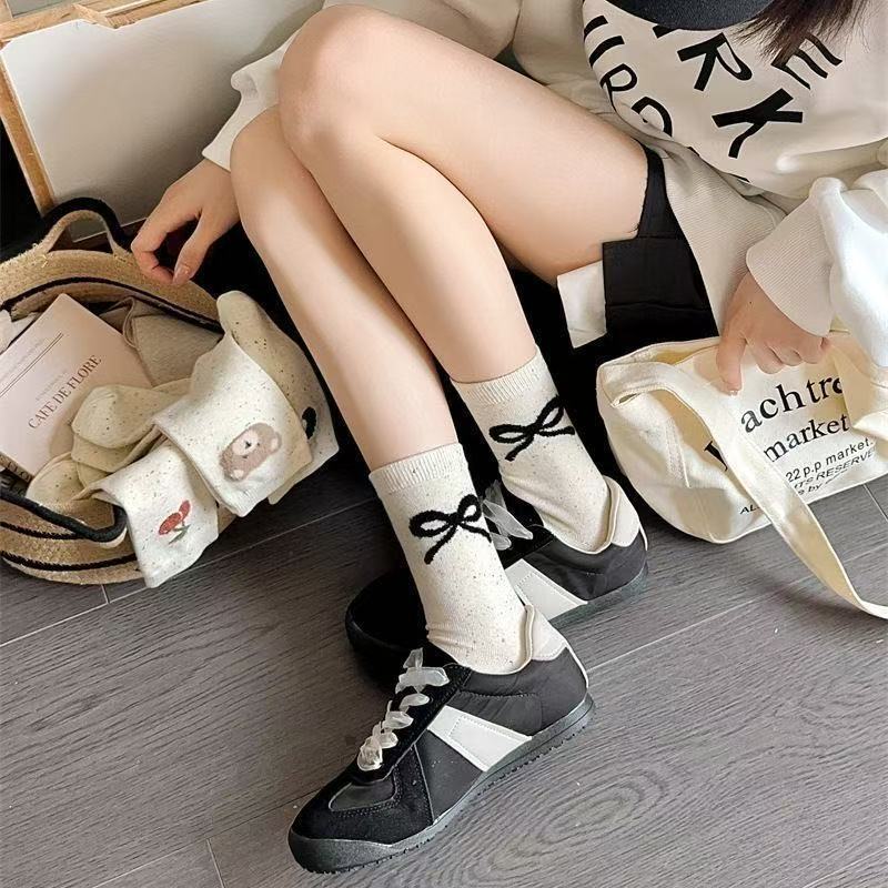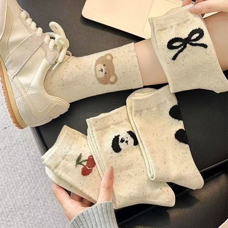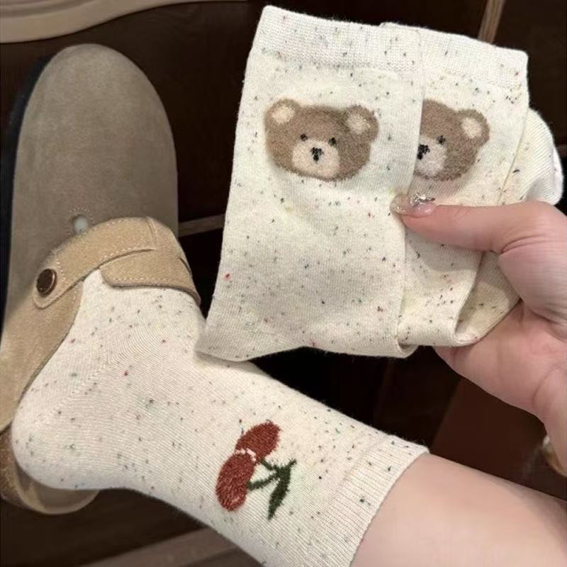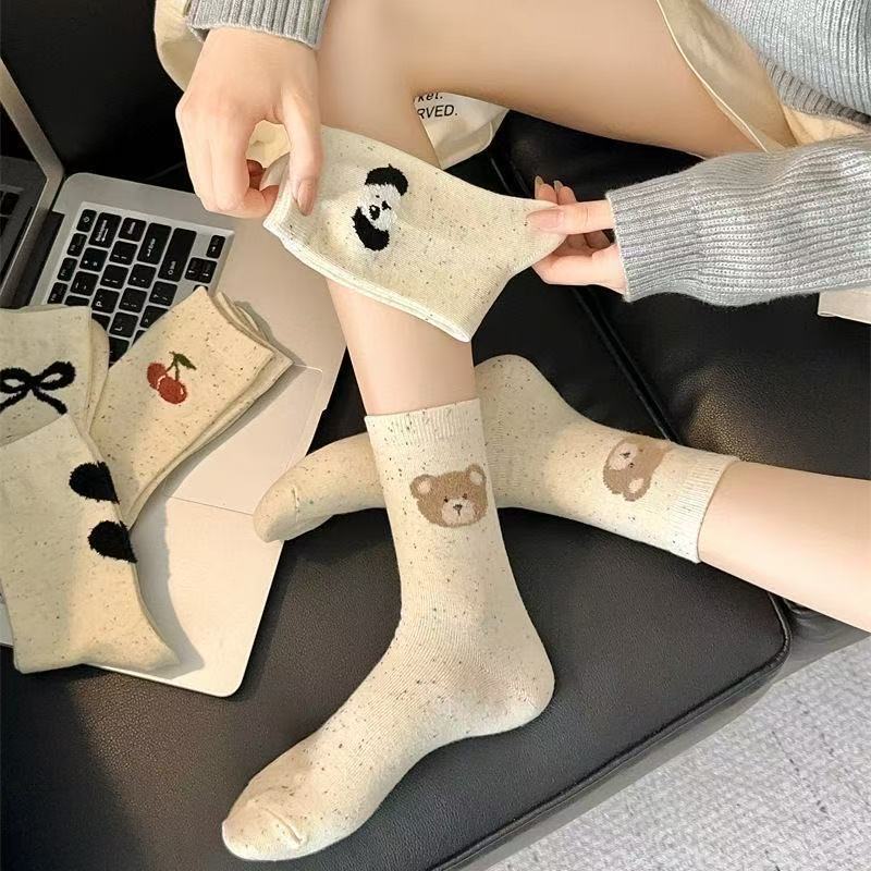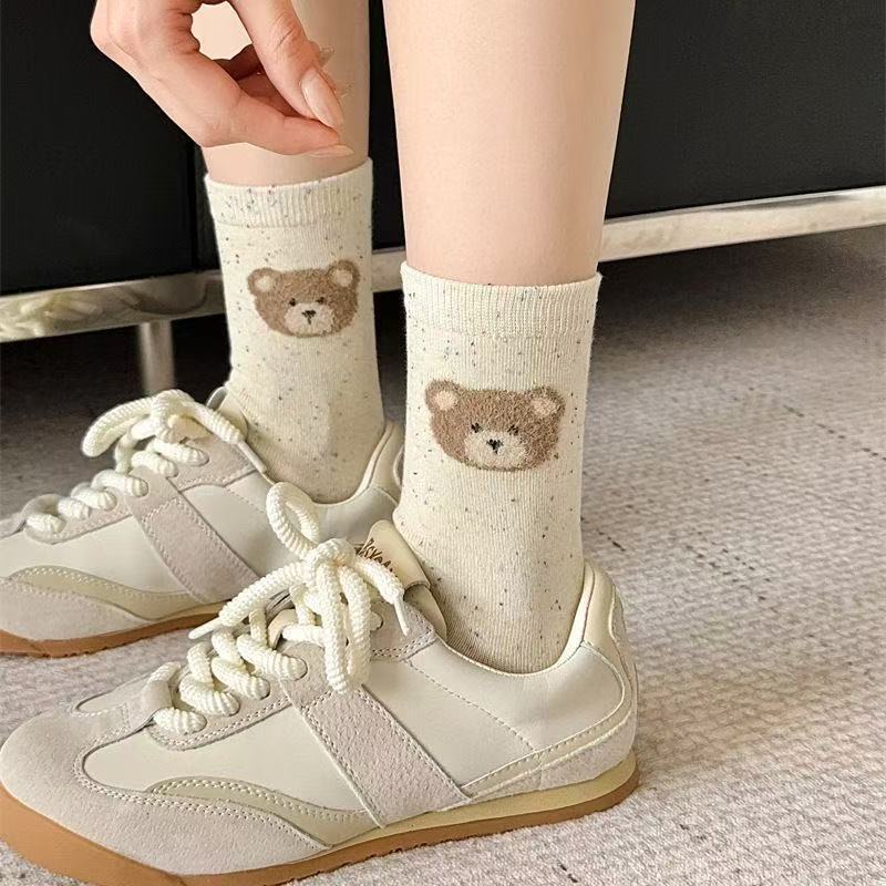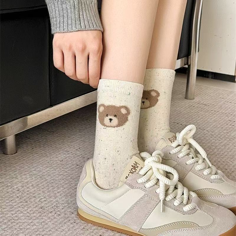 귀여운 양말 어린이 중간 튜브 봄 공 시즌 활 아이디어 단색 긴 튜브 곰 인형 도파민 만화 일본 스타일스토어 가기