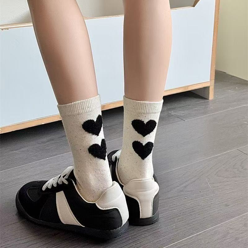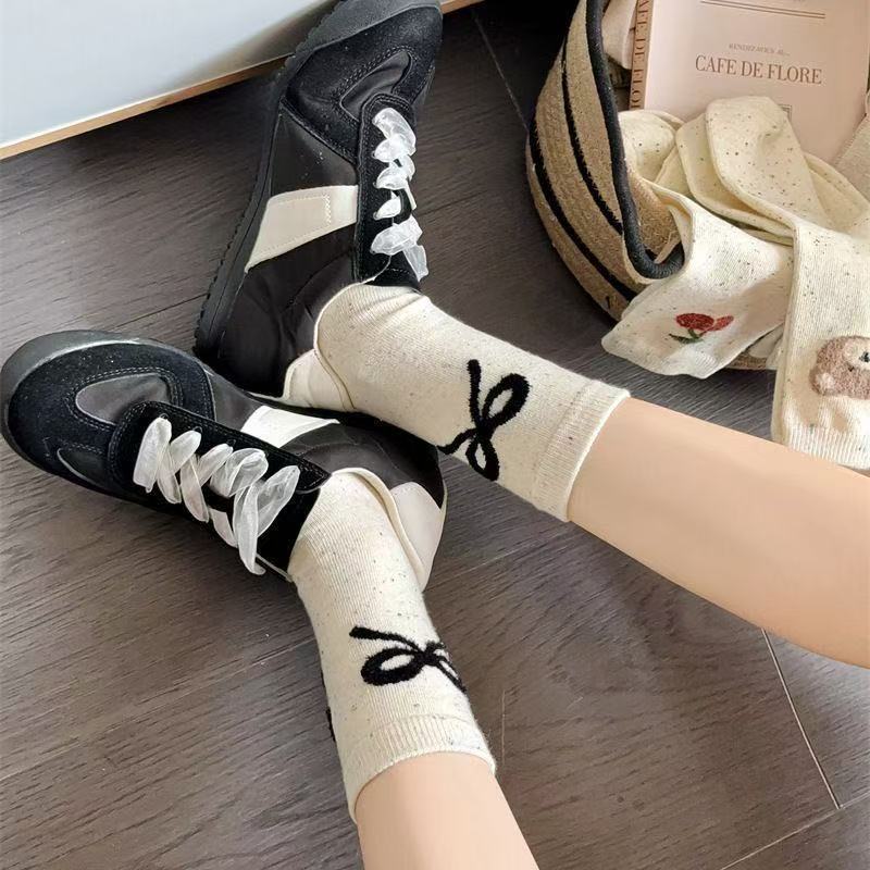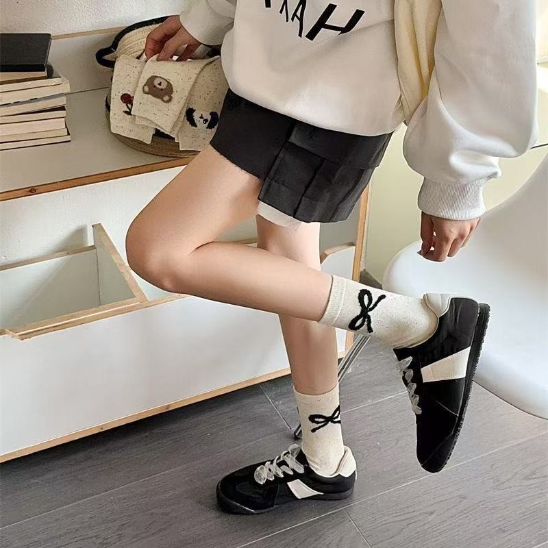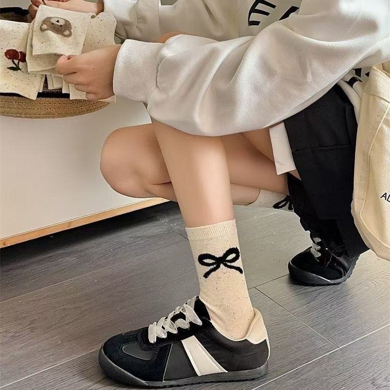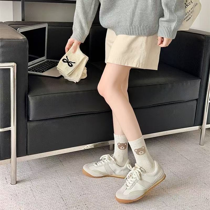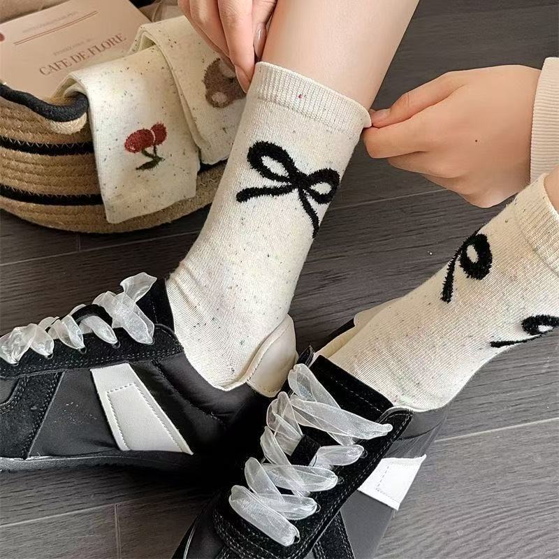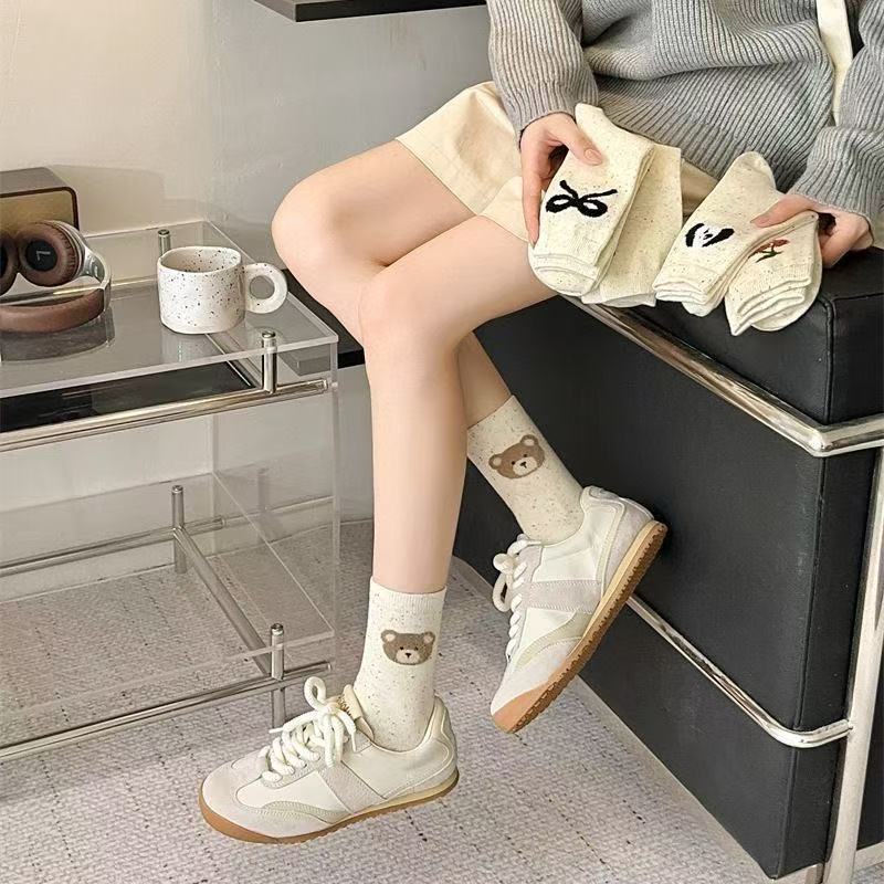 귀여운 양말 어린이 중간 튜브 봄 공 시즌 활 아이디어 단색 긴 튜브 곰 인형 도파민 만화 일본 스타일스토어 가기