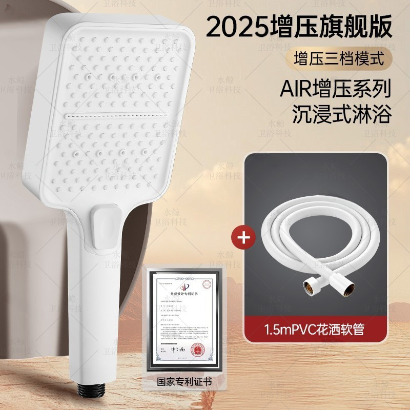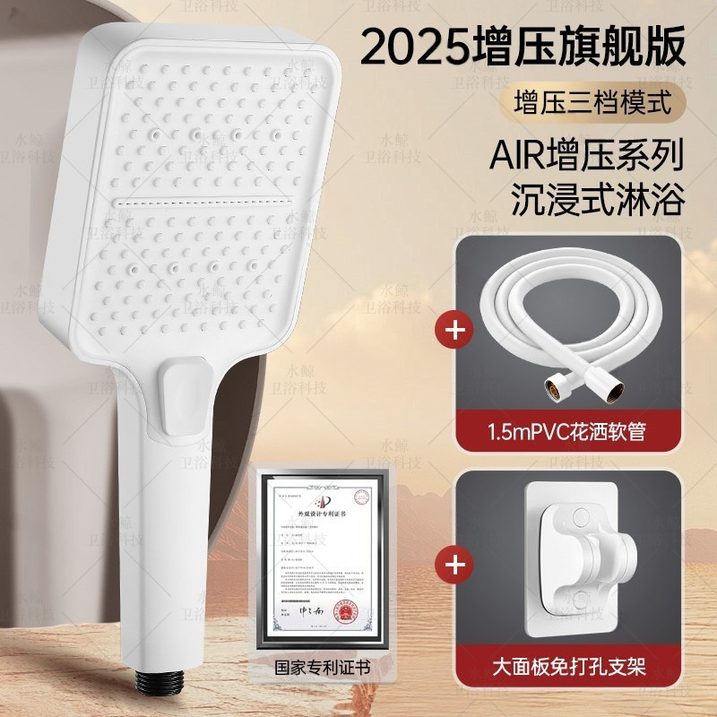 • [세라믹 화이트] 부스터 샤워기 + 1.5m 방폭 호스 + 브라켓