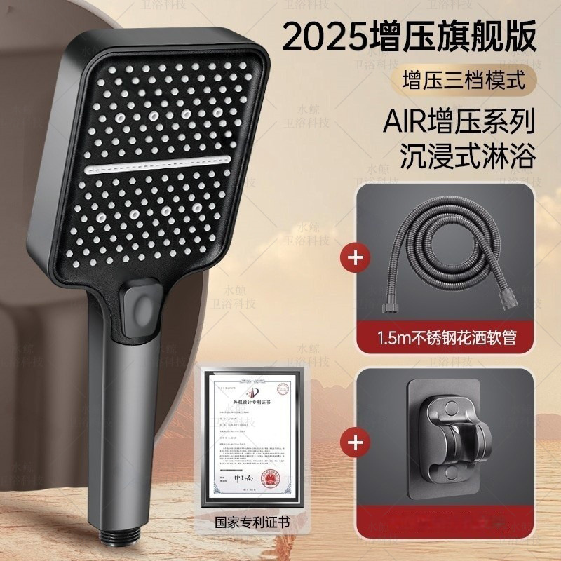 • [티타늄 그레이] 부스터 샤워기 + 1.5m 방폭 호스 + 브라켓