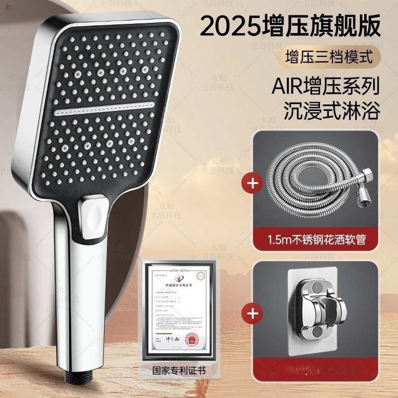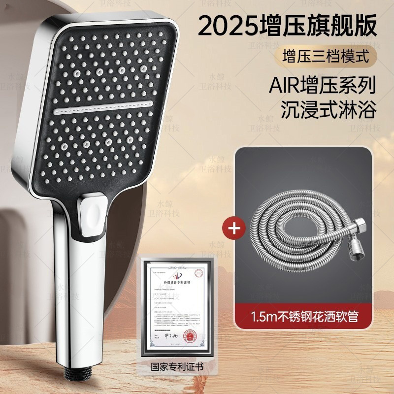 • [브라이트 실버] 부스터 샤워기 + 방폭호스 1.5m개 + 브라켓