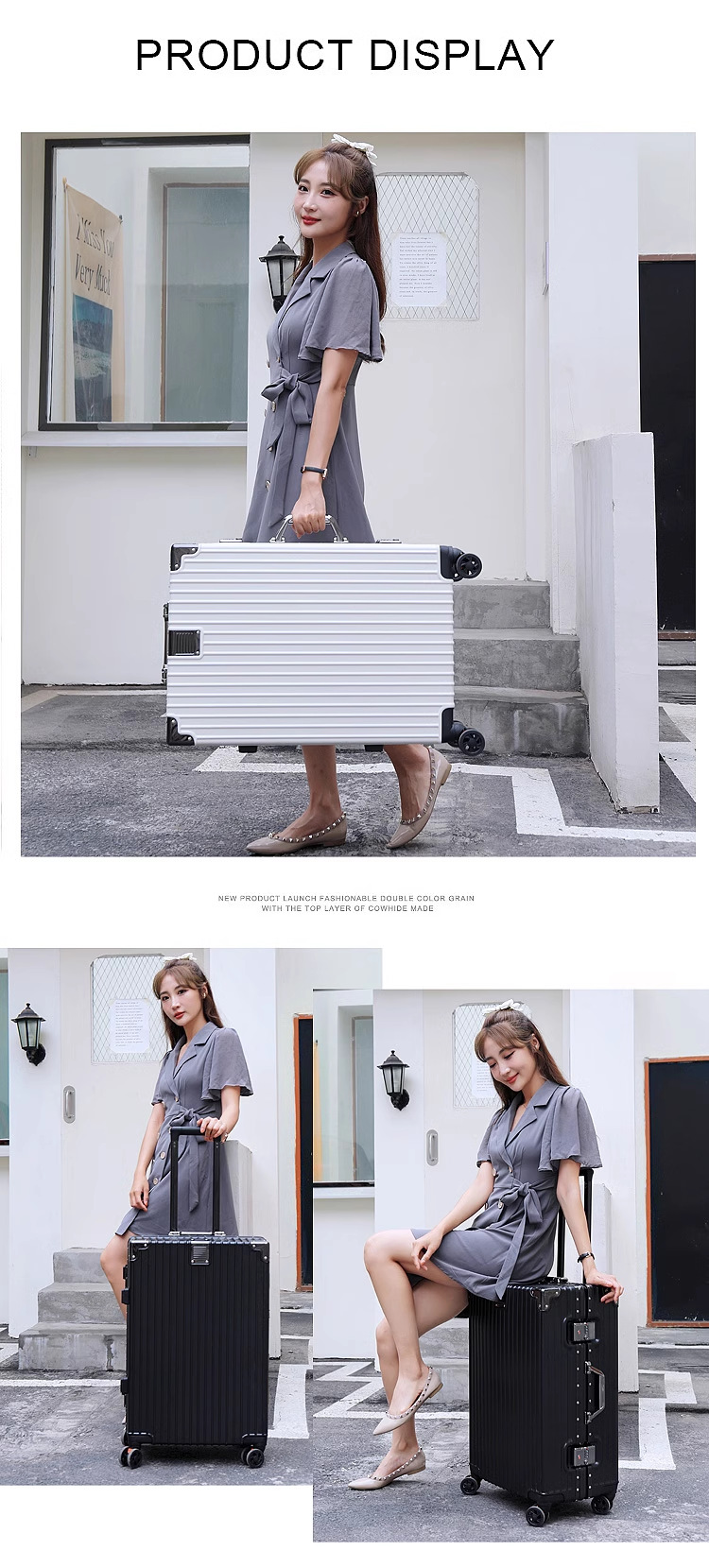 수하물 가방 알루미늄 프레임 20 트롤리 케이스 유니버설 휠 24 여성 남성 학생 26 내구성 암호 28 인치 가죽 케이스