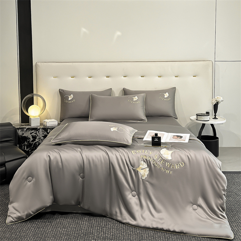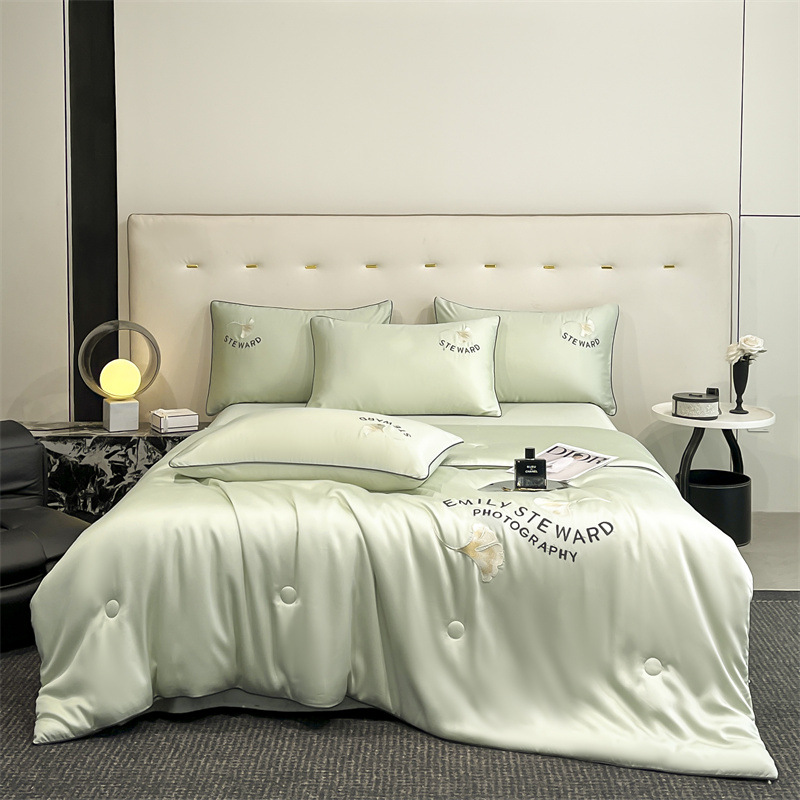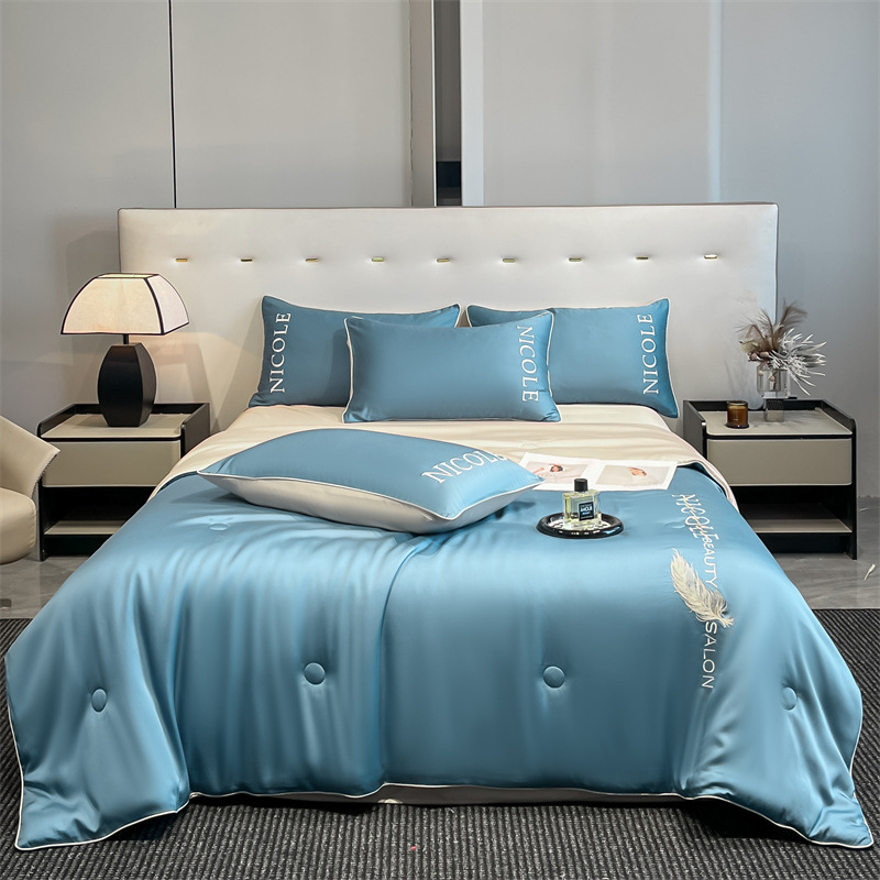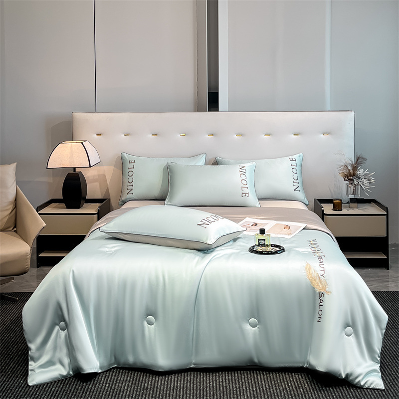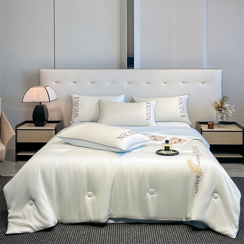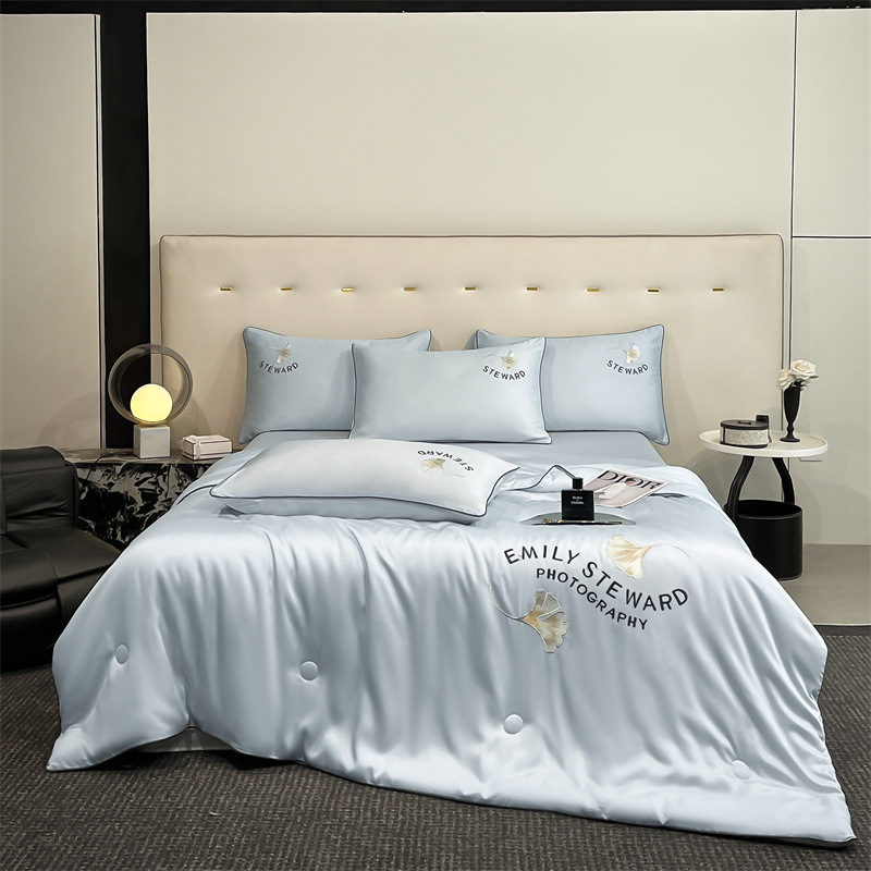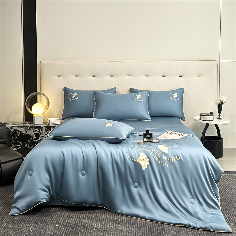 A급 여름 이불 4종 세트, 여름 시원한 이불, 자수 에어컨 이불, 시원한 실크 여름 얇은 이불, 새로운 중국풍 디자인, 가벼운 럭셔리