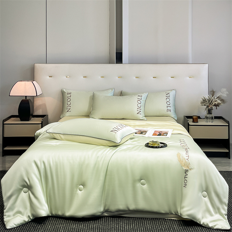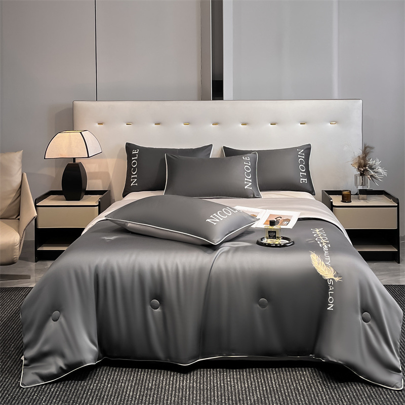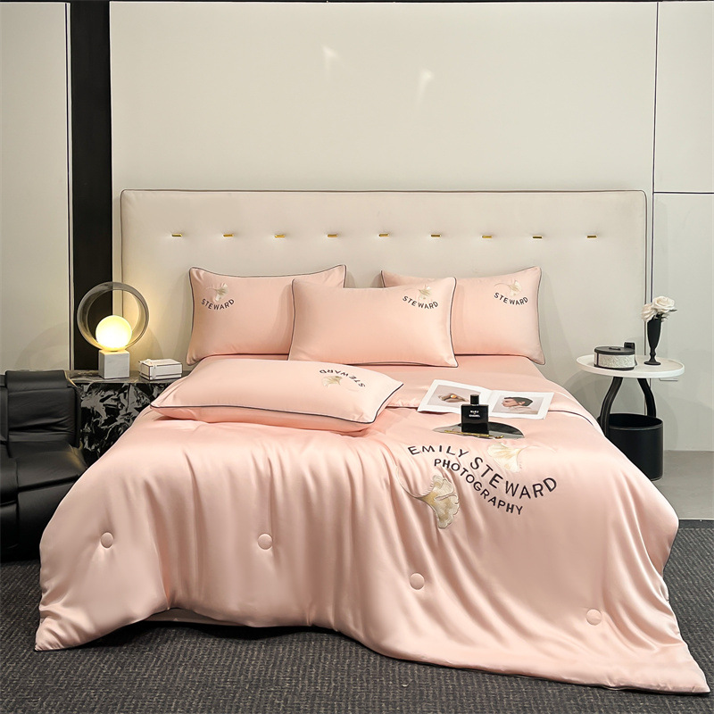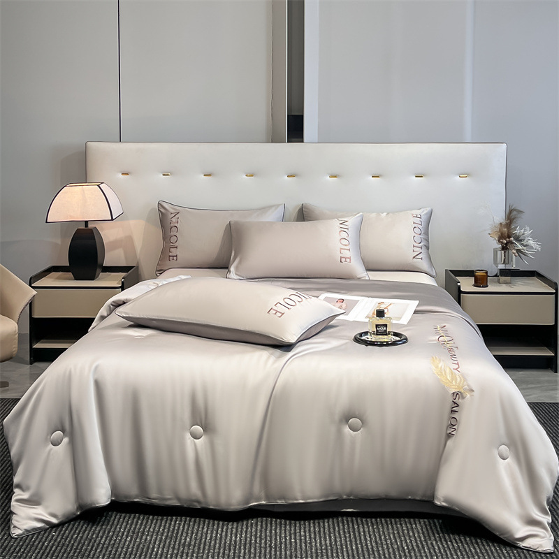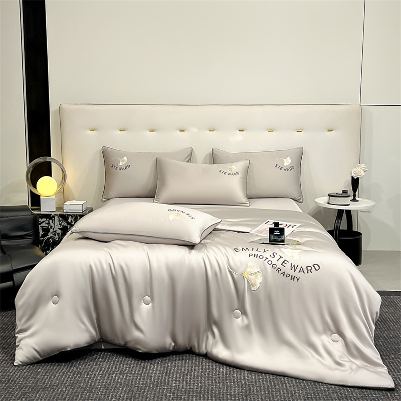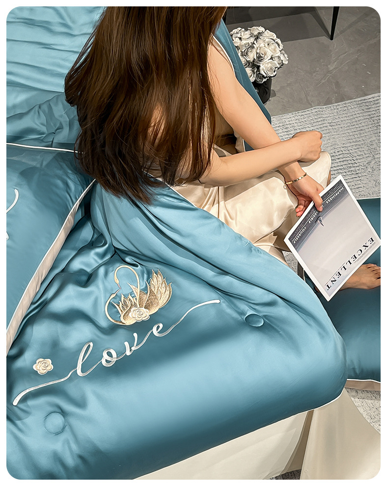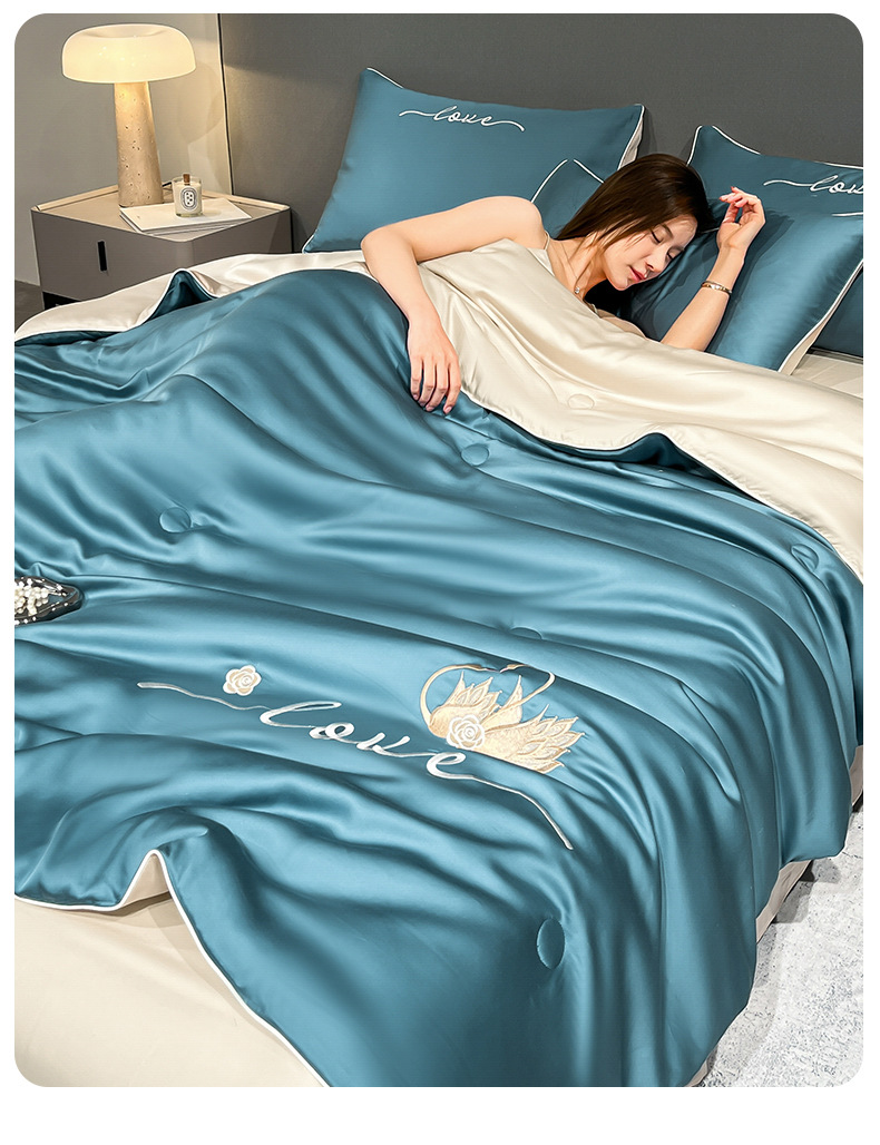 A급 여름 이불 4종 세트, 여름 시원한 이불, 자수 에어컨 이불, 시원한 실크 여름 얇은 이불, 새로운 중국풍 디자인, 가벼운 럭셔리
