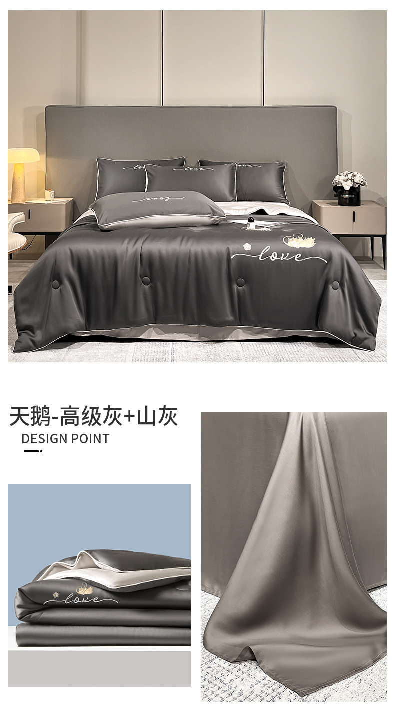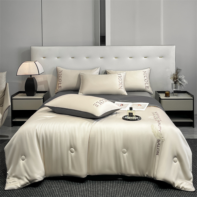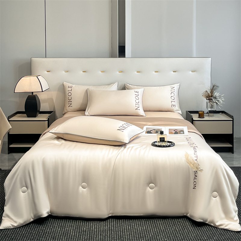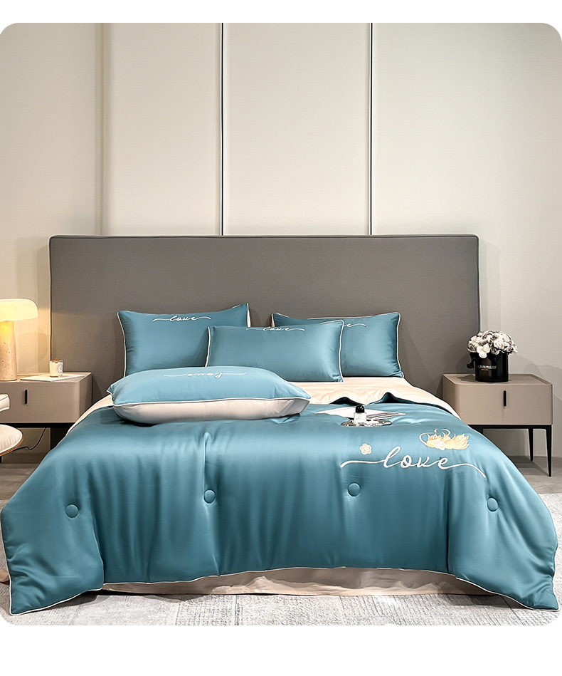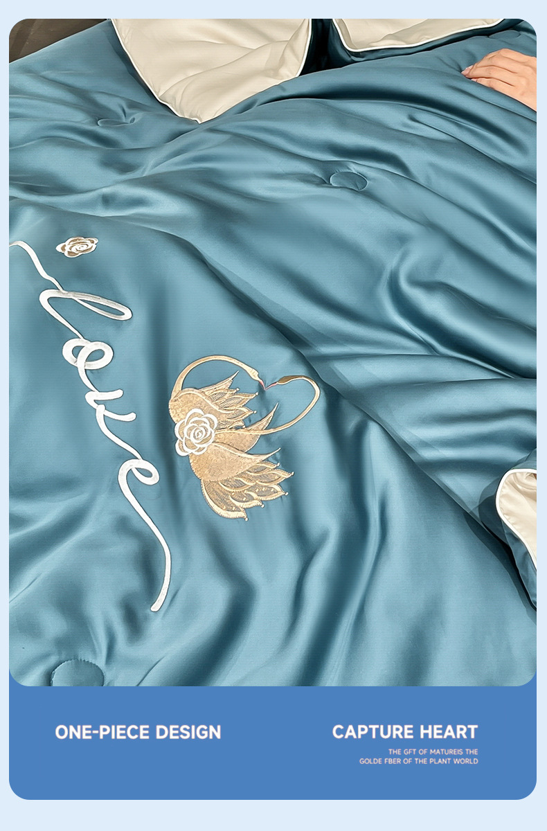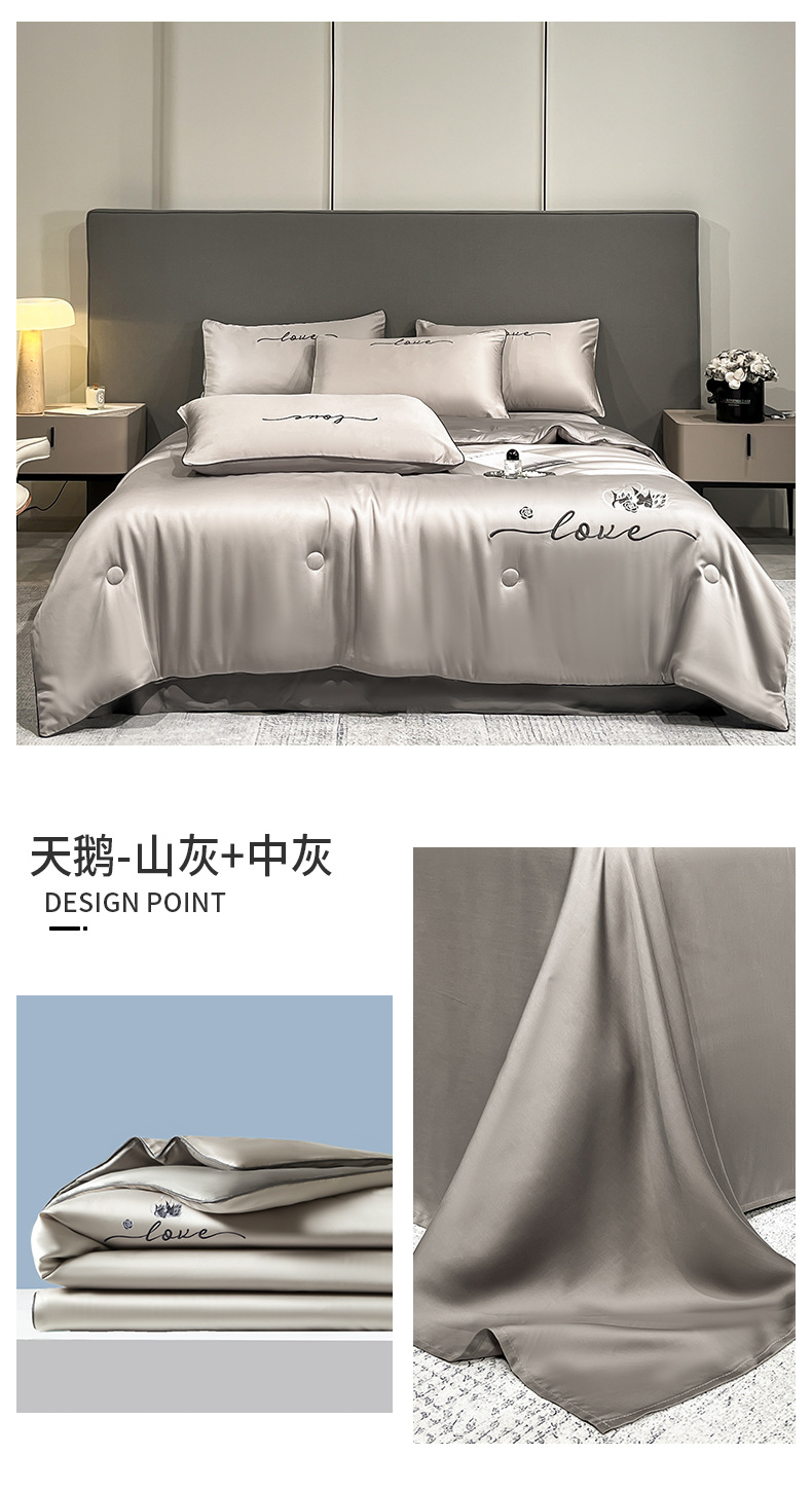 A급 여름 이불 4종 세트, 여름 시원한 이불, 자수 에어컨 이불, 시원한 실크 여름 얇은 이불, 새로운 중국풍 디자인, 가벼운 럭셔리