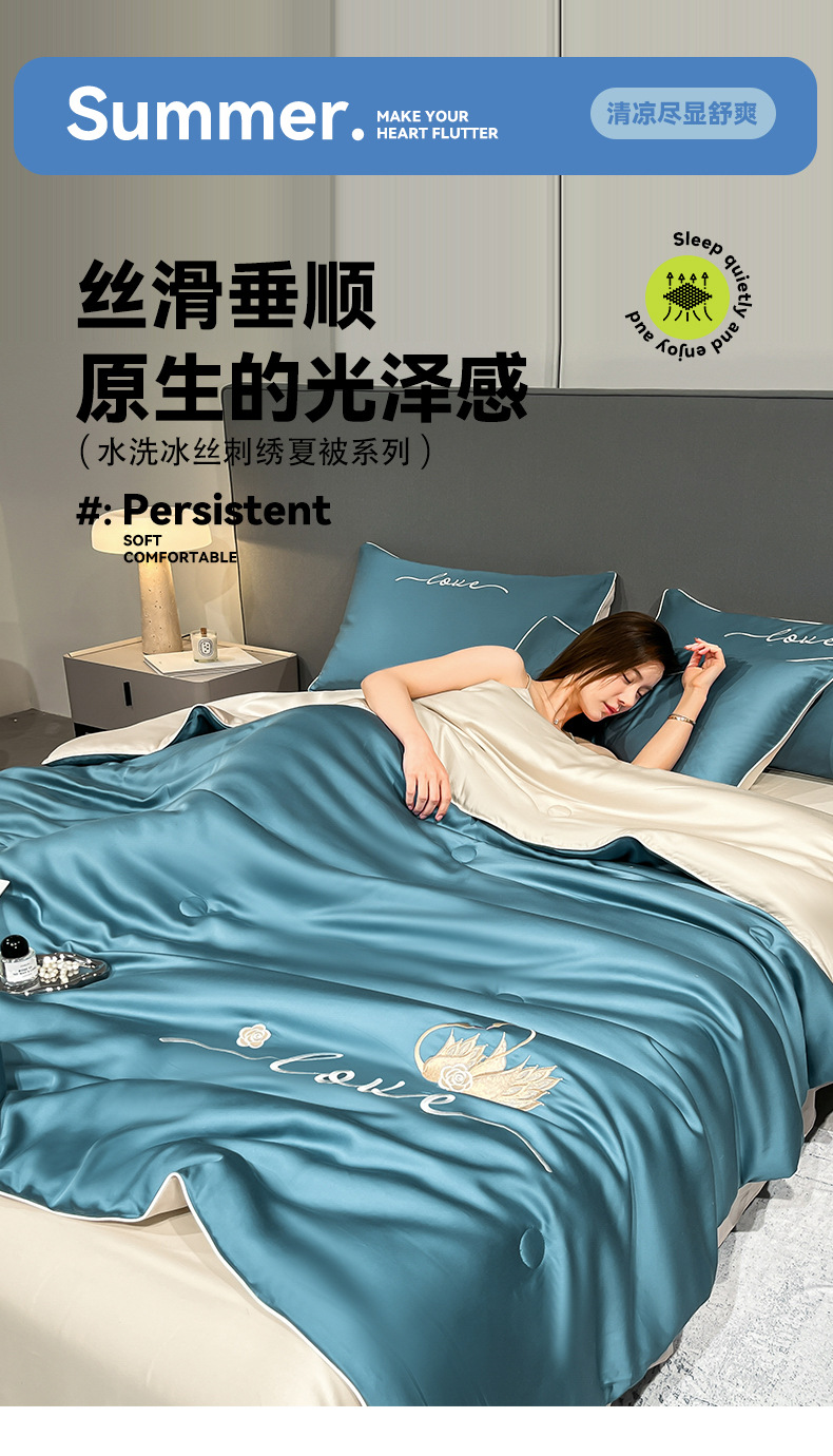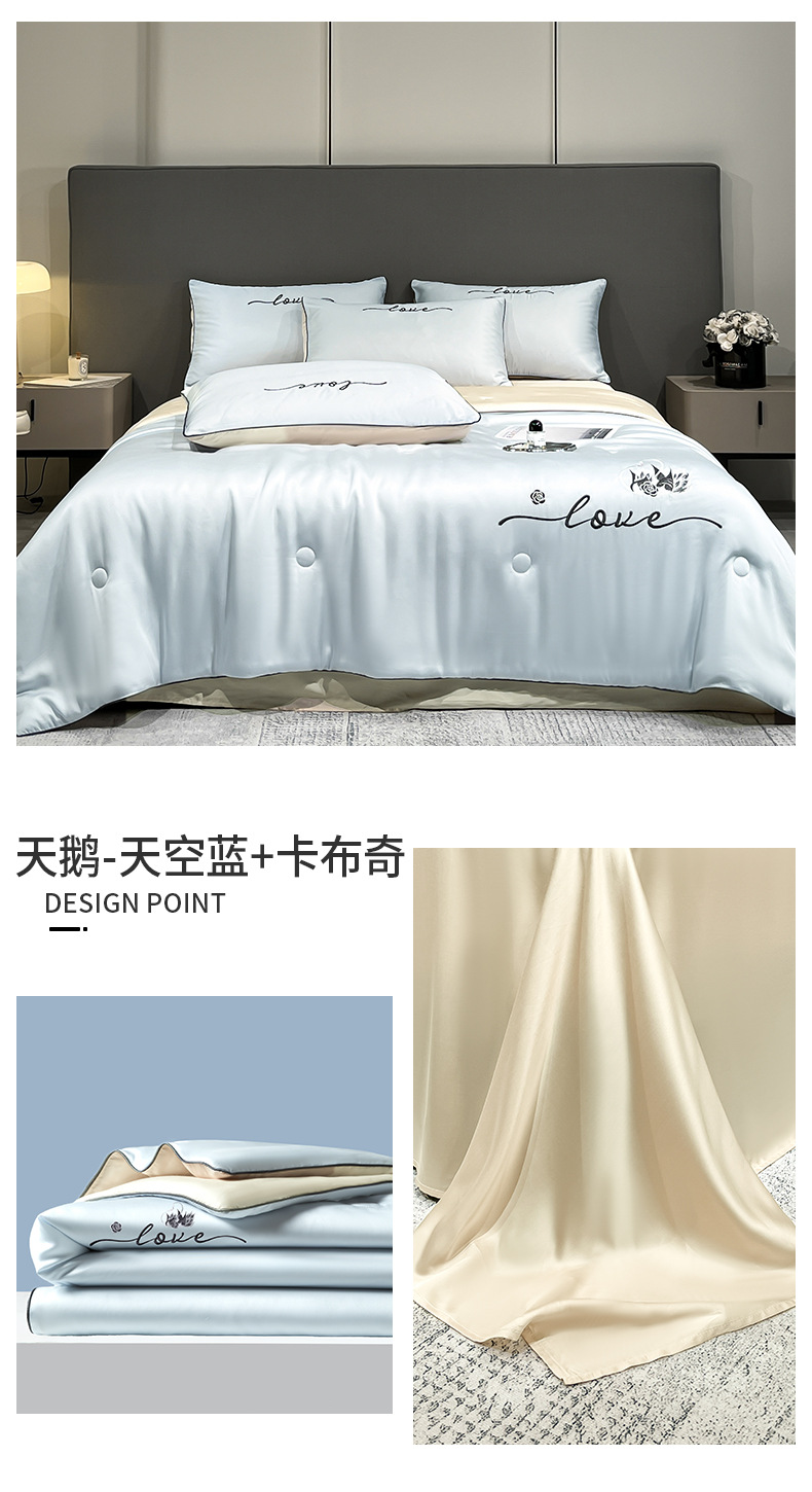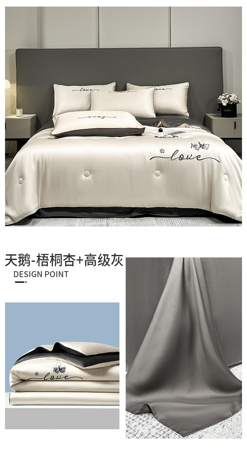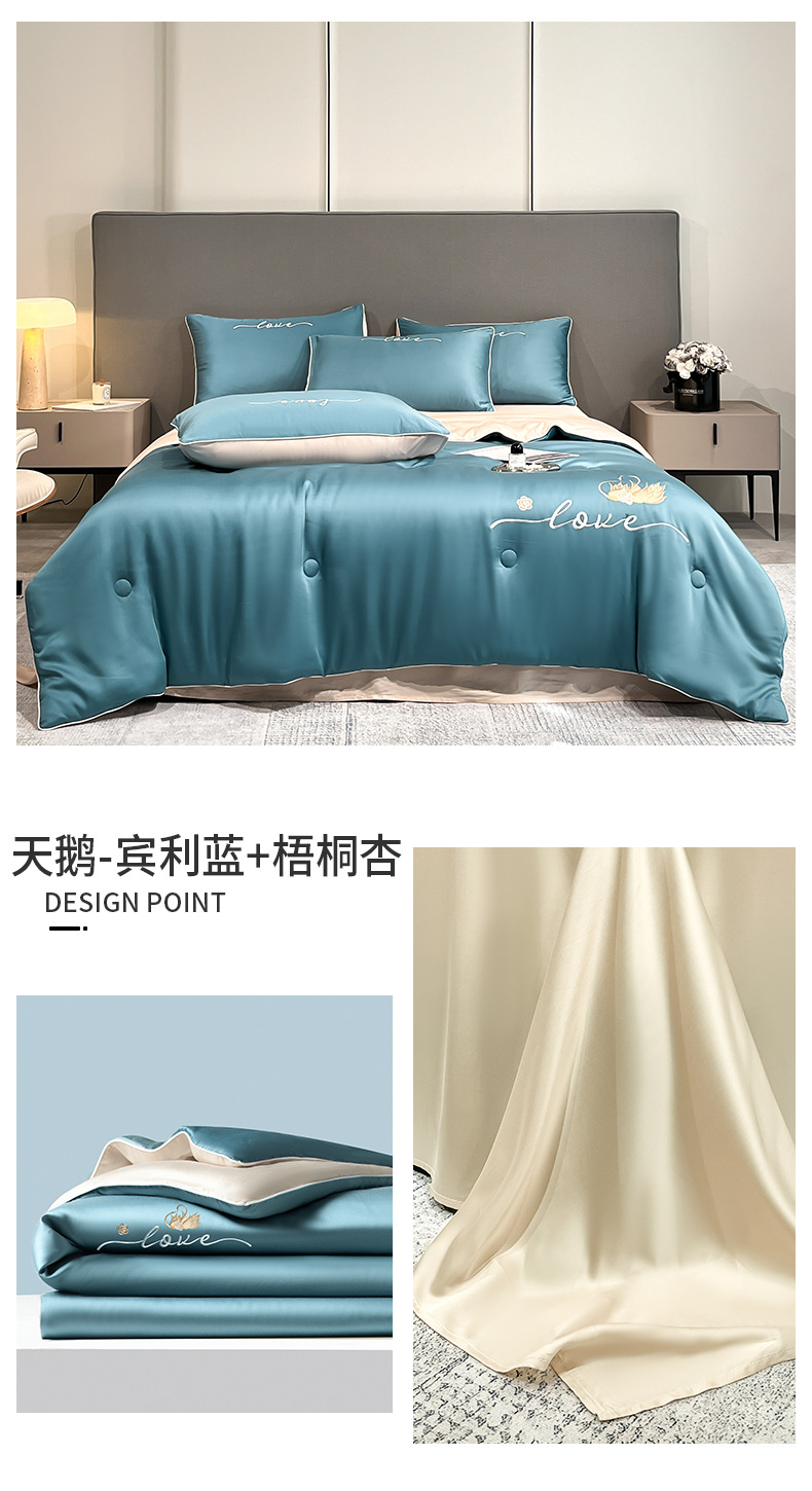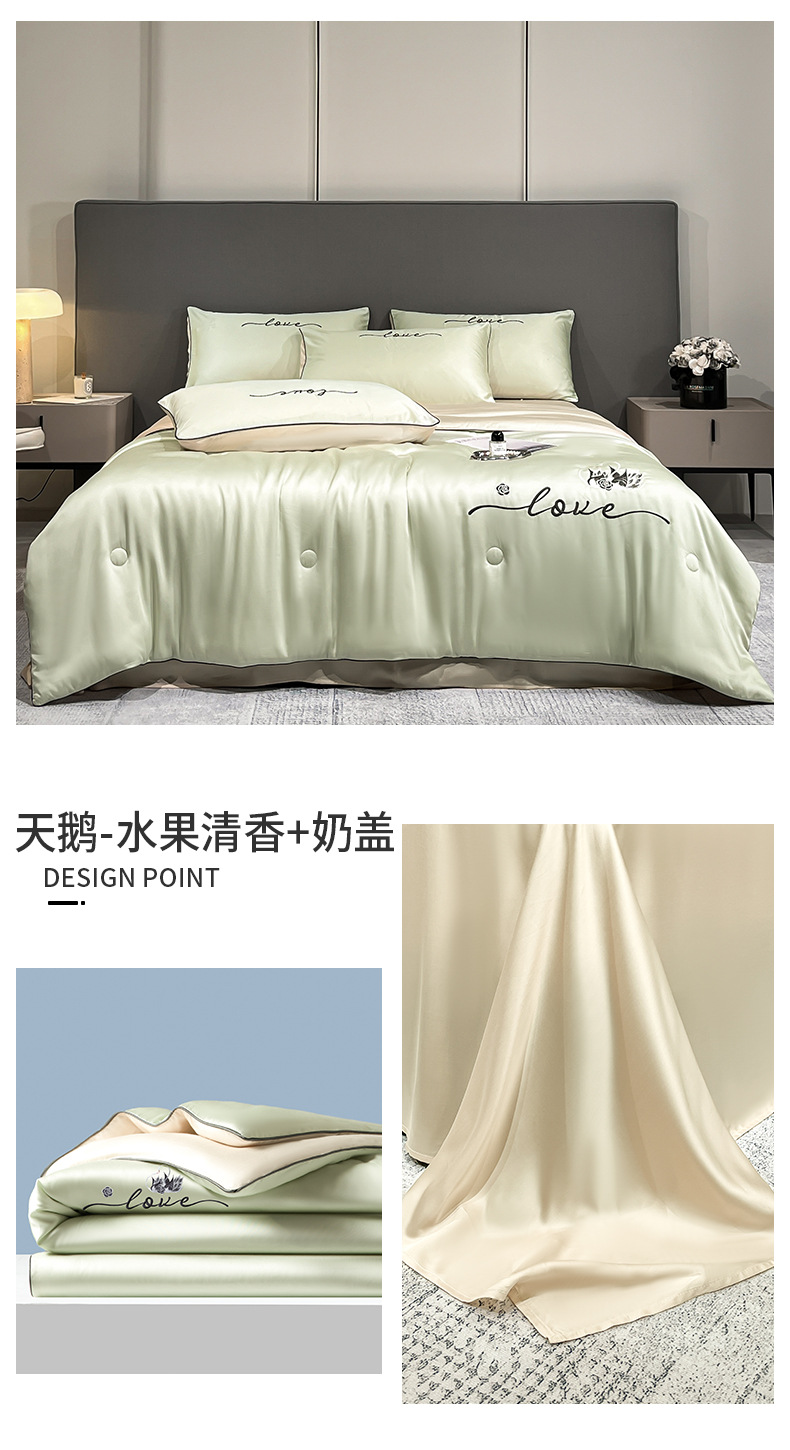 A급 여름 이불 4종 세트, 여름 시원한 이불, 자수 에어컨 이불, 시원한 실크 여름 얇은 이불, 새로운 중국풍 디자인, 가벼운 럭셔리스토어 가기
