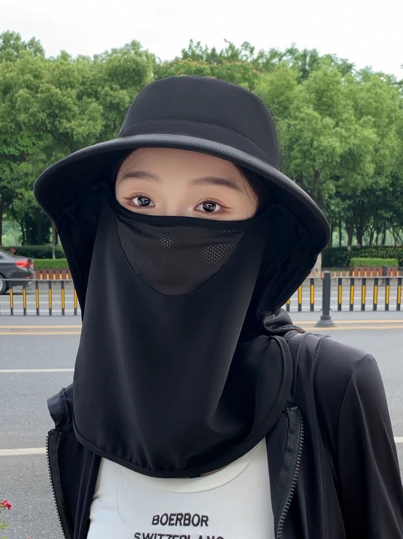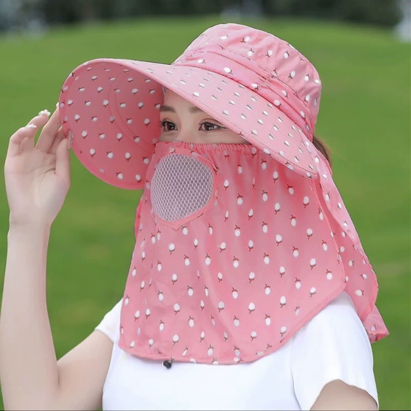 모든 라운드 야외 태양 보호 모자 모자 여성의 여름 태양 모자 큰 테두리 얼굴 마스크 자외선 목 보호 태양 모자