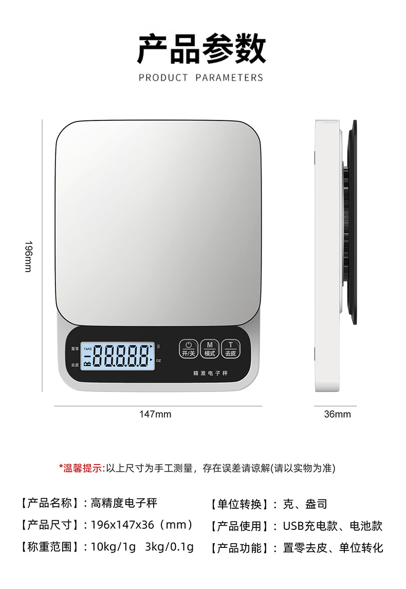 가정용 스테인레스 스틸 고정밀 전자 저울 소형 충전식 정밀 주방 전자 저울 드롭 배송스토어 가기