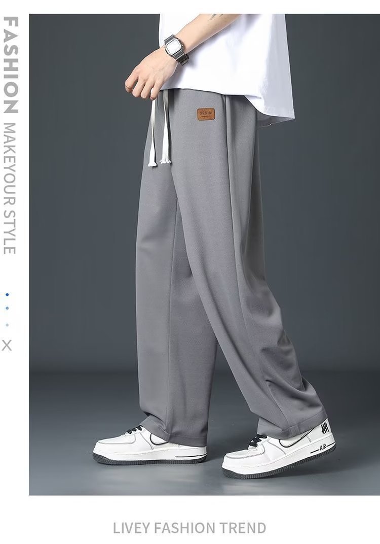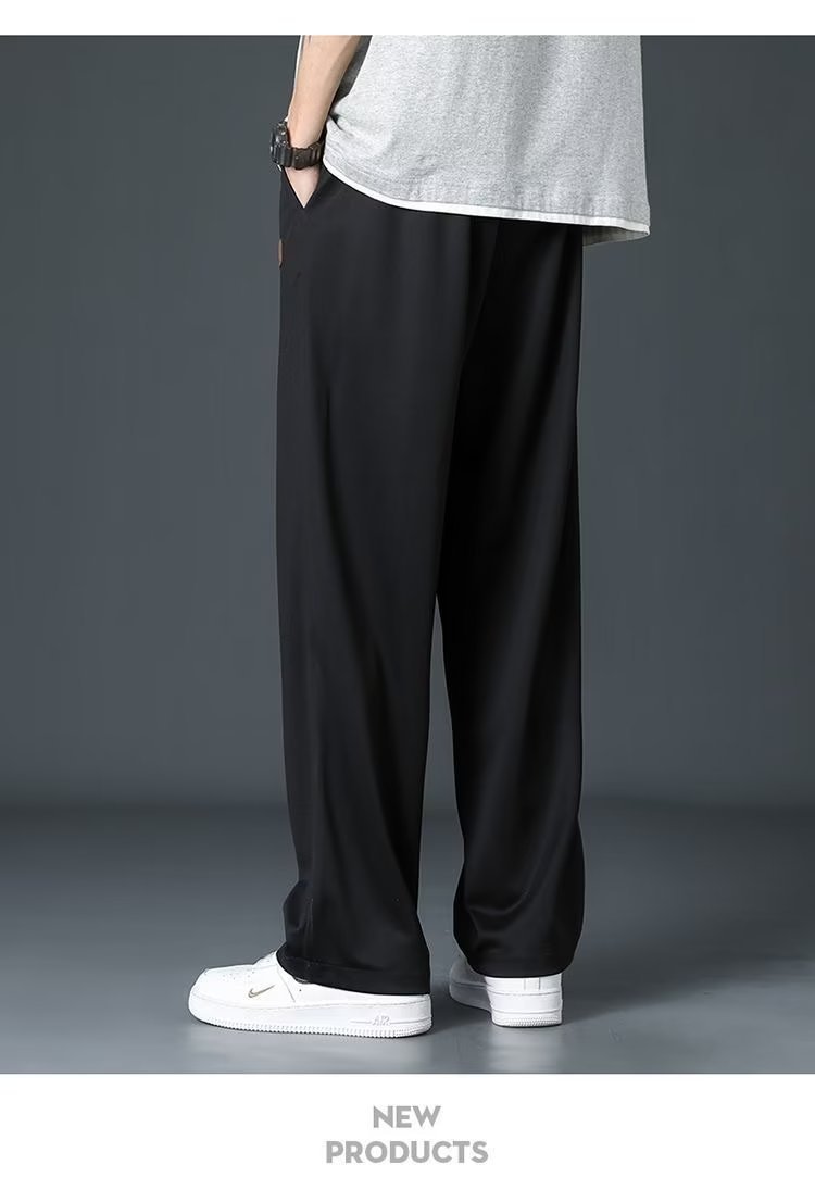 아이스 실크 스트레이트 바지 남자 2025 여름 얇은 빠른 건조 남성 바지 느슨한 드레이피 와이드 레그 스포츠 캐주얼 바지스토어 가기