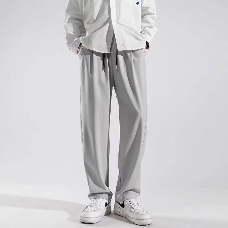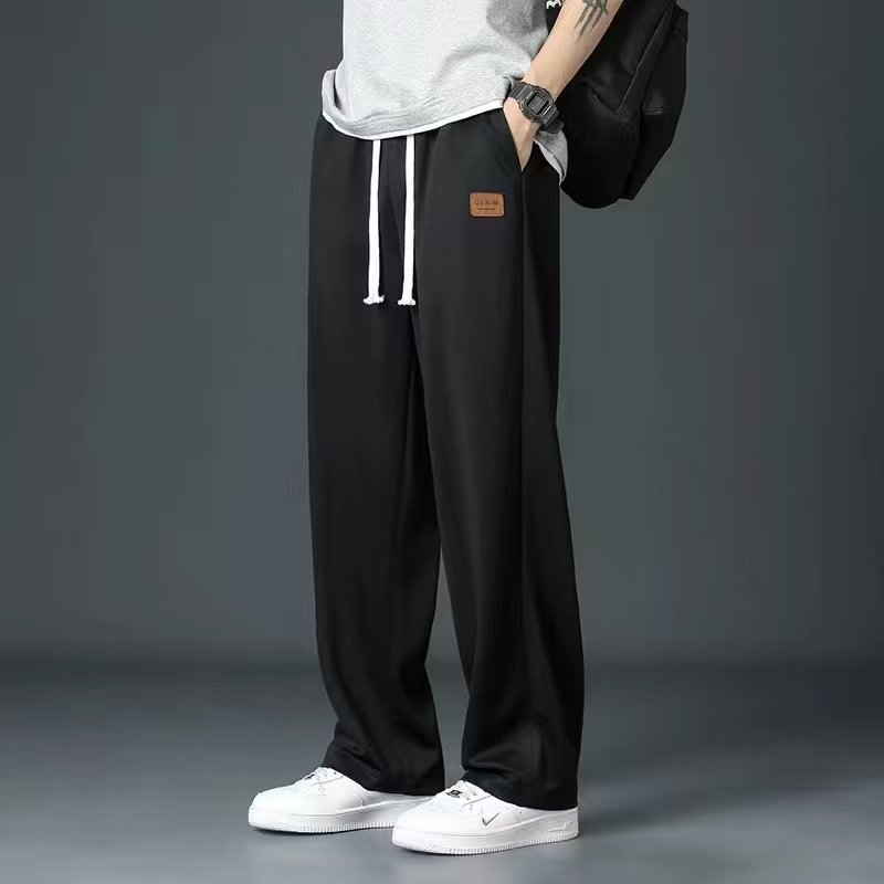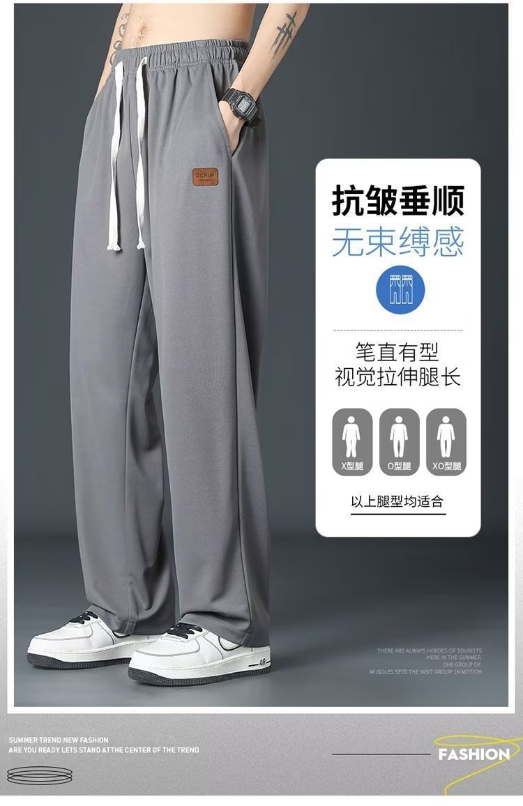 아이스 실크 스트레이트 바지 남자 2025 여름 얇은 빠른 건조 남성 바지 느슨한 드레이피 와이드 레그 스포츠 캐주얼 바지