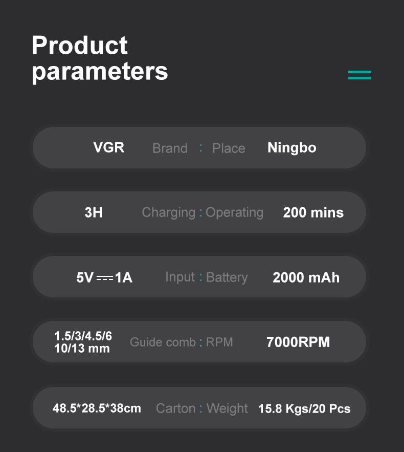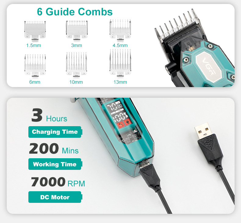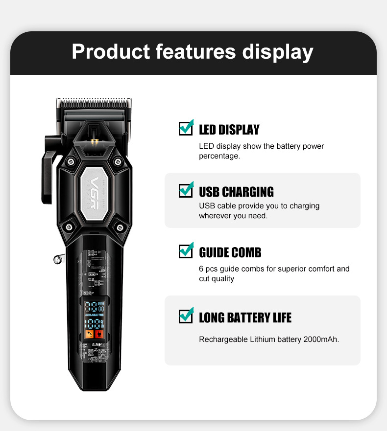 VGR600 국경 전기 헤어 클리퍼 남성 LCD 디지털 미용실 클리퍼 충전 고출력 전기 클리퍼