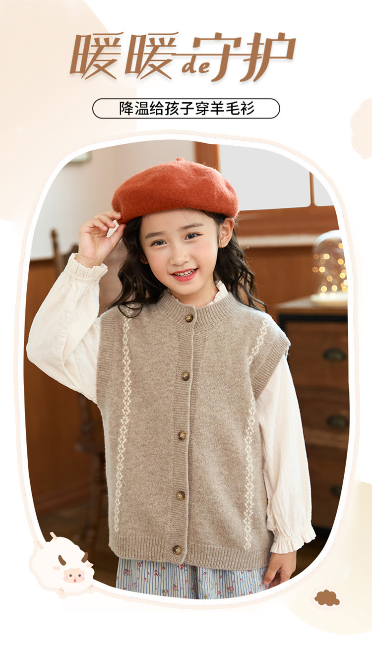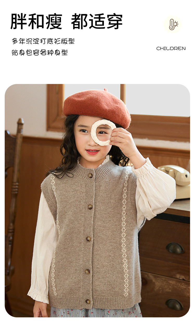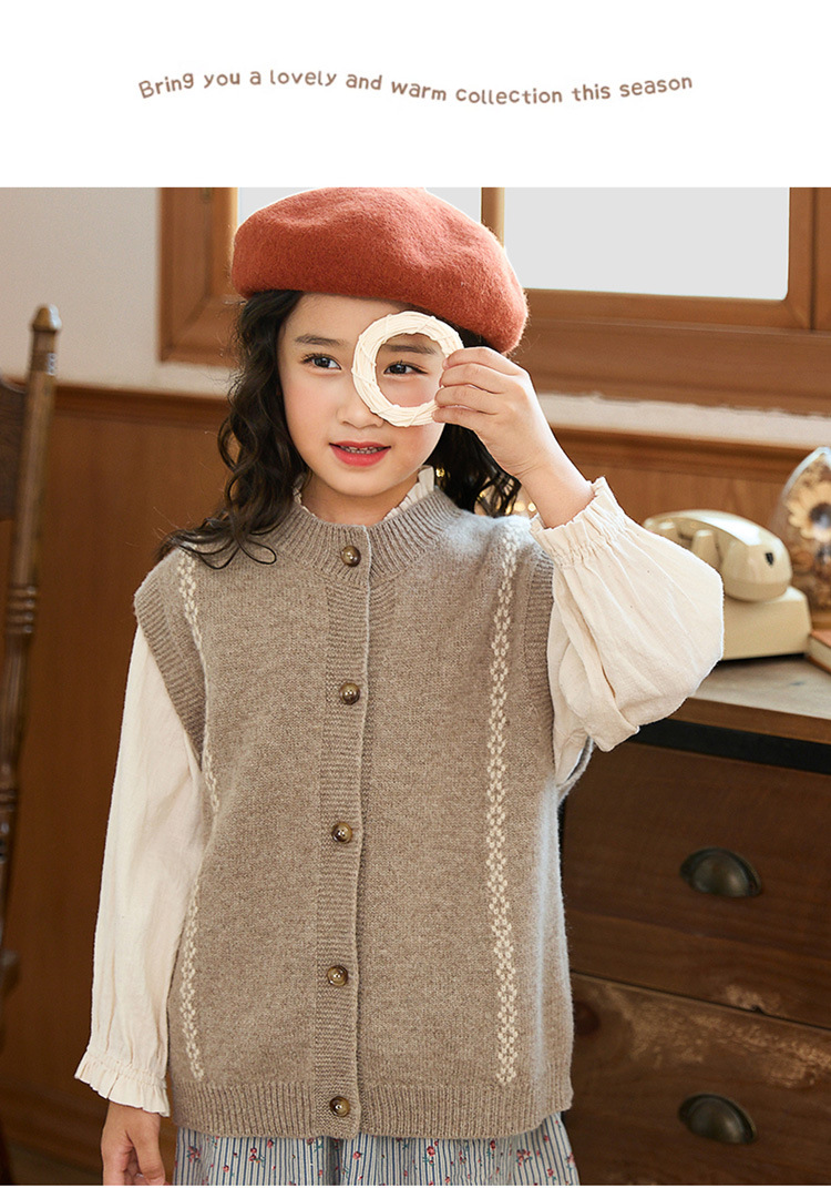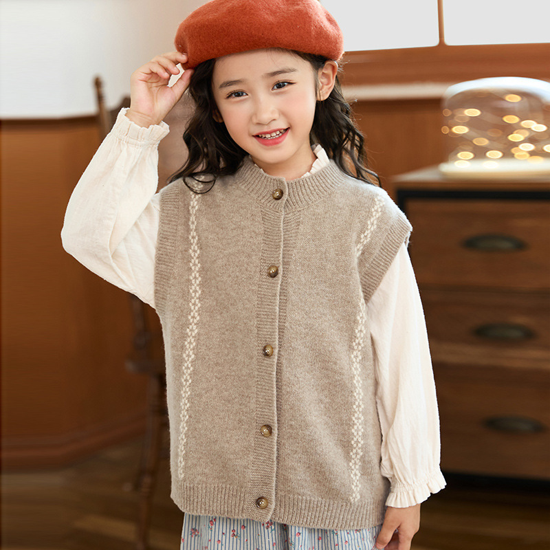 어린이 100 순수 양모 어깨 니트 조끼 가을과 겨울 아기의 올 매치 버클 허리 코트 대형 어린이를위한 민소매 카디건