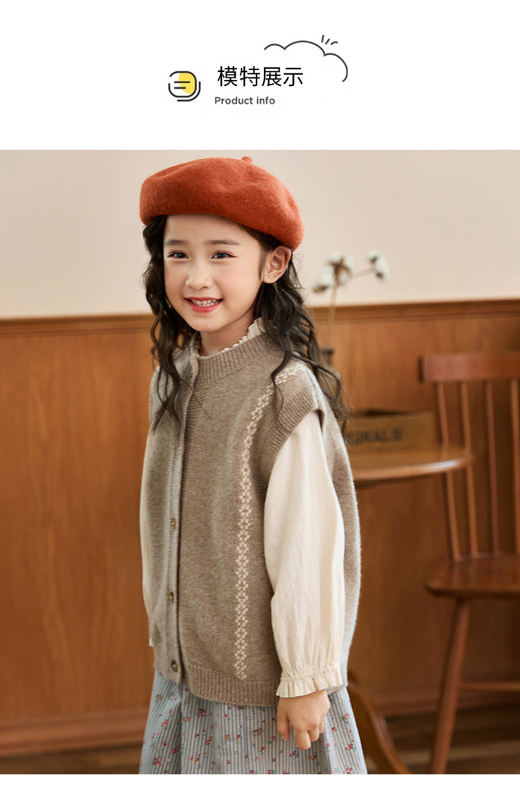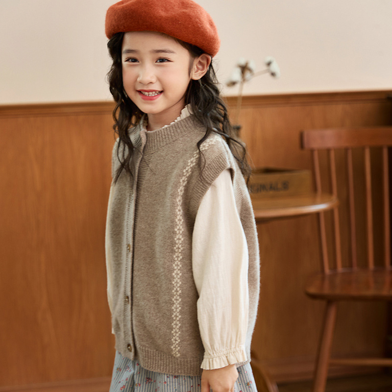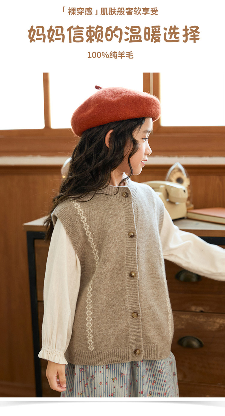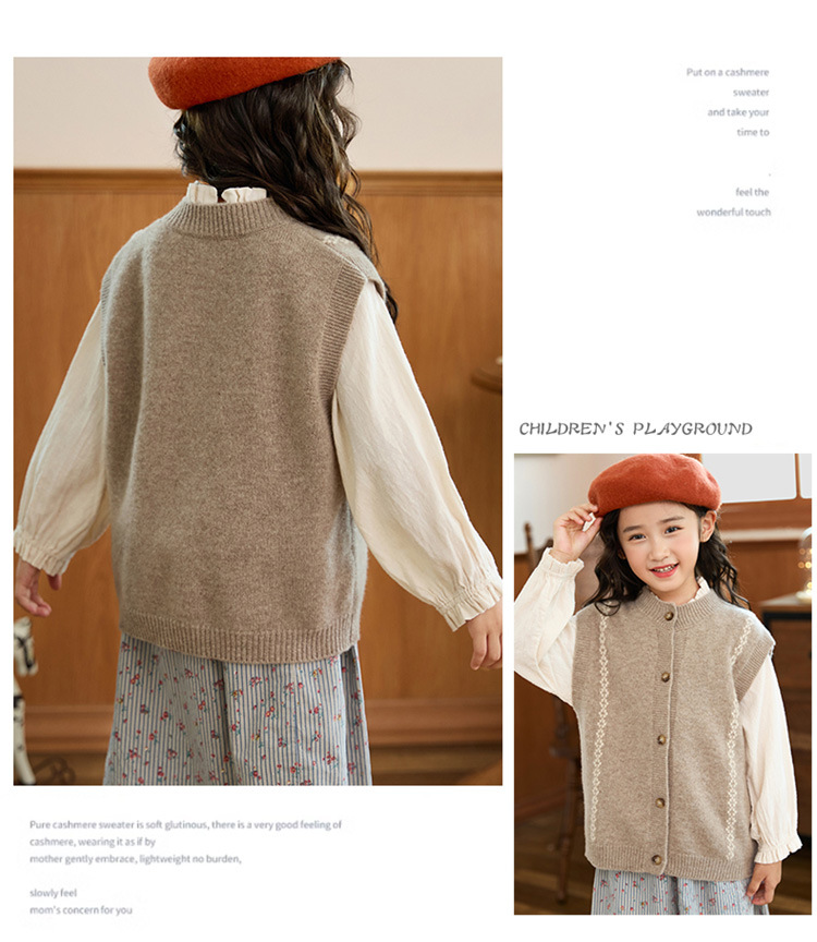 어린이 100 순수 양모 어깨 니트 조끼 가을과 겨울 아기의 올 매치 버클 허리 코트 대형 어린이를위한 민소매 카디건