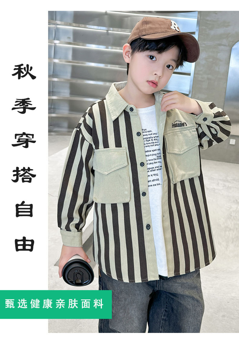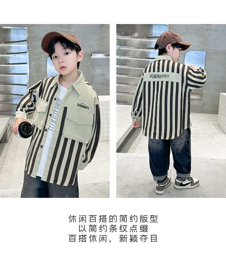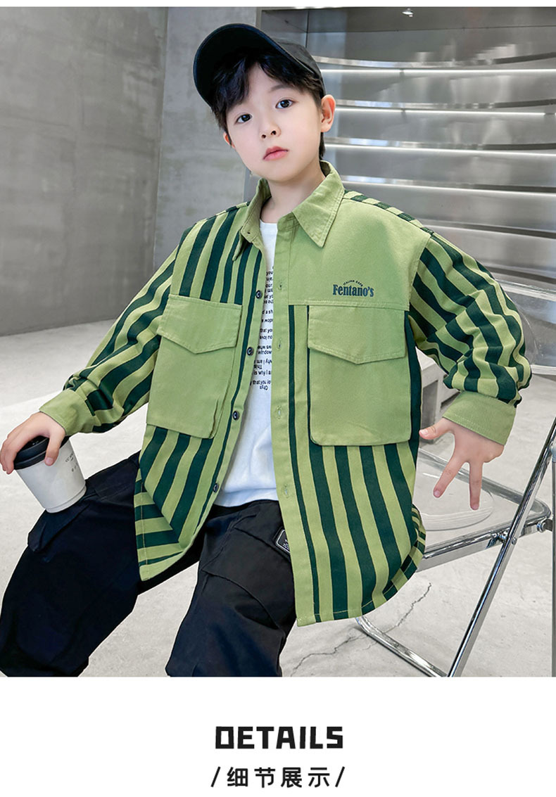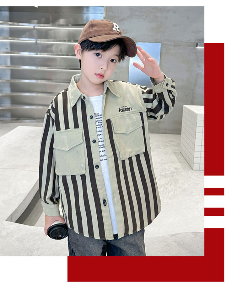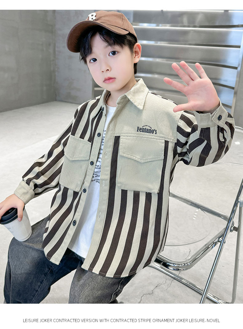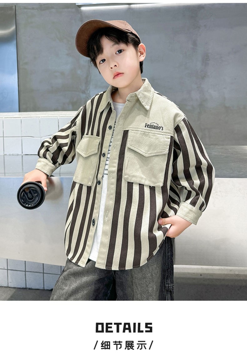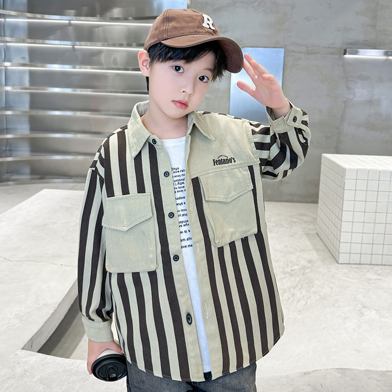 소년 줄무늬 셔츠 코트 봄과 가을 2025 새로운 어린이 의류 중대형 어린이 의류 봄 최고 패션 브랜드 의류스토어 가기