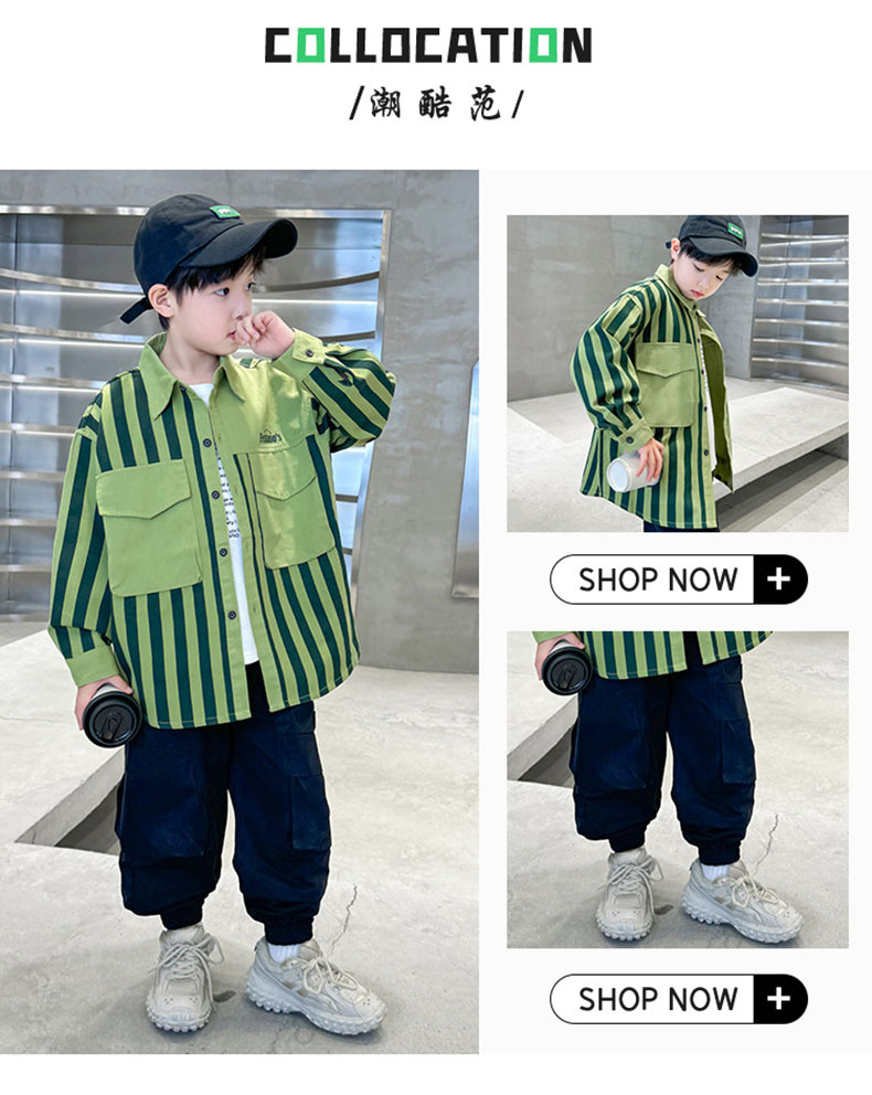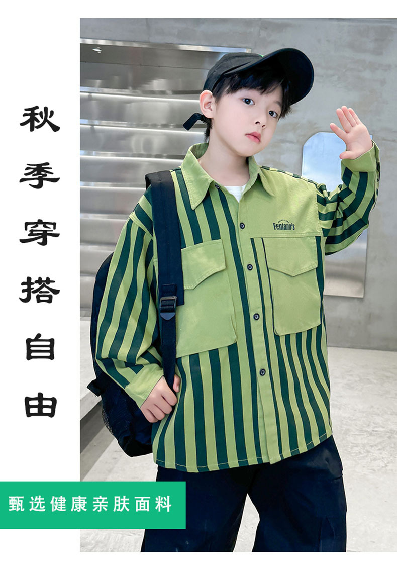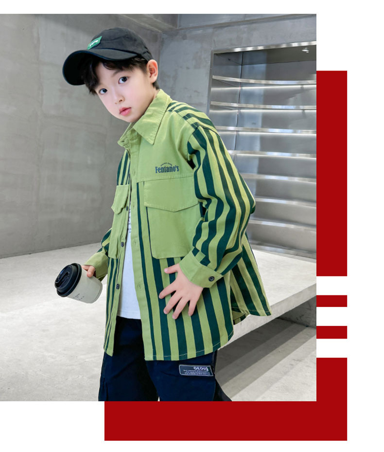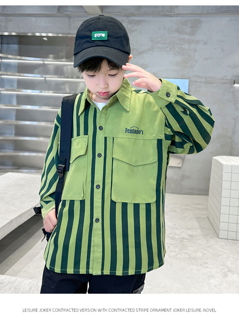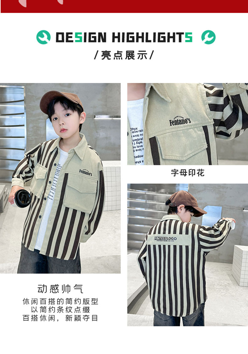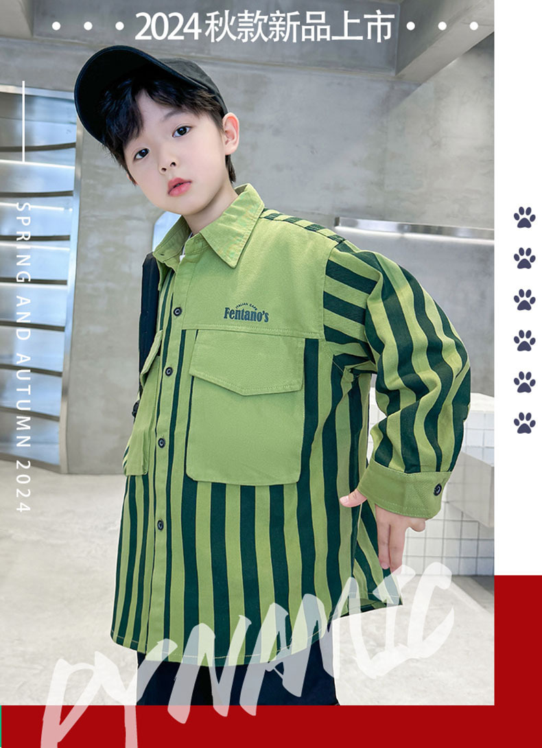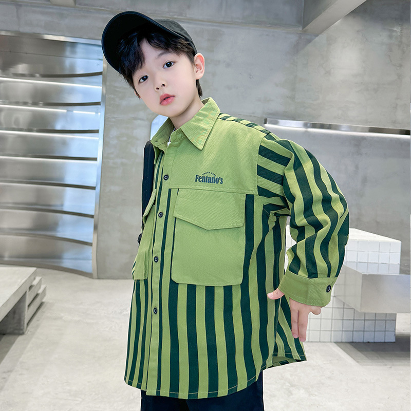 소년 줄무늬 셔츠 코트 봄과 가을 2025 새로운 어린이 의류 중대형 어린이 의류 봄 최고 패션 브랜드 의류스토어 가기