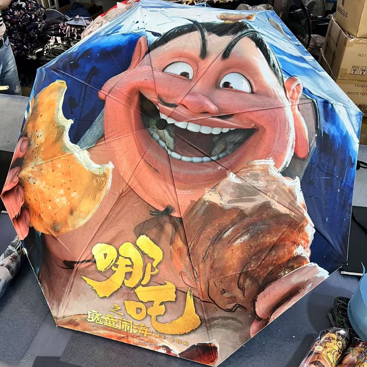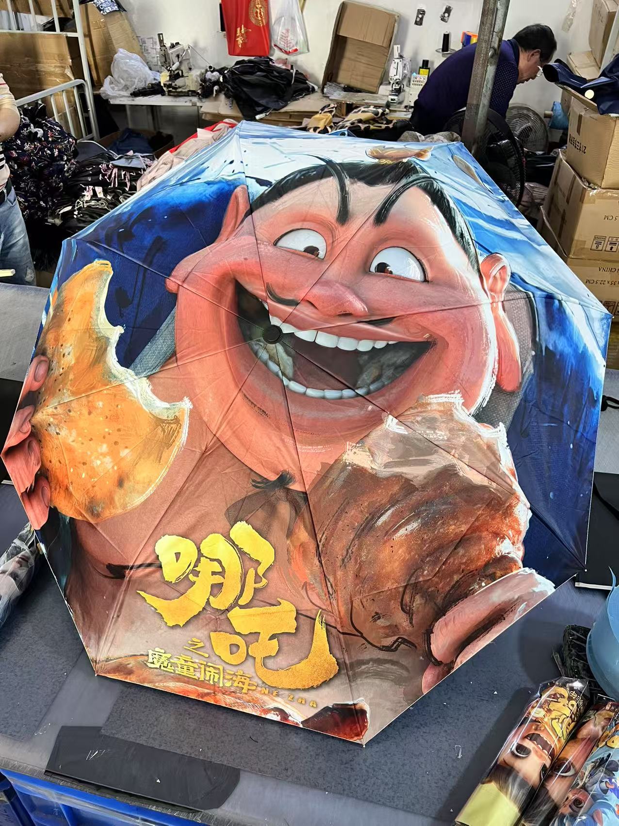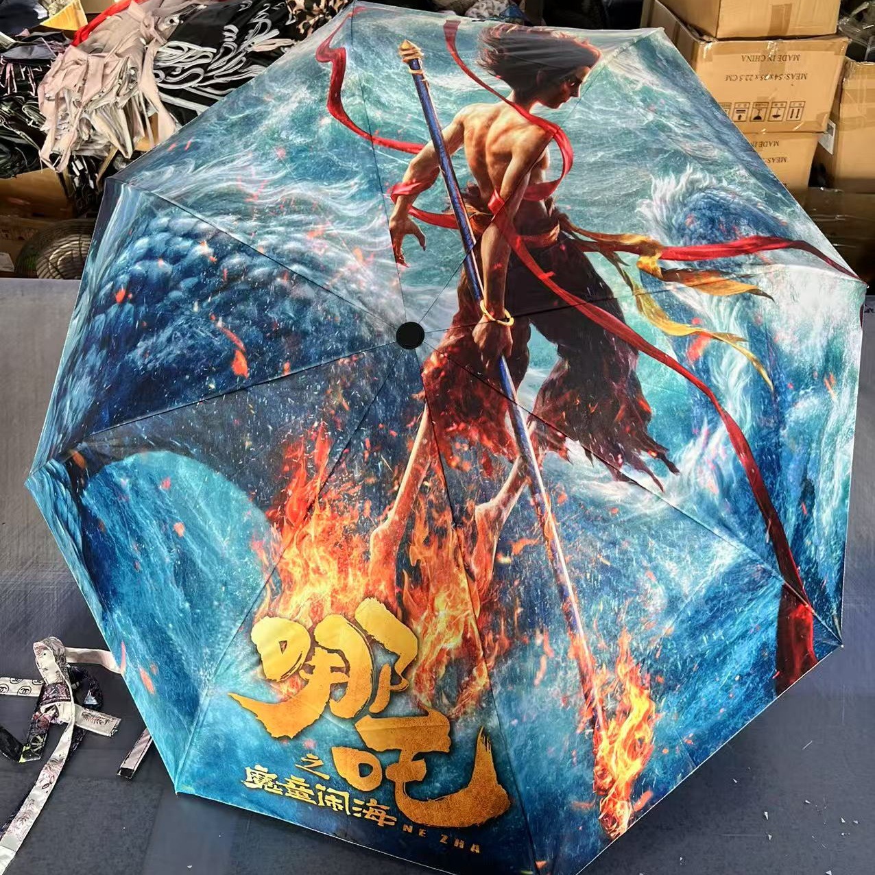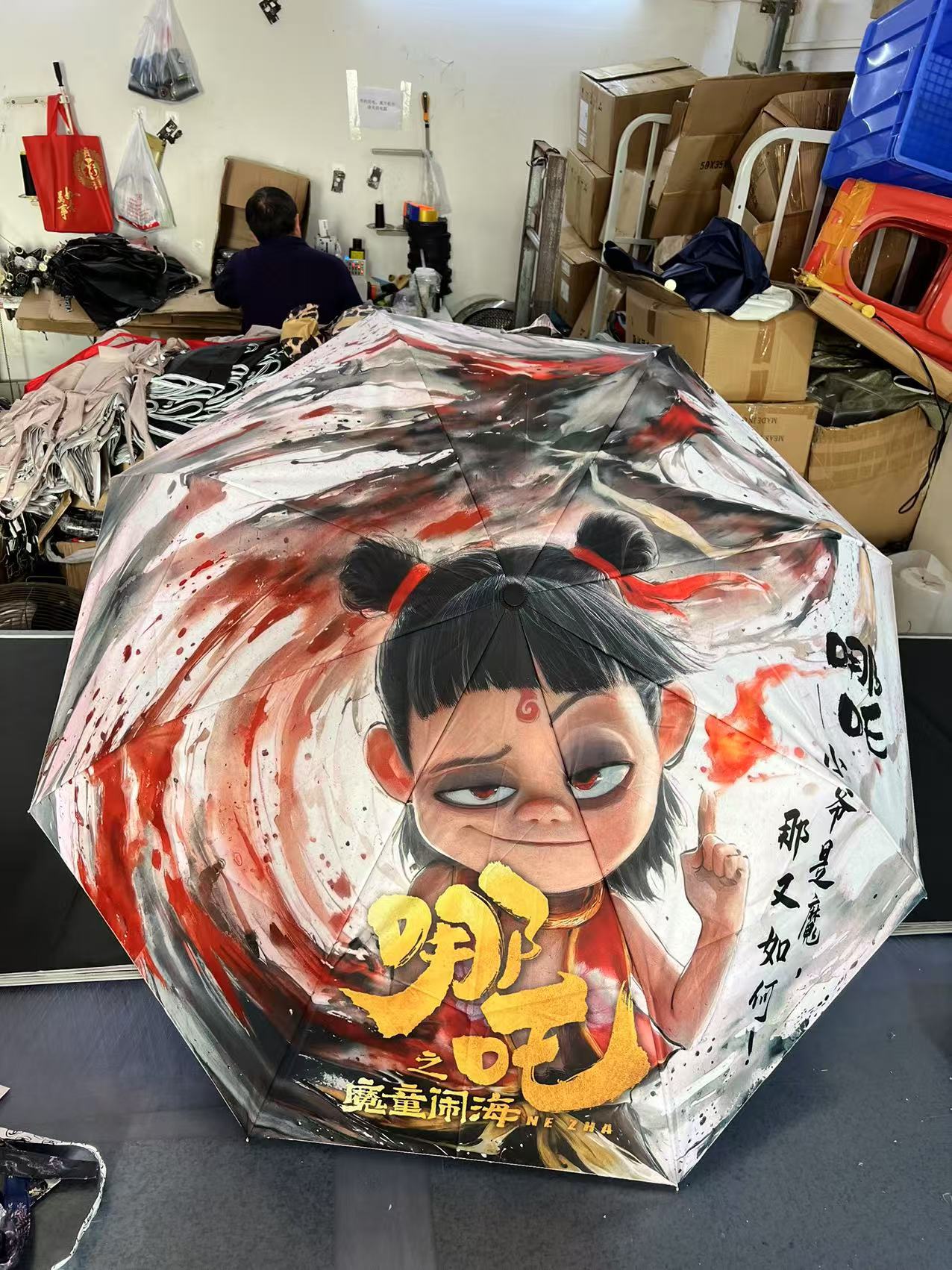 坚固的伞骨,是哪吒不屈的脊梁;绚丽的图案,展现他不羁的灵魂。当风雨来袭,撑开这把伞,如同哪吒直面命运挑战。