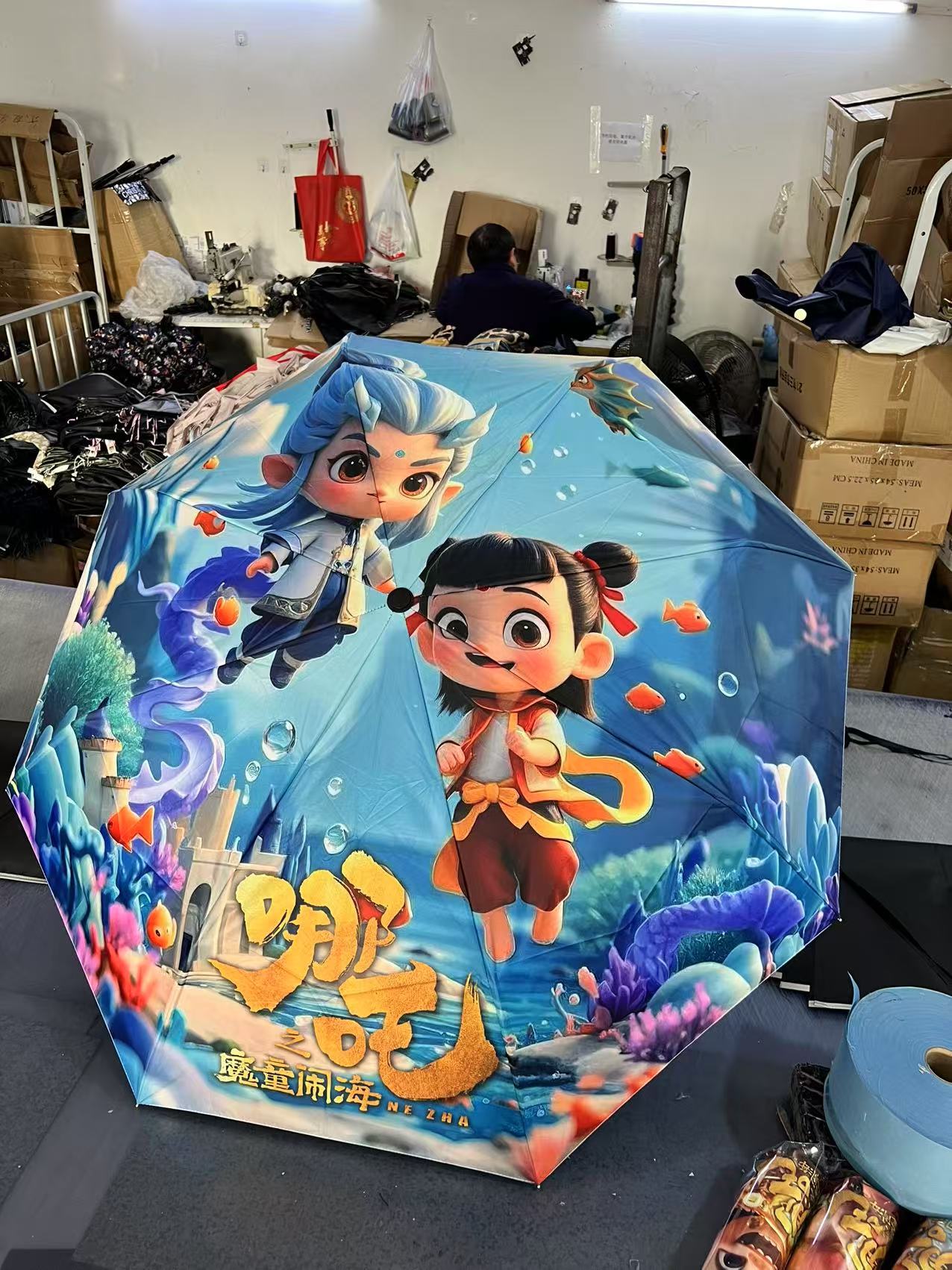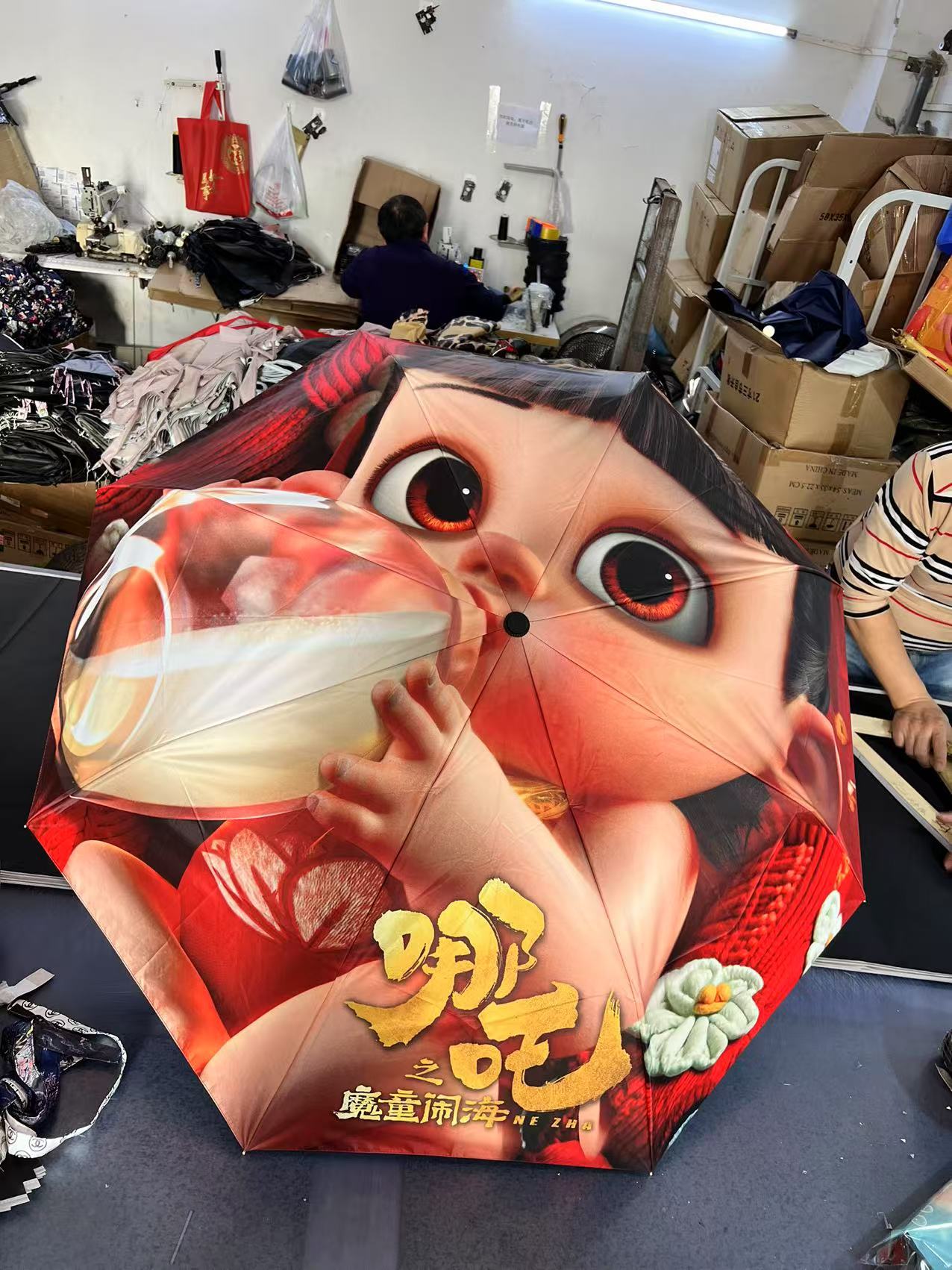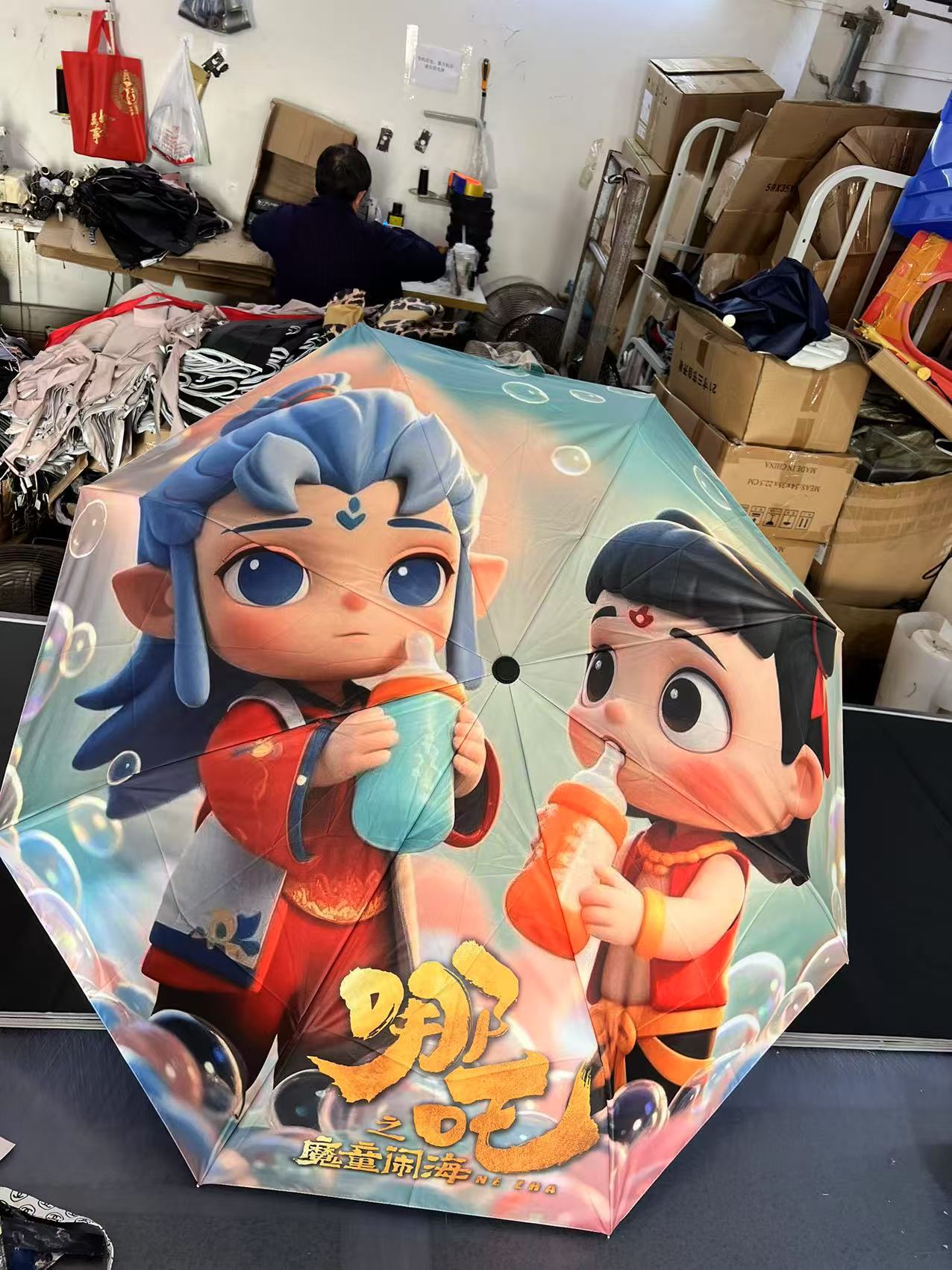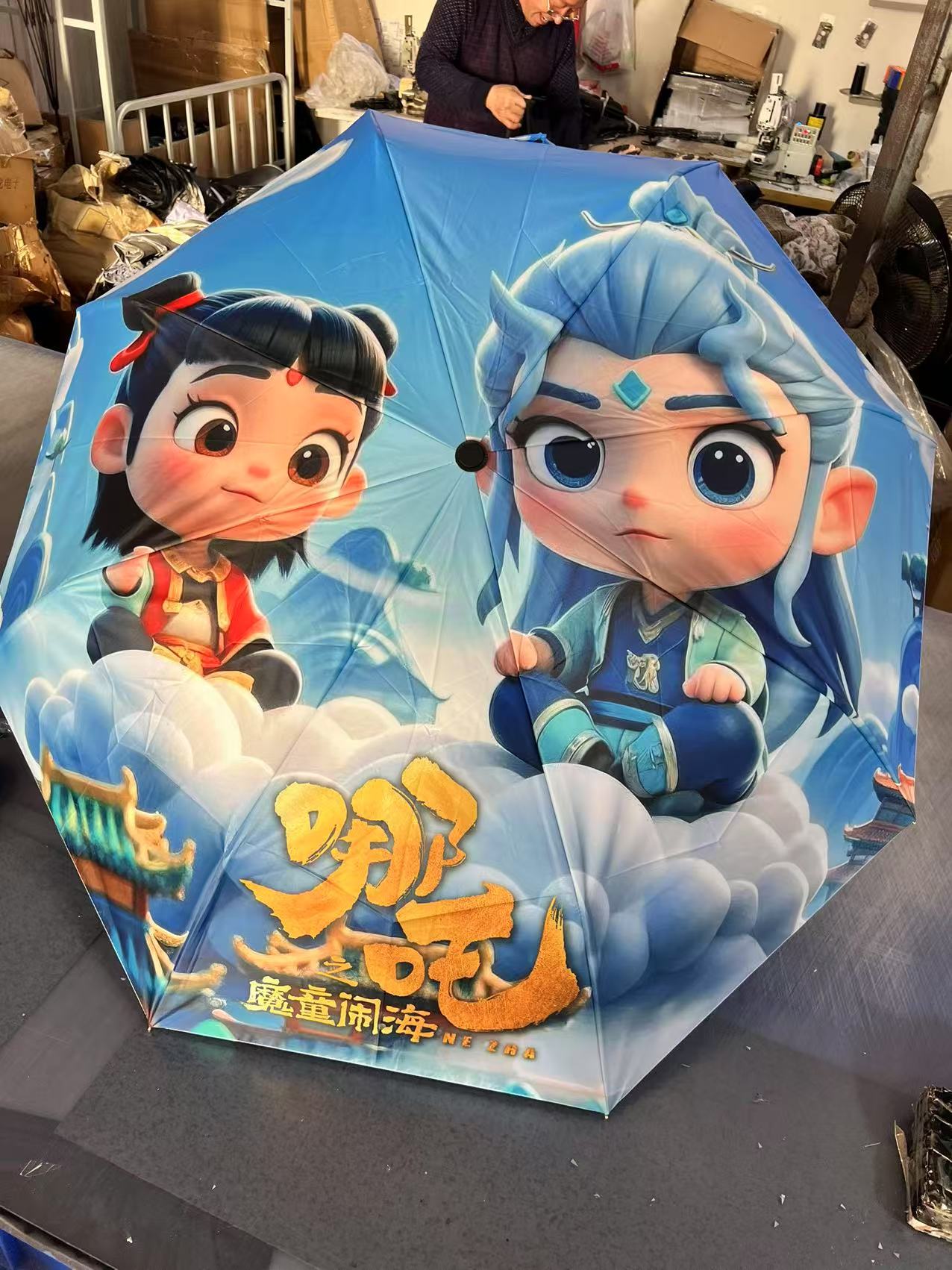 坚固的伞骨,是哪吒不屈的脊梁;绚丽的图案,展现他不羁的灵魂。当风雨来袭,撑开这把伞,如同哪吒直面命运挑战。