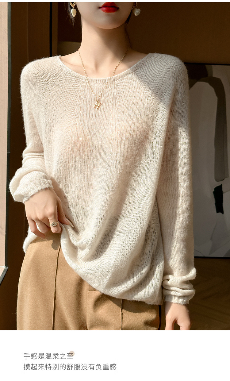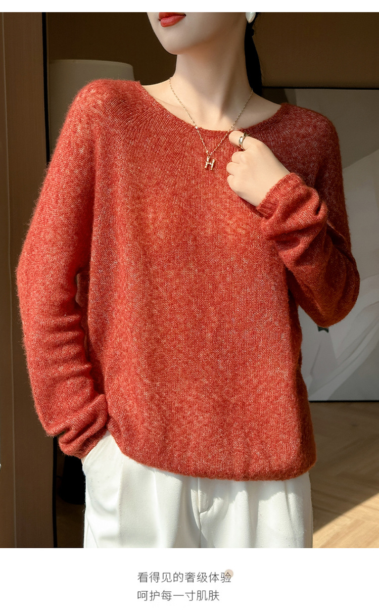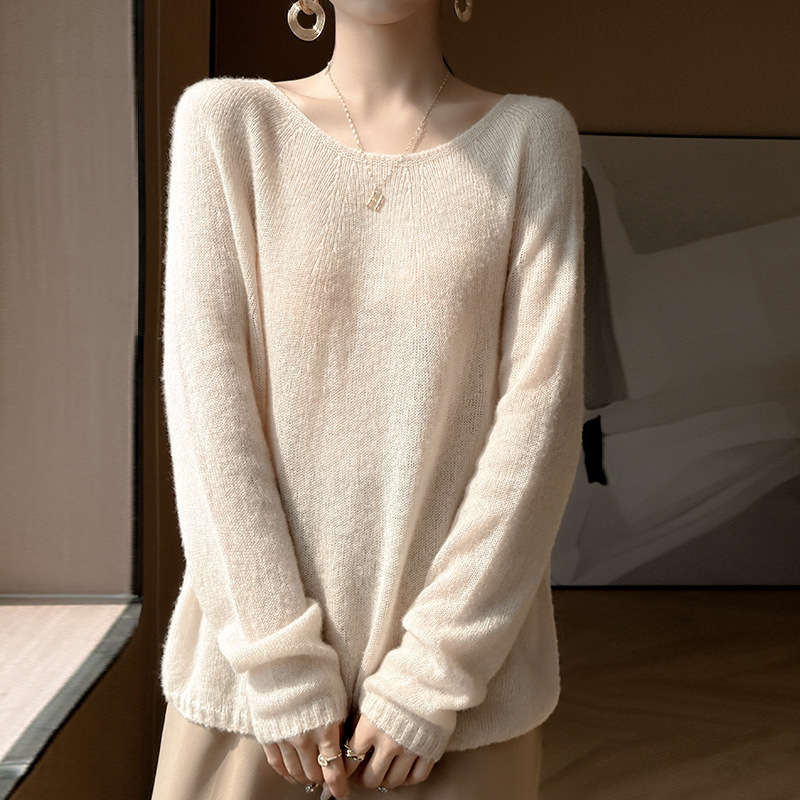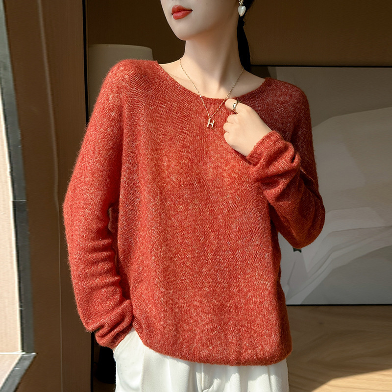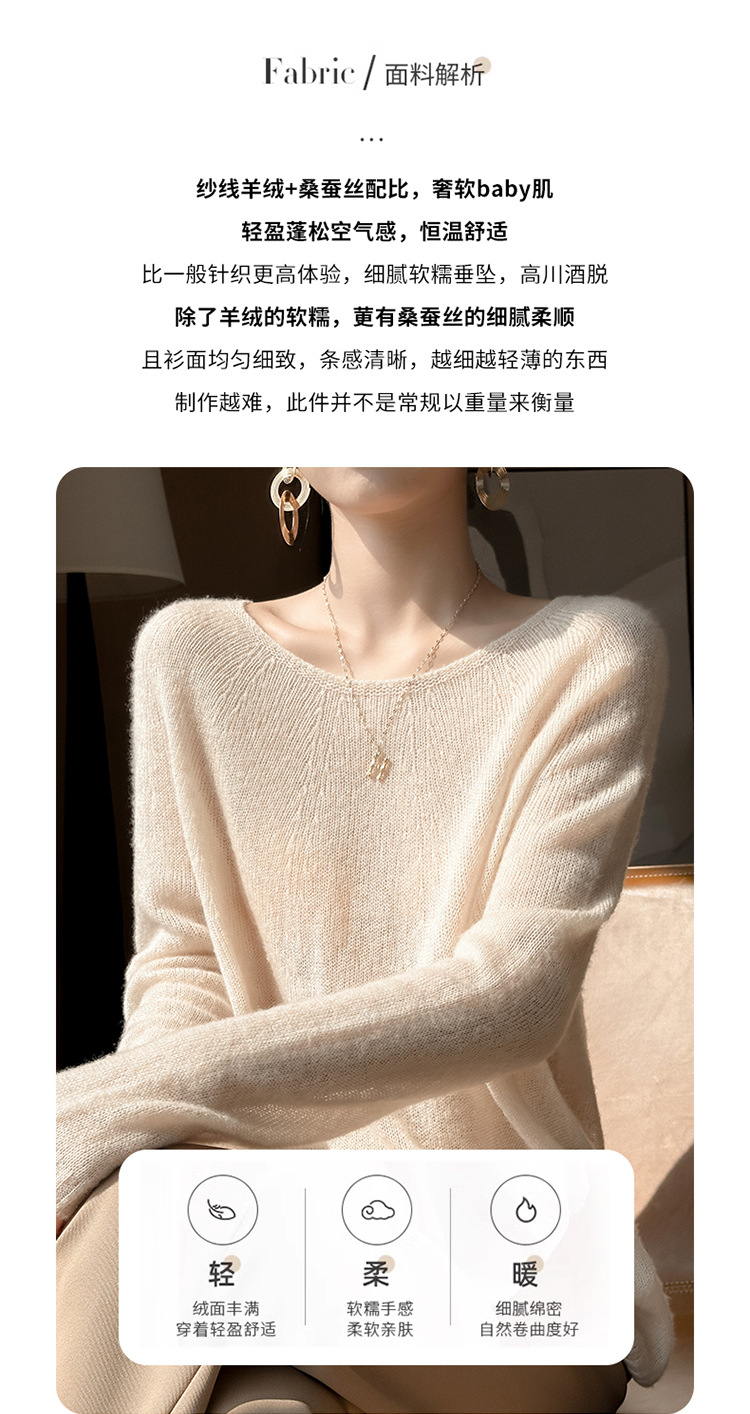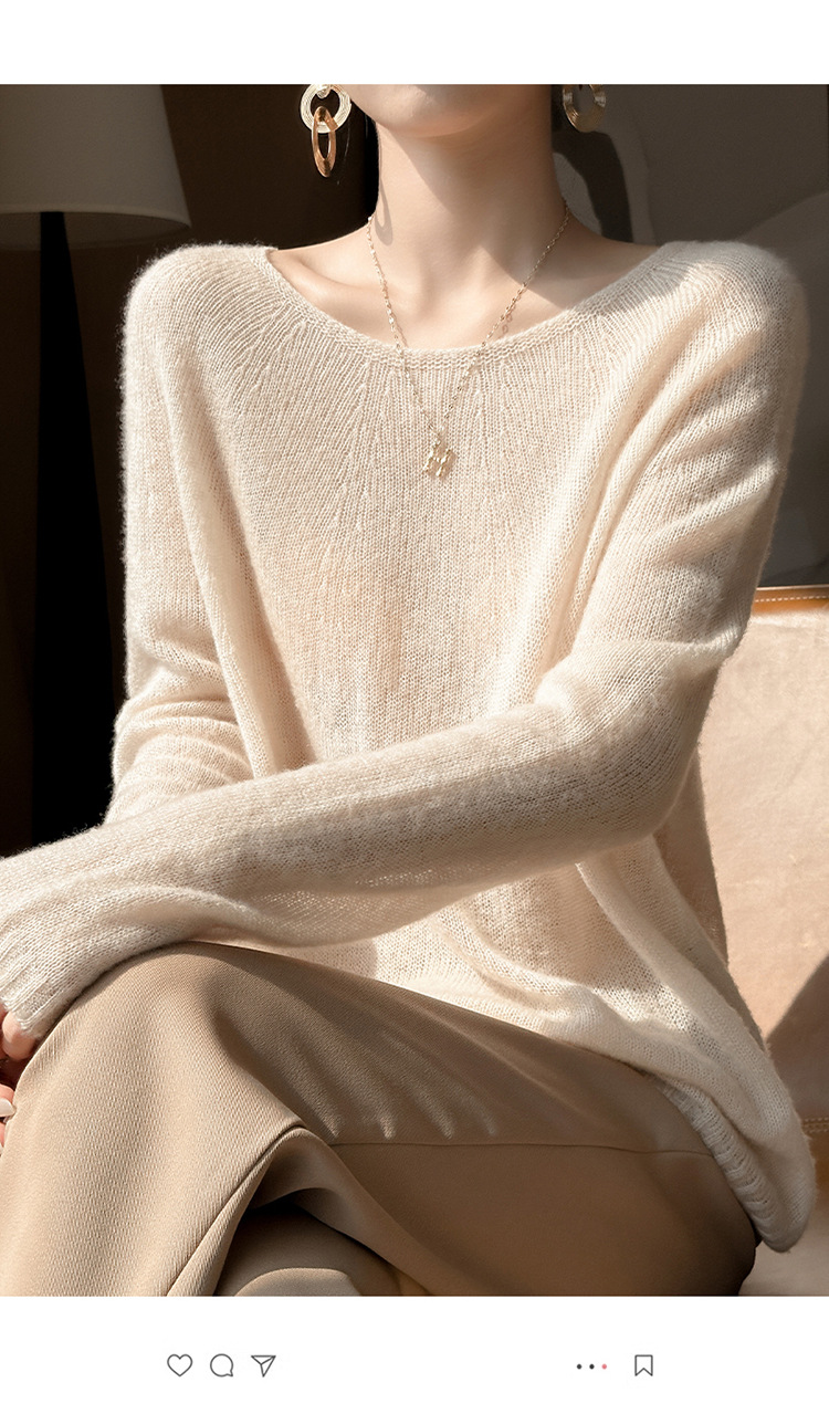 텐셀 캐시미어 여성용 2025 년 봄과 가을 새로운 1 차 의류 느슨한 게으른 스타일 니트 스웨터 크루 넥 스웨터