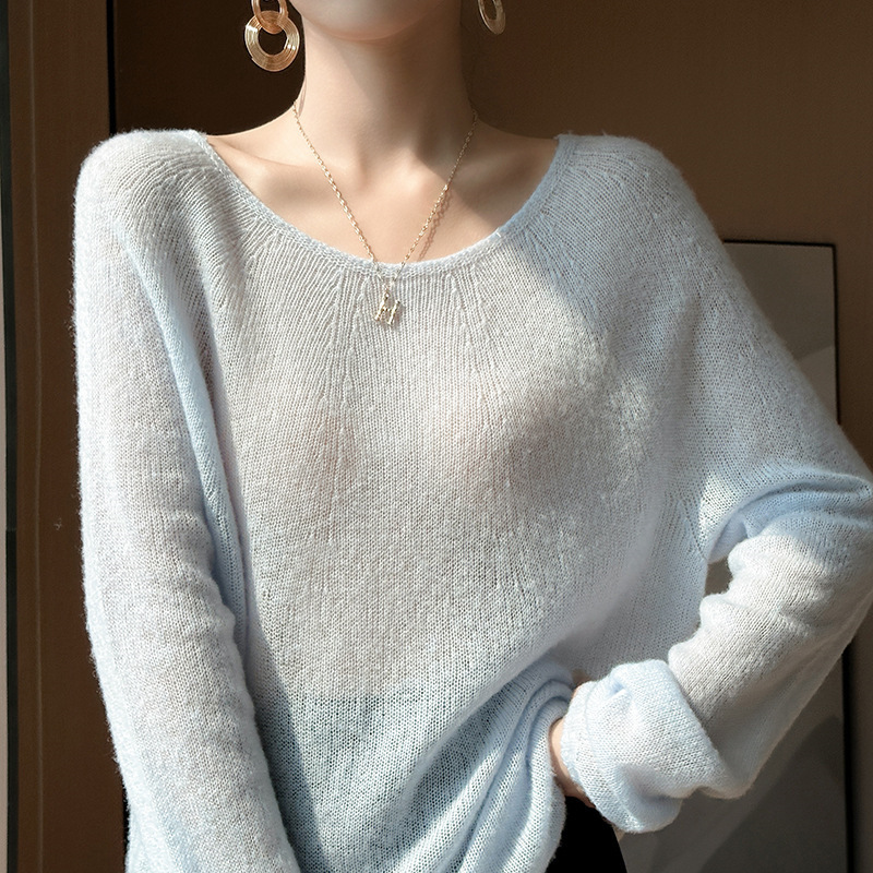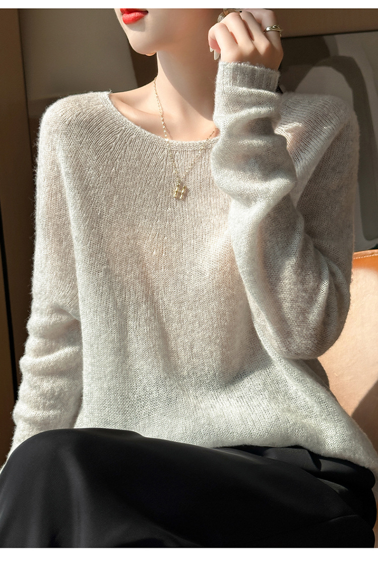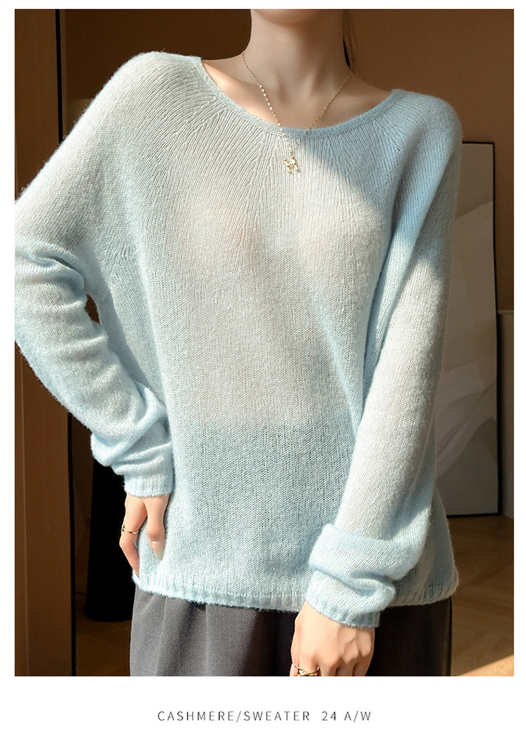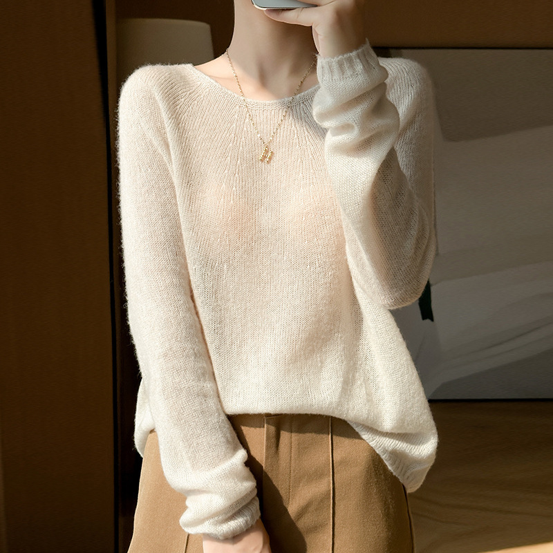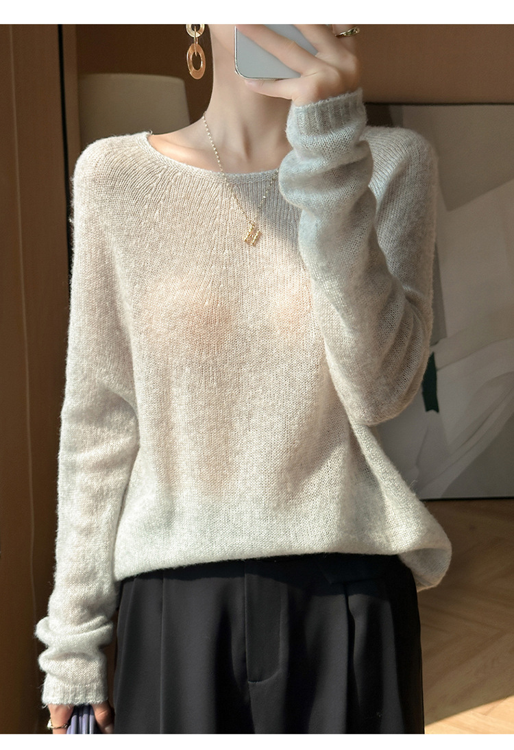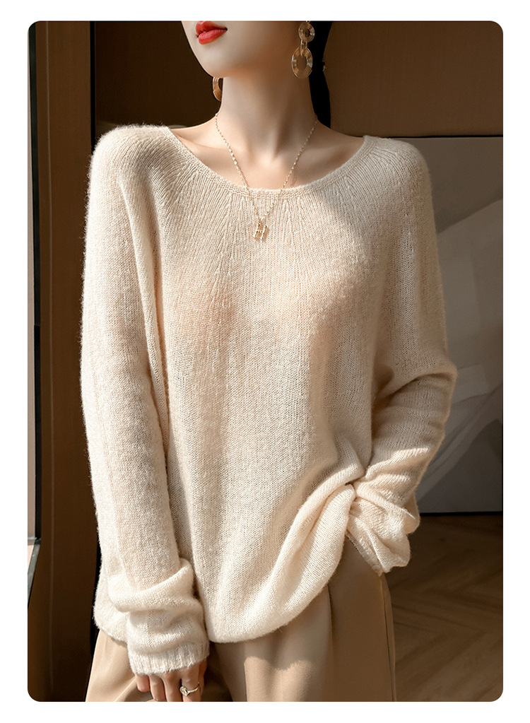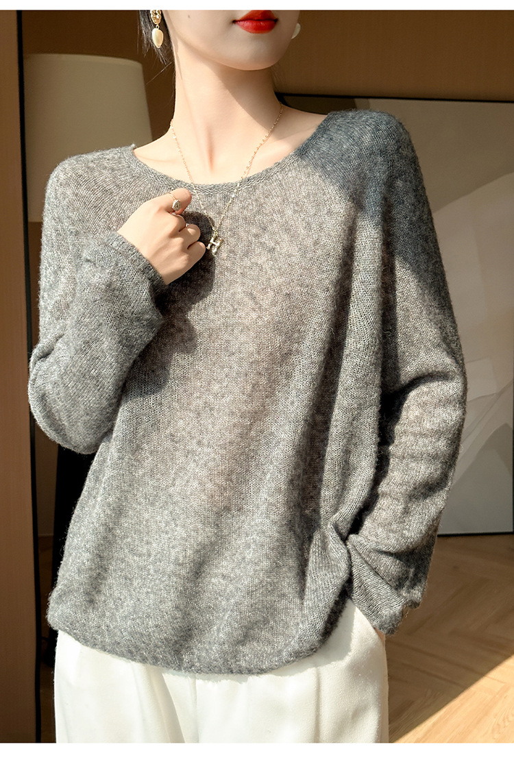 텐셀 캐시미어 여성용 2025 년 봄과 가을 새로운 1 차 의류 느슨한 게으른 스타일 니트 스웨터 크루 넥 스웨터
