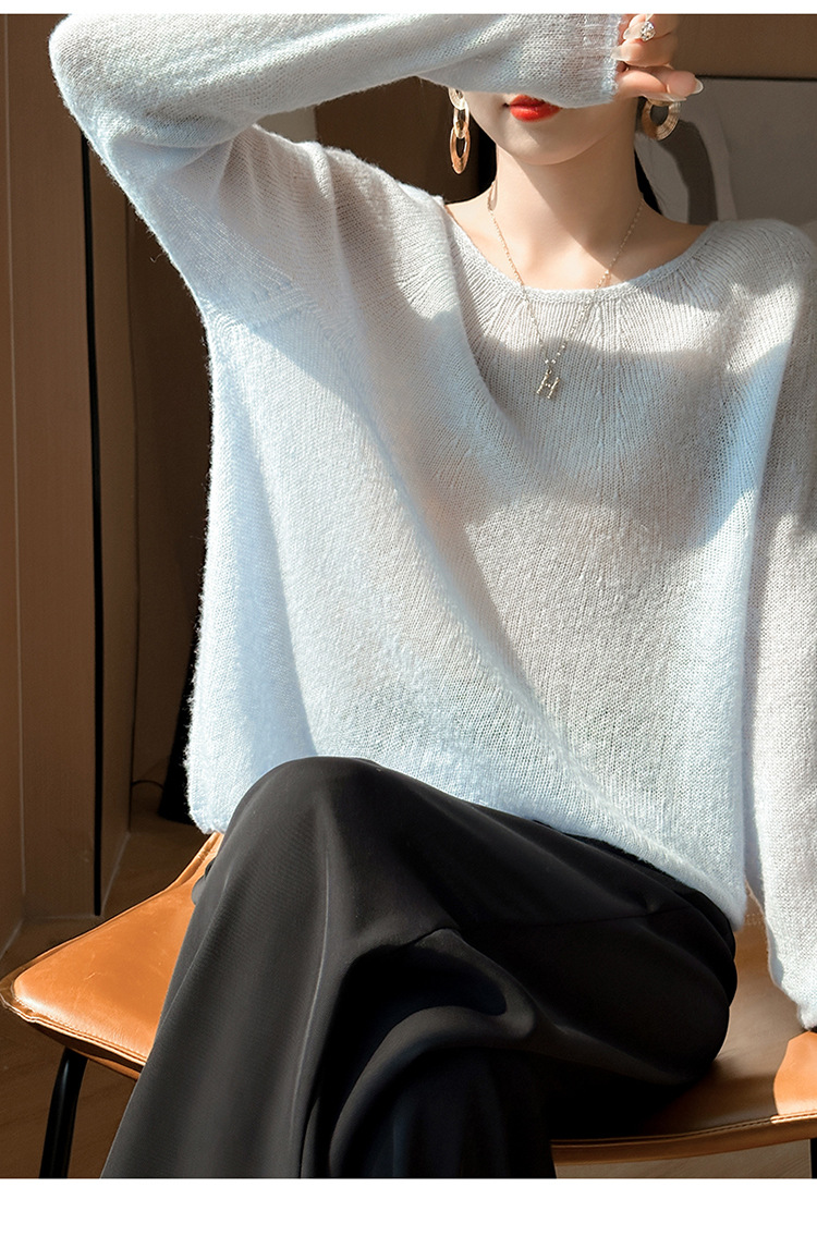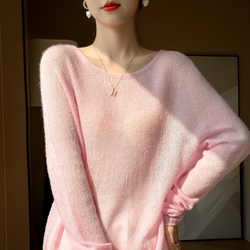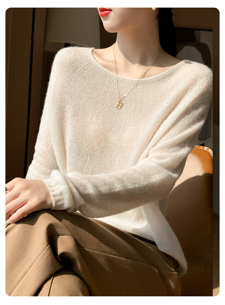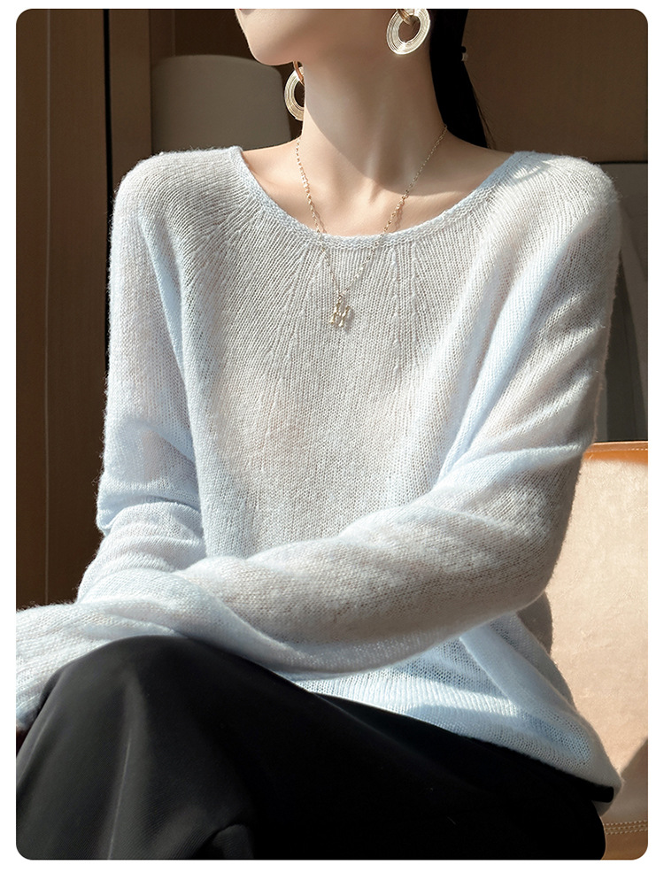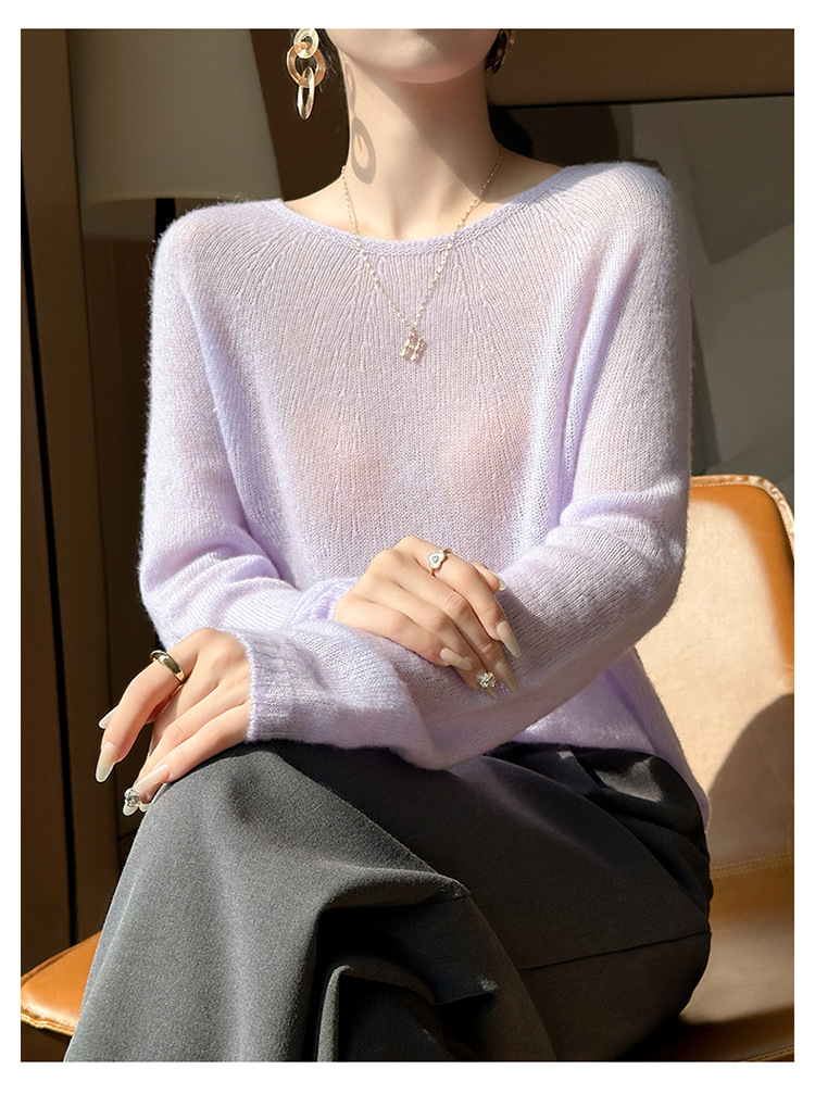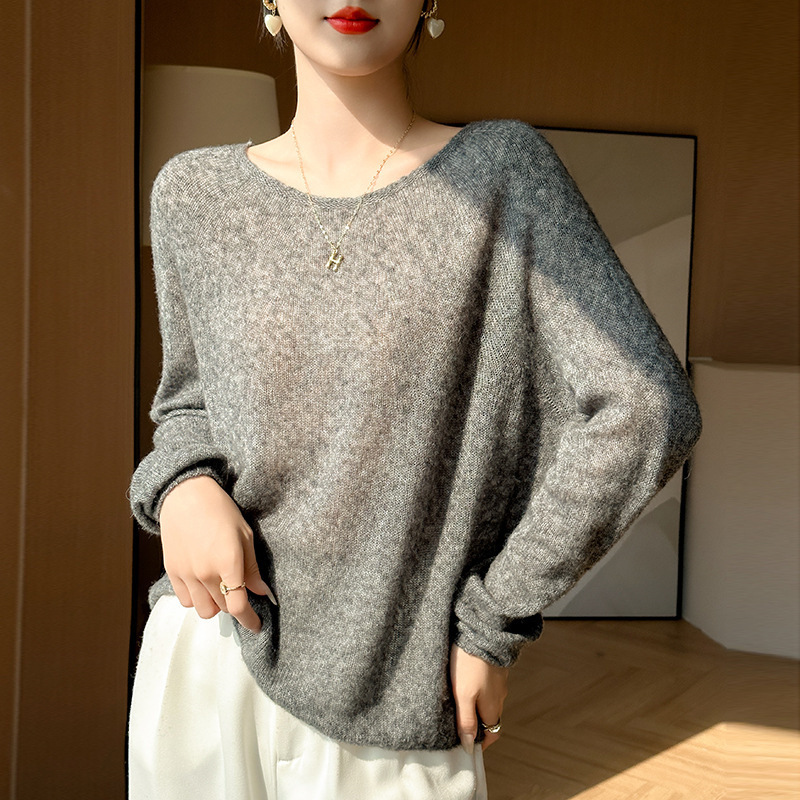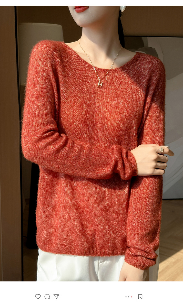 텐셀 캐시미어 여성용 2025 년 봄과 가을 새로운 1 차 의류 느슨한 게으른 스타일 니트 스웨터 크루 넥 스웨터