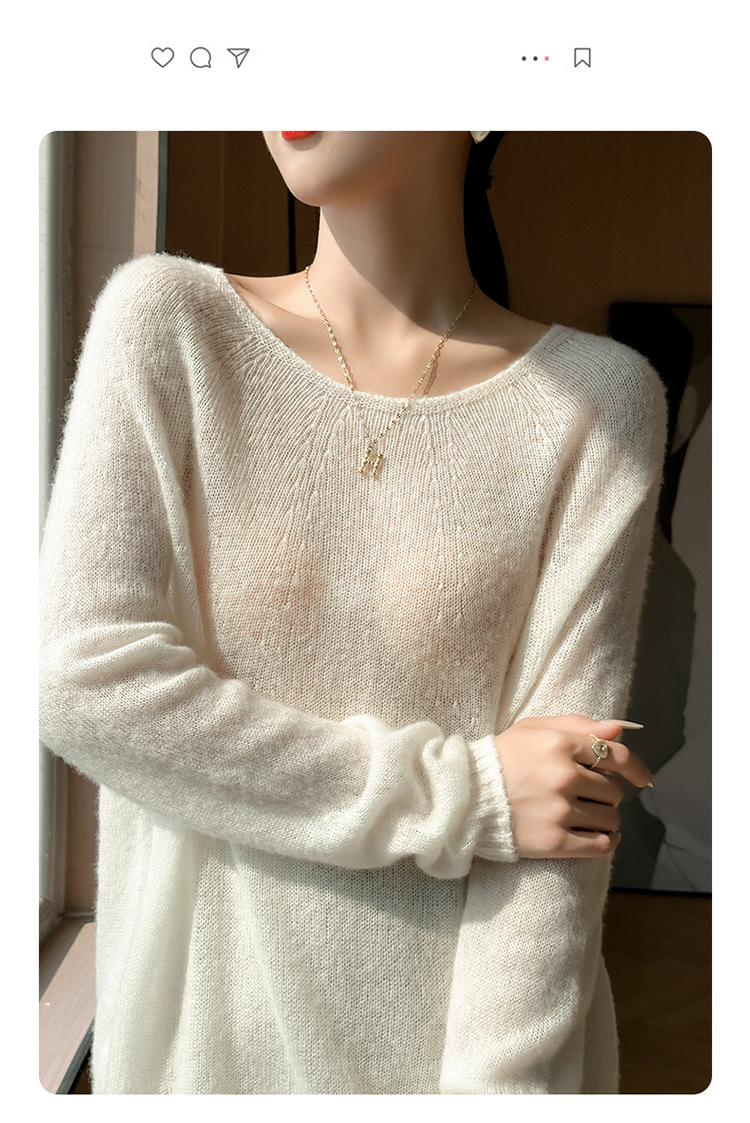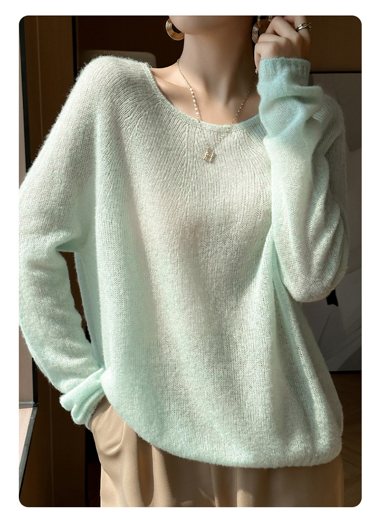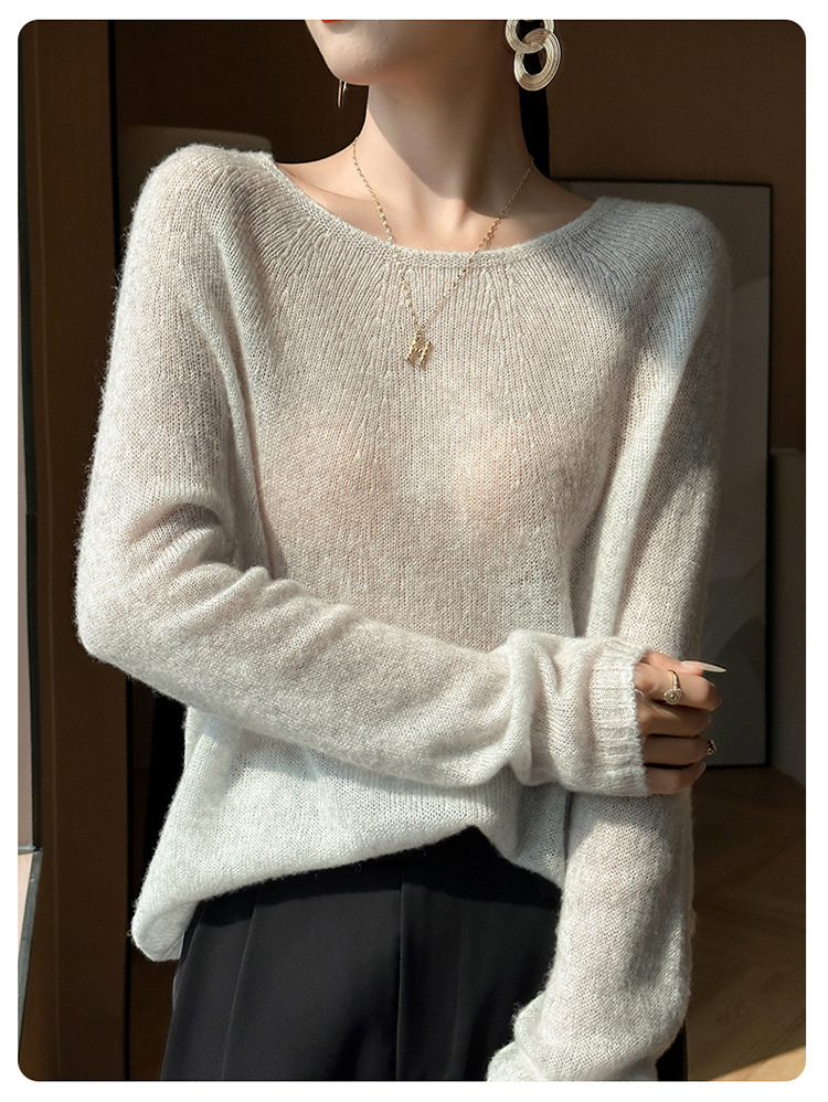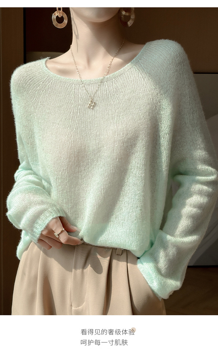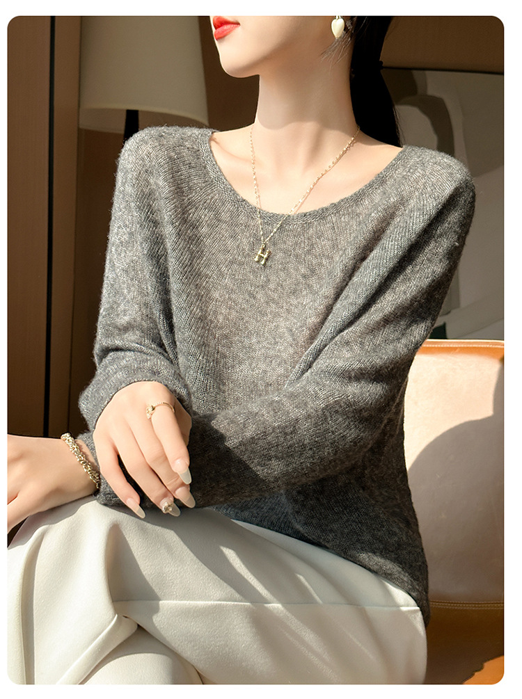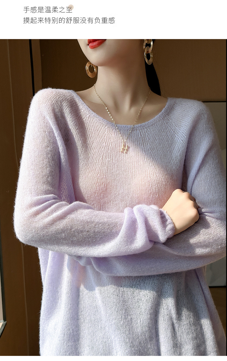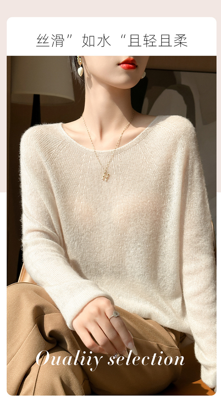 텐셀 캐시미어 여성용 2025 년 봄과 가을 새로운 1 차 의류 느슨한 게으른 스타일 니트 스웨터 크루 넥 스웨터