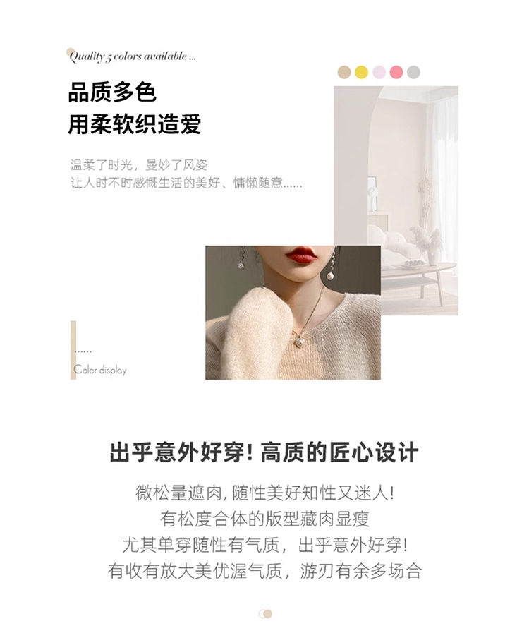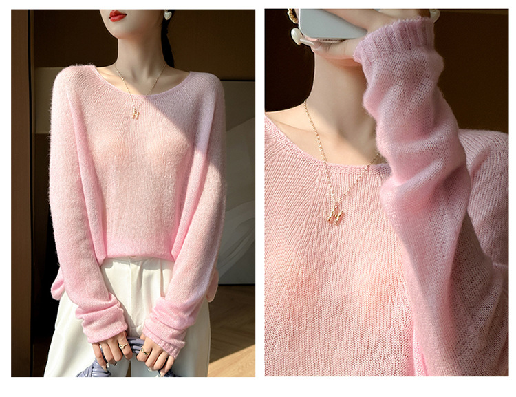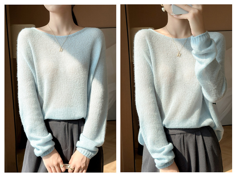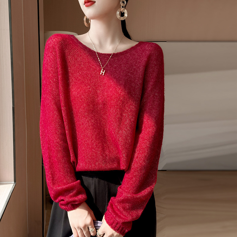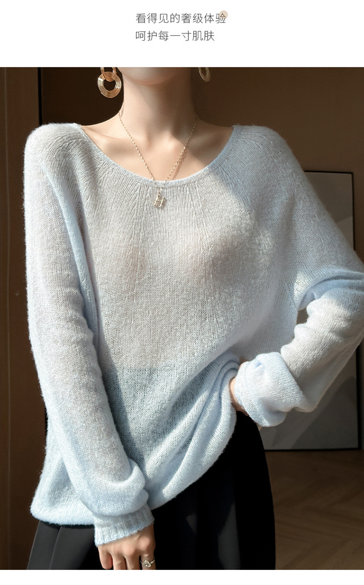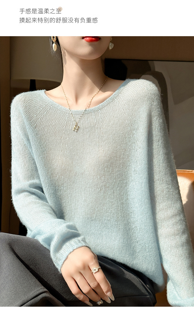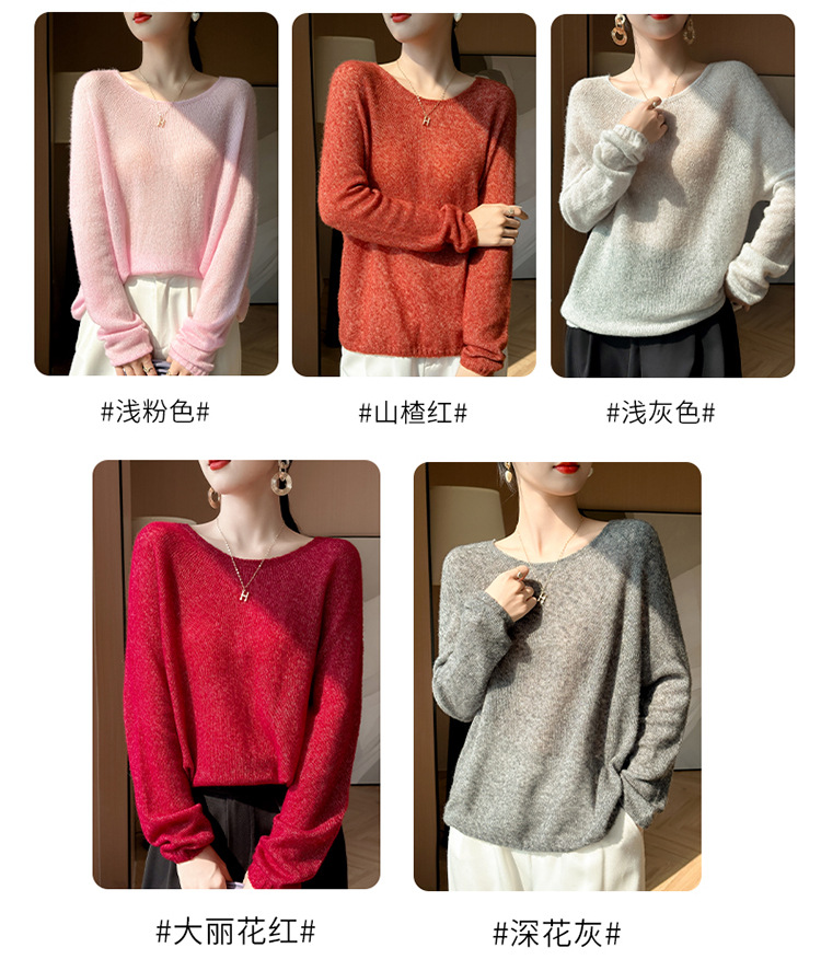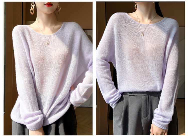 텐셀 캐시미어 여성용 2025 년 봄과 가을 새로운 1 차 의류 느슨한 게으른 스타일 니트 스웨터 크루 넥 스웨터