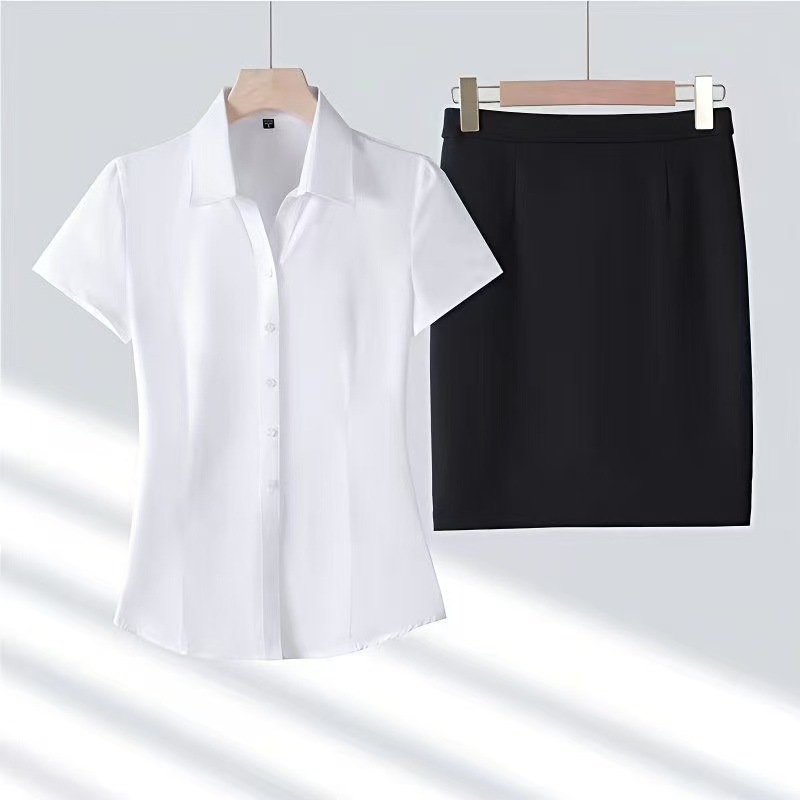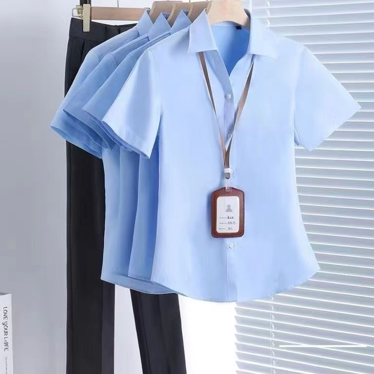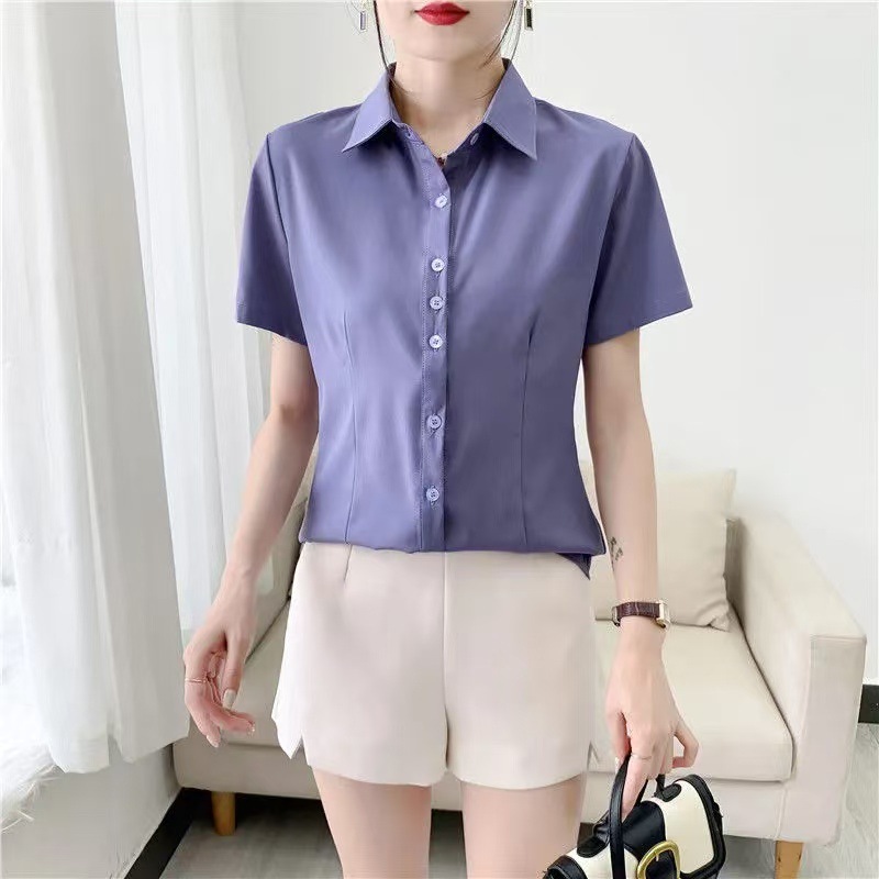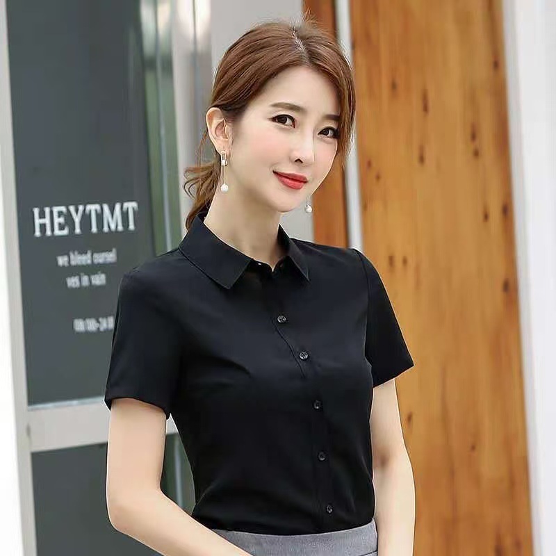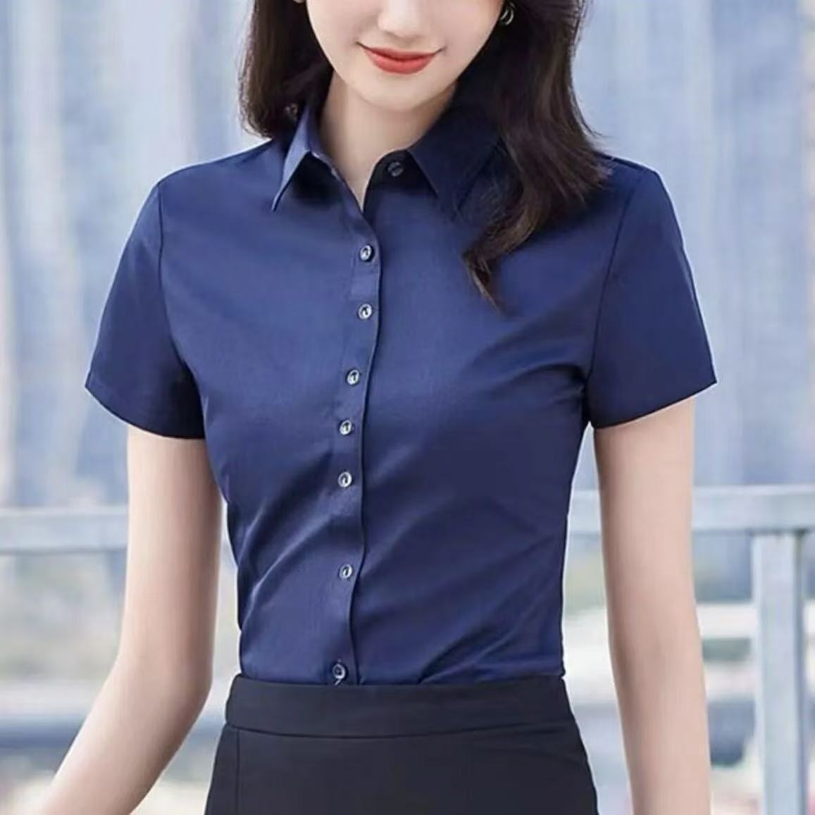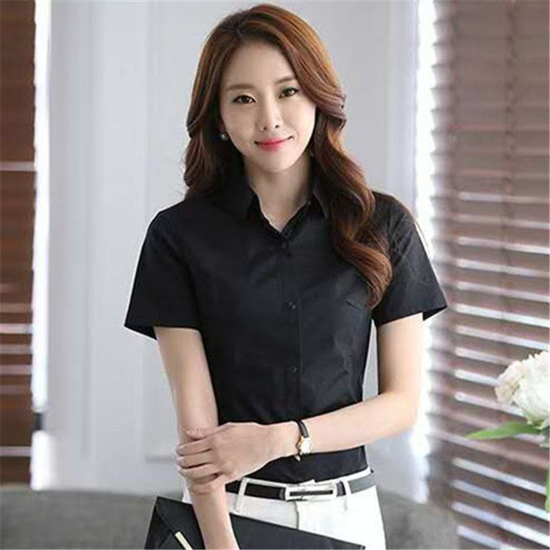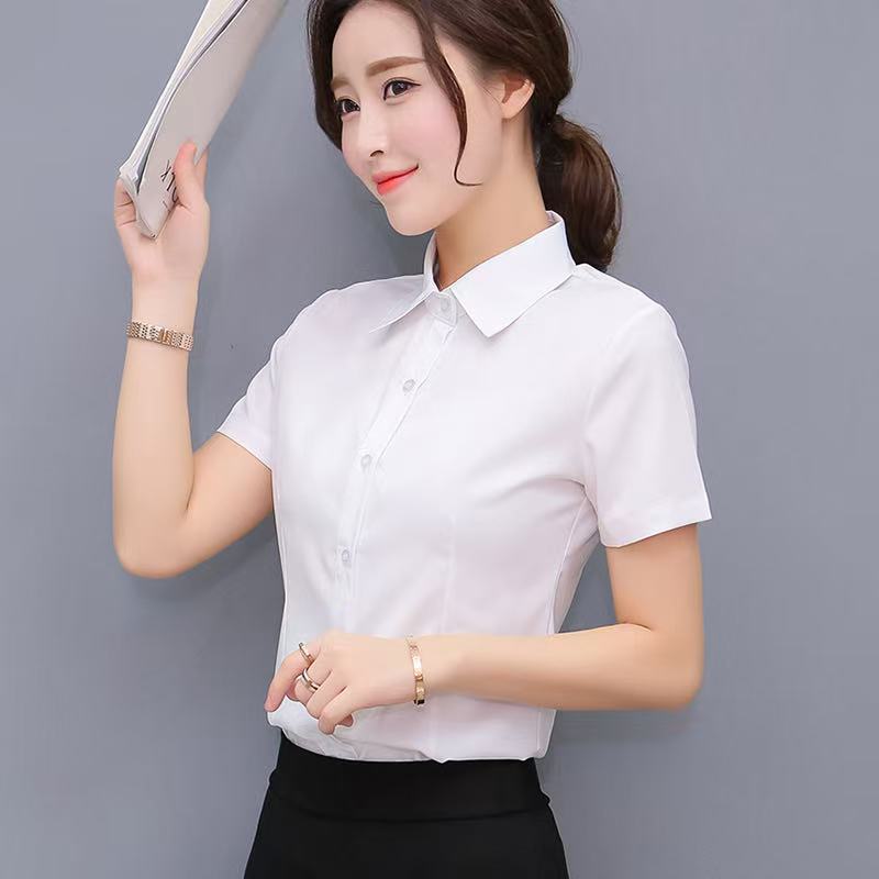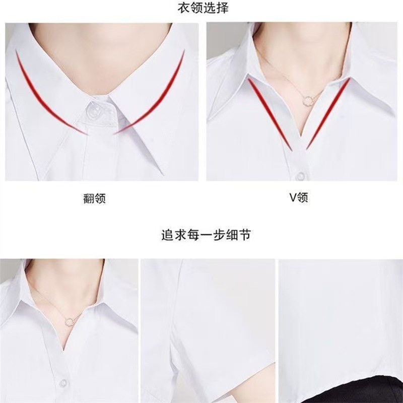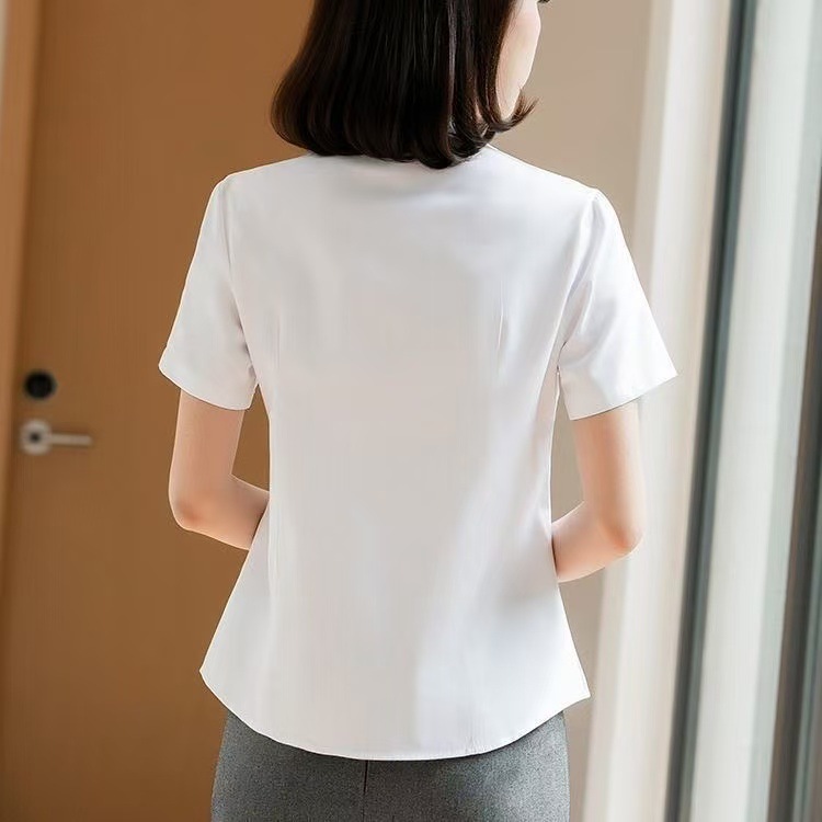 여름 얇은 흰색 셔츠 여성의 반팔 V 넥 전문 공식 원피스 슬림 핏 마이크로 총알 비 철 작업복 공장에서 대량으로스토어 가기
