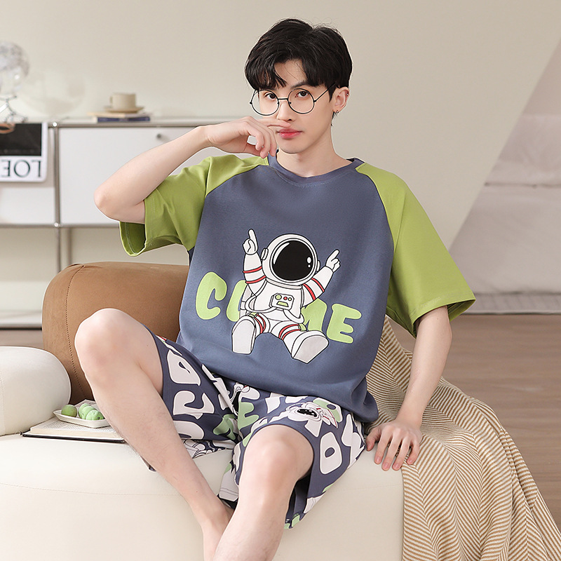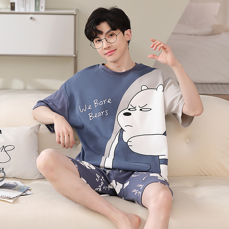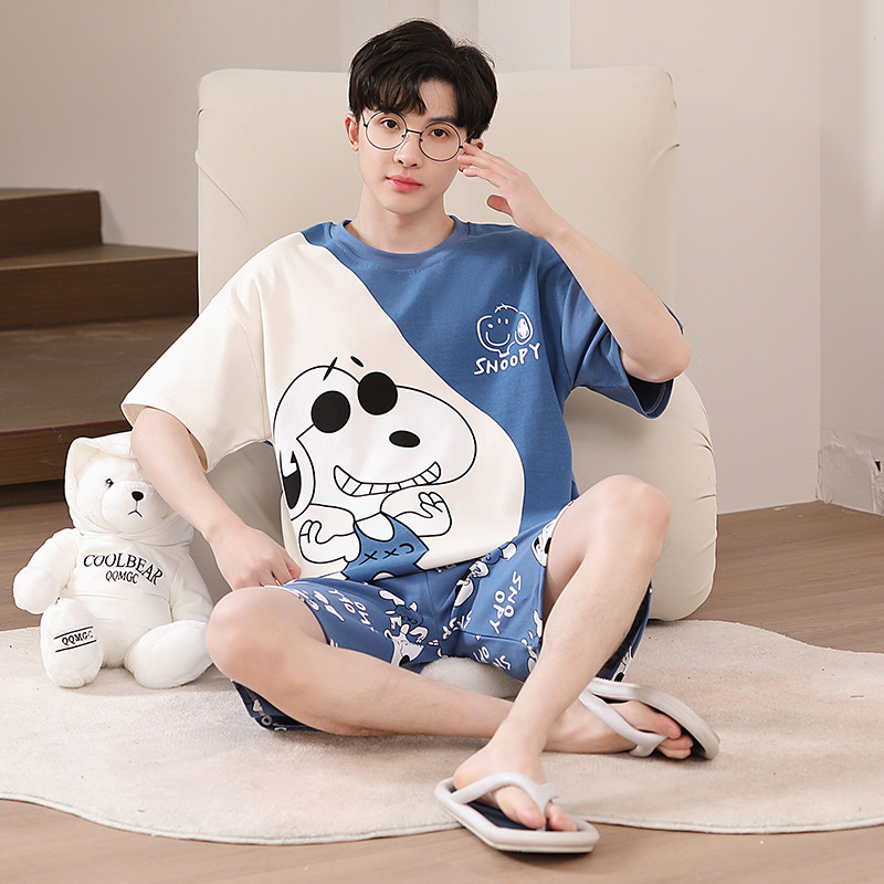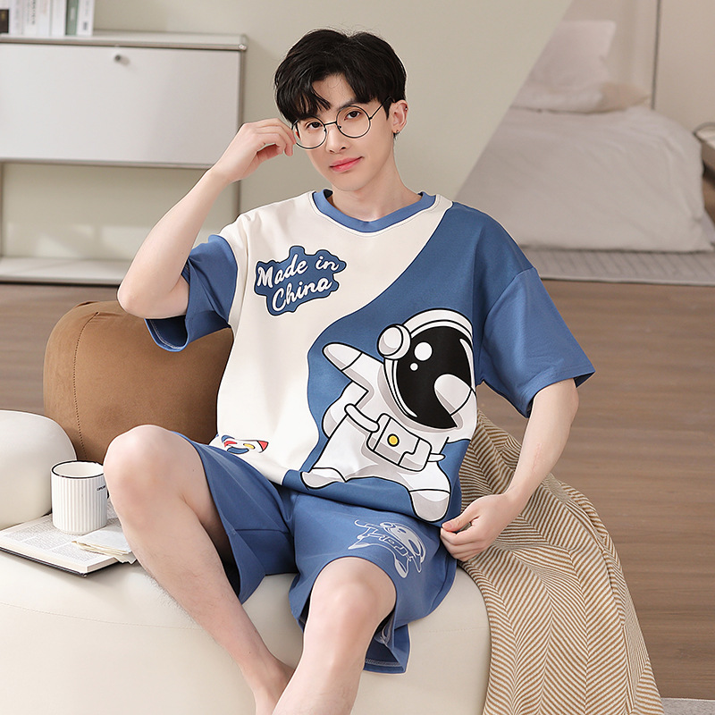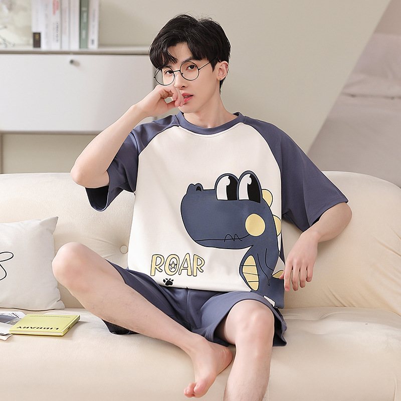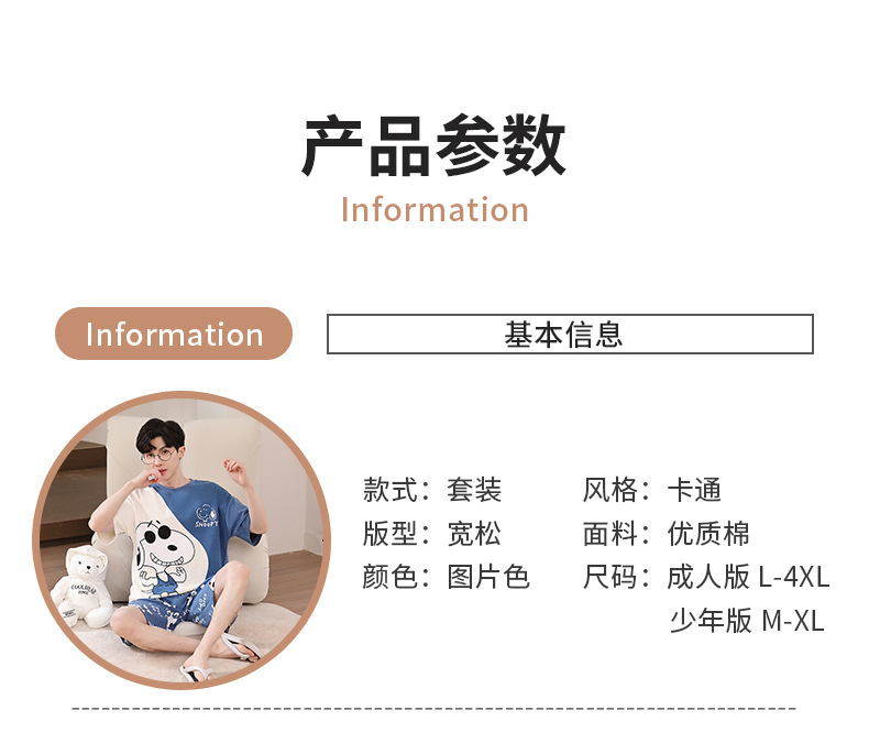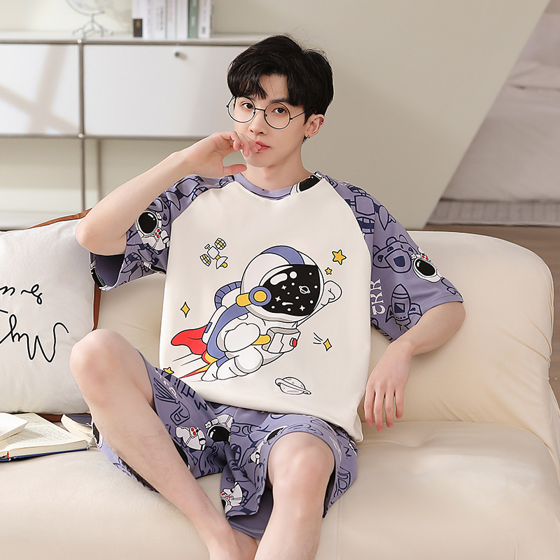 2025 새로운 남자 잠옷 여름 얇은 순수면 짧은 소매 아이스 실크 플러스 사이즈 십대 소년 큰 아이들 세트스토어 가기