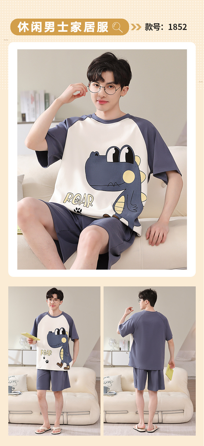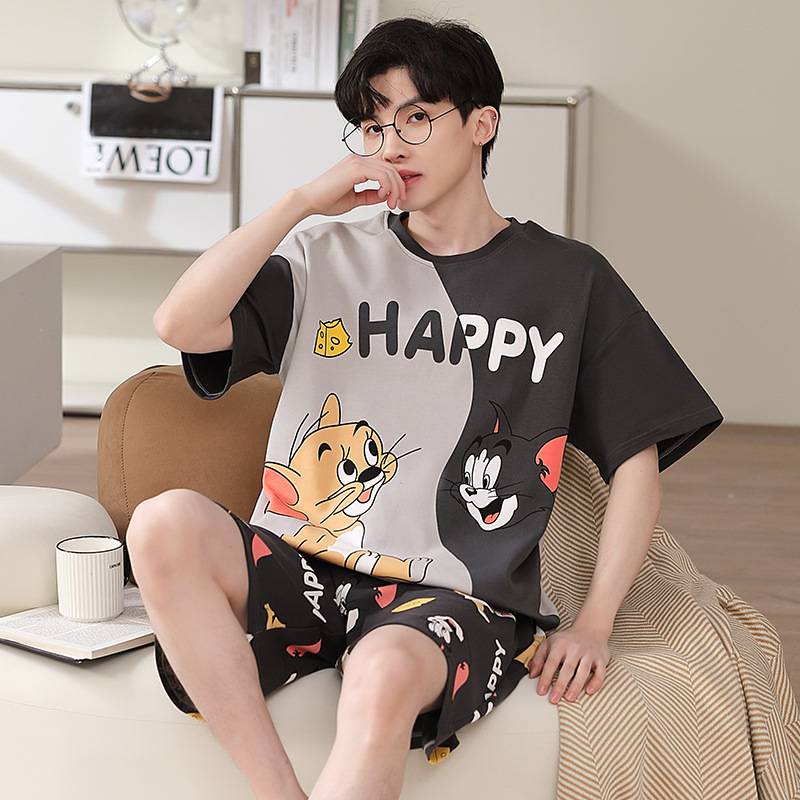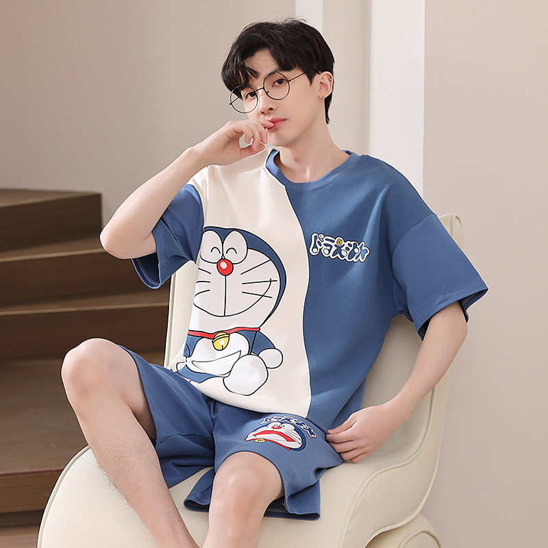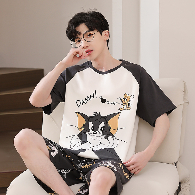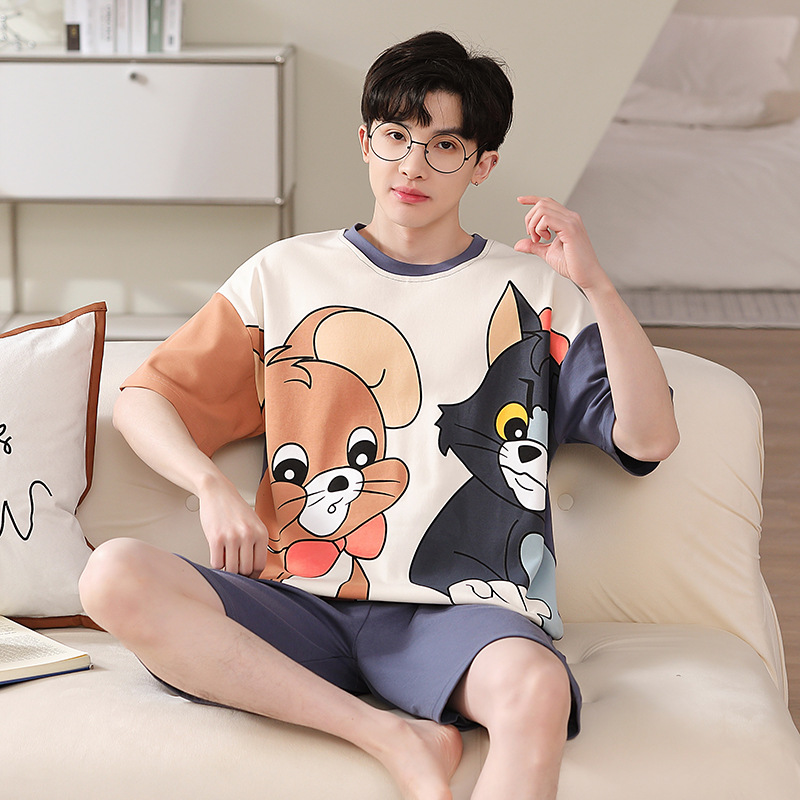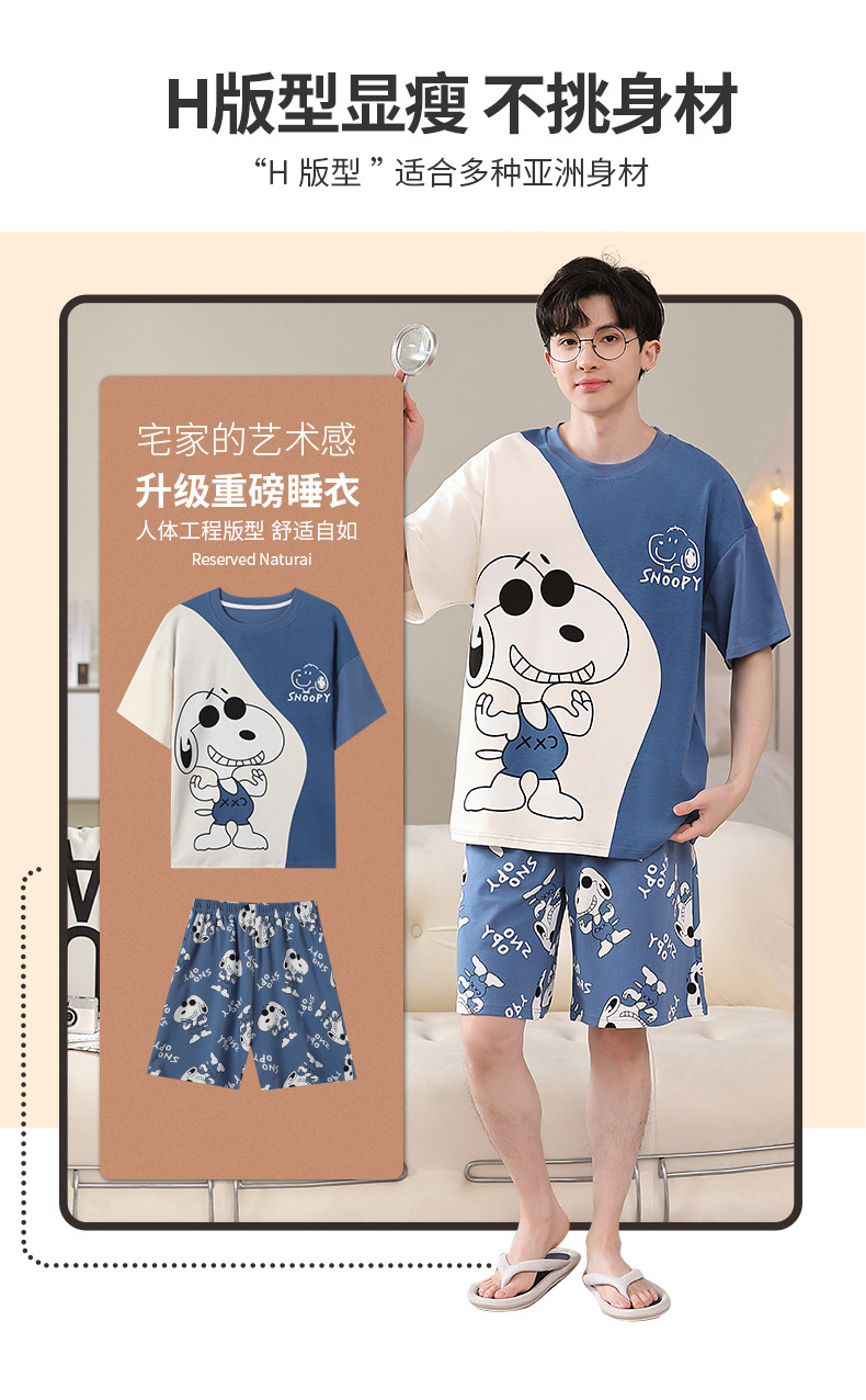 2025 새로운 남자 잠옷 여름 얇은 순수면 짧은 소매 아이스 실크 플러스 사이즈 십대 소년 큰 아이들 세트스토어 가기