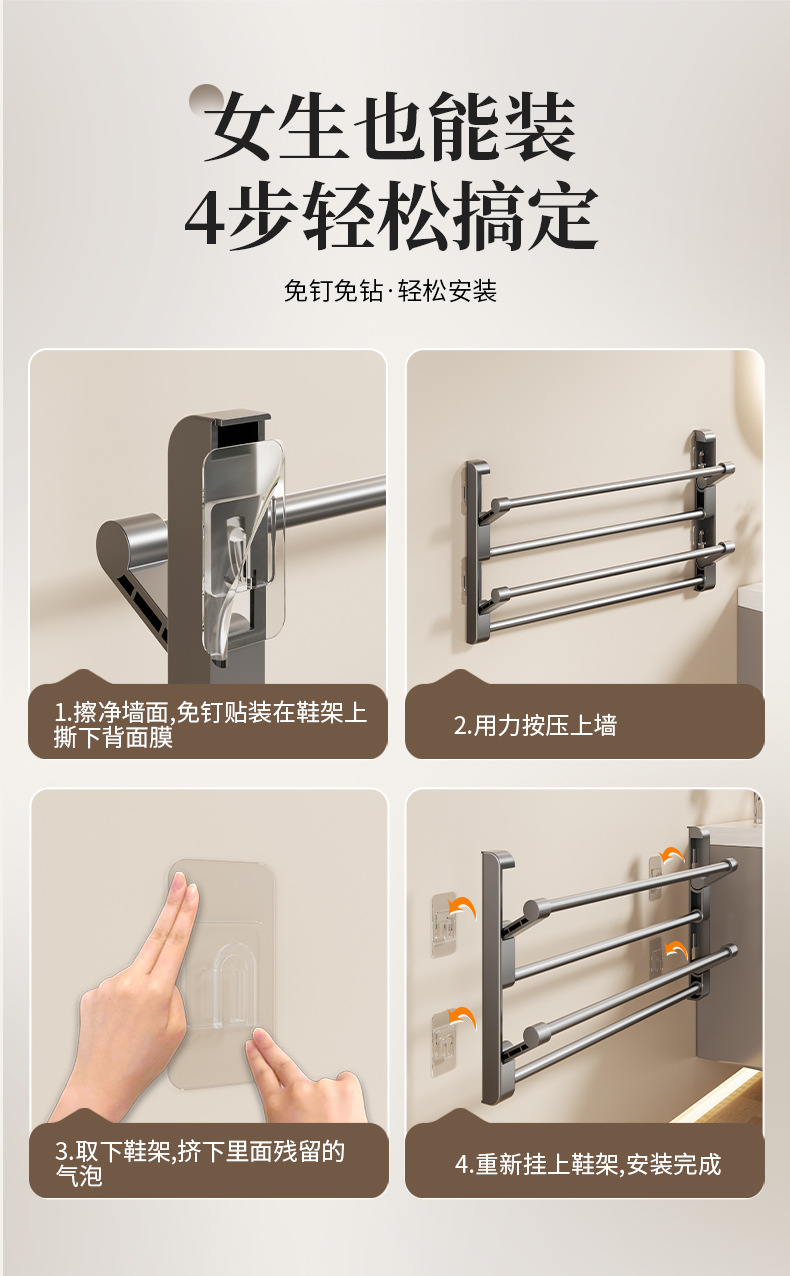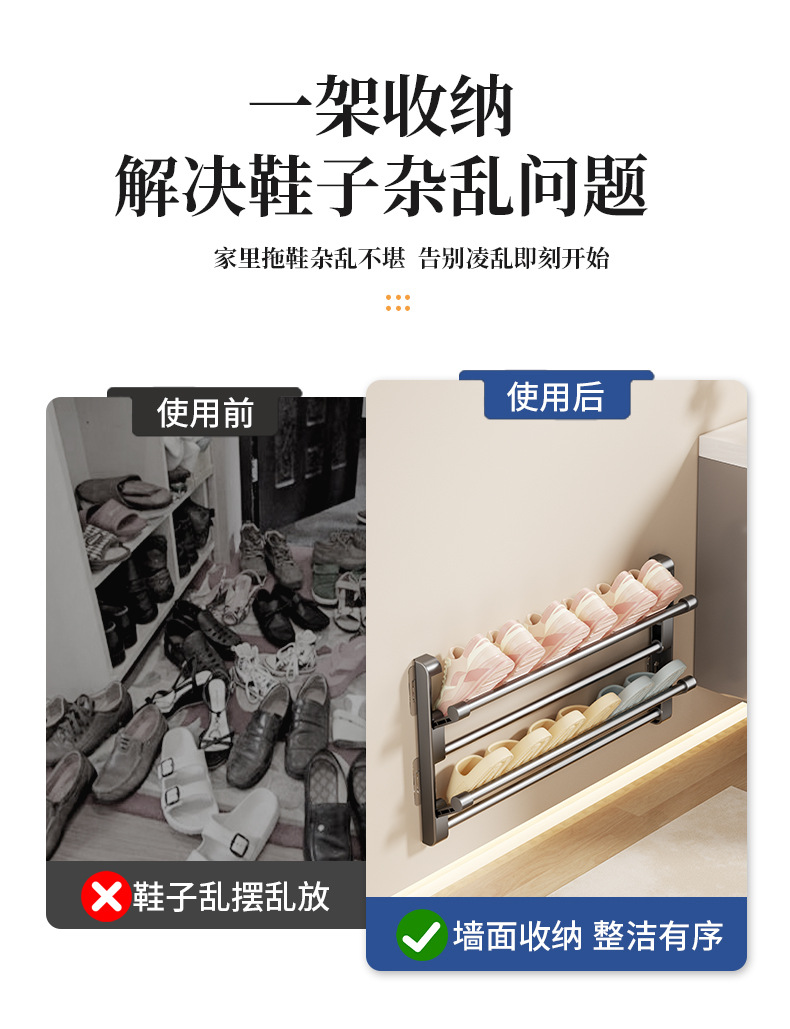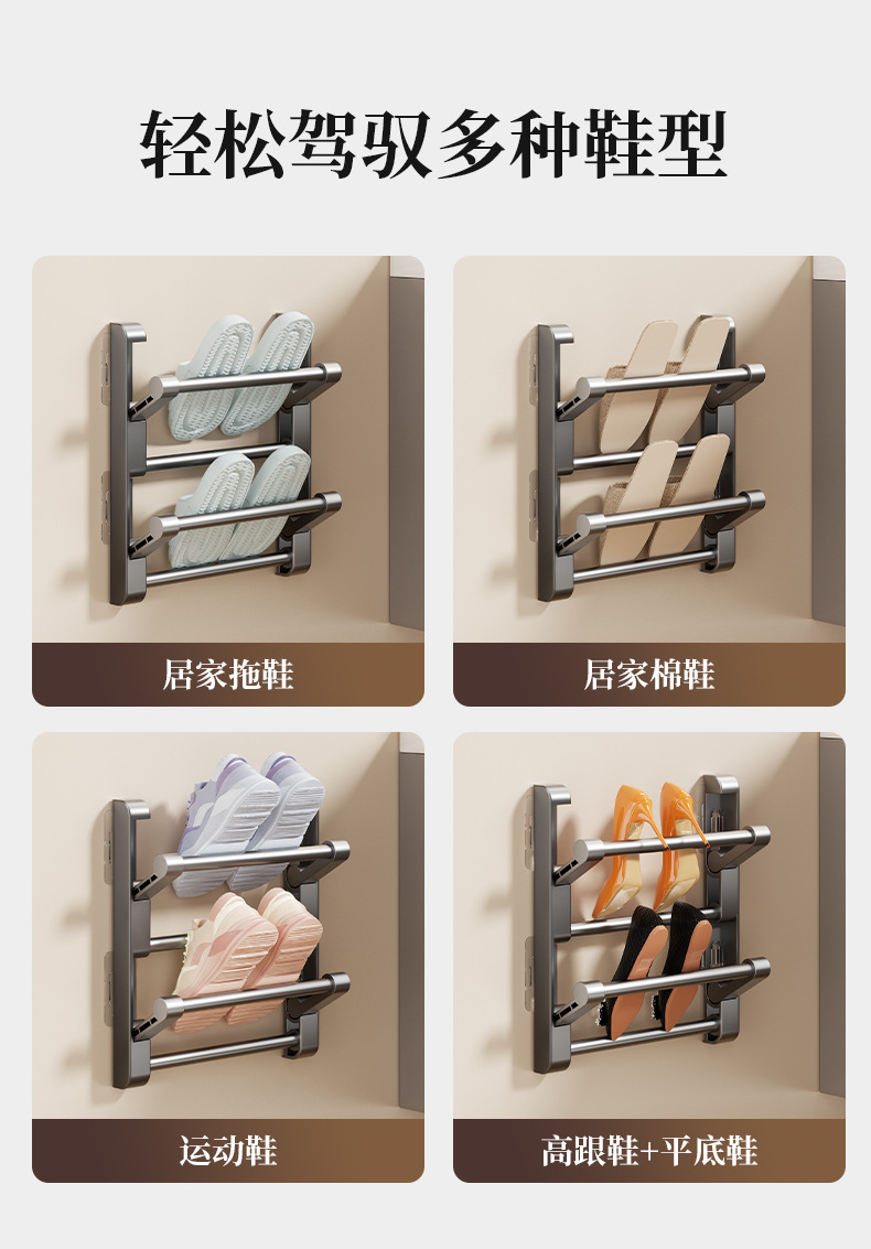 펀치없는 접이식 신발 랙 펀치 무료 욕실 도어 후면 신발 랙 벽 욕실 다층 신발 보관 랙