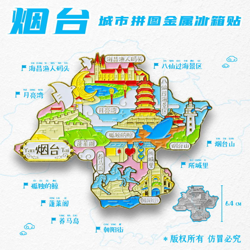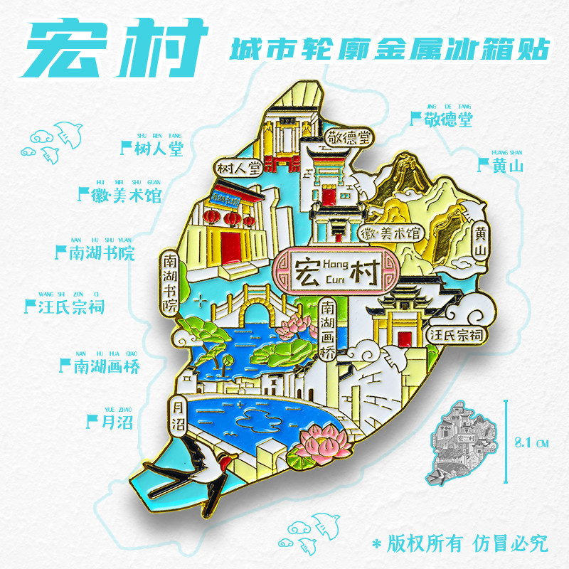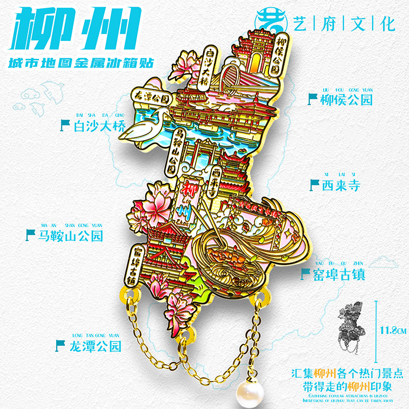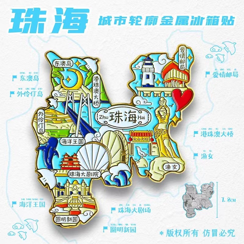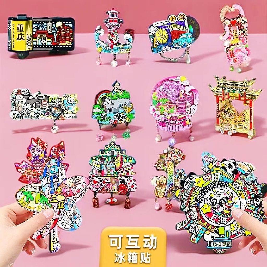 3 월 새로운 금속 냉장고 스티커 테이프 관광 기념품 Hainan Wuhan Zhuhai Xi 'an Shanghai Guangzhou