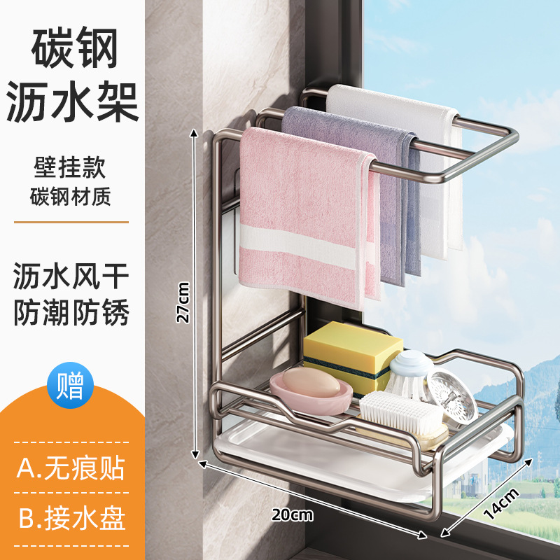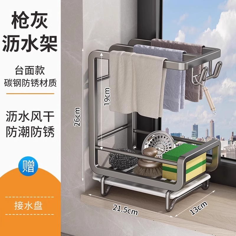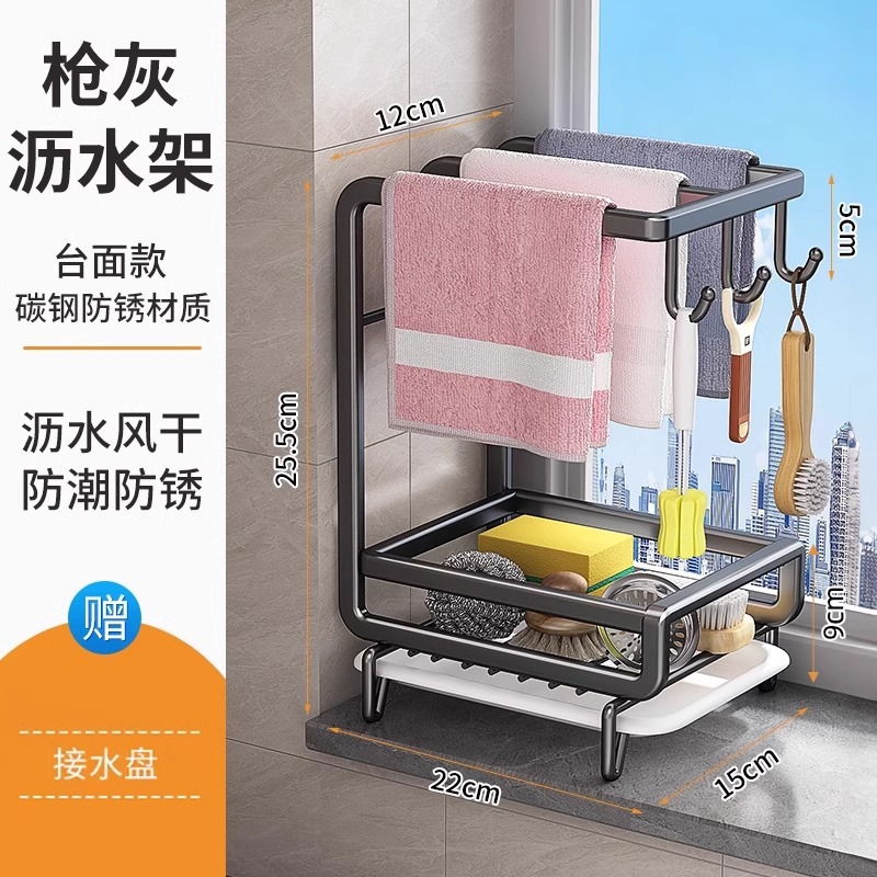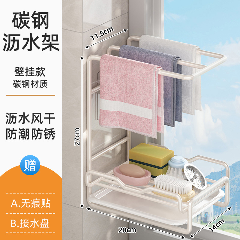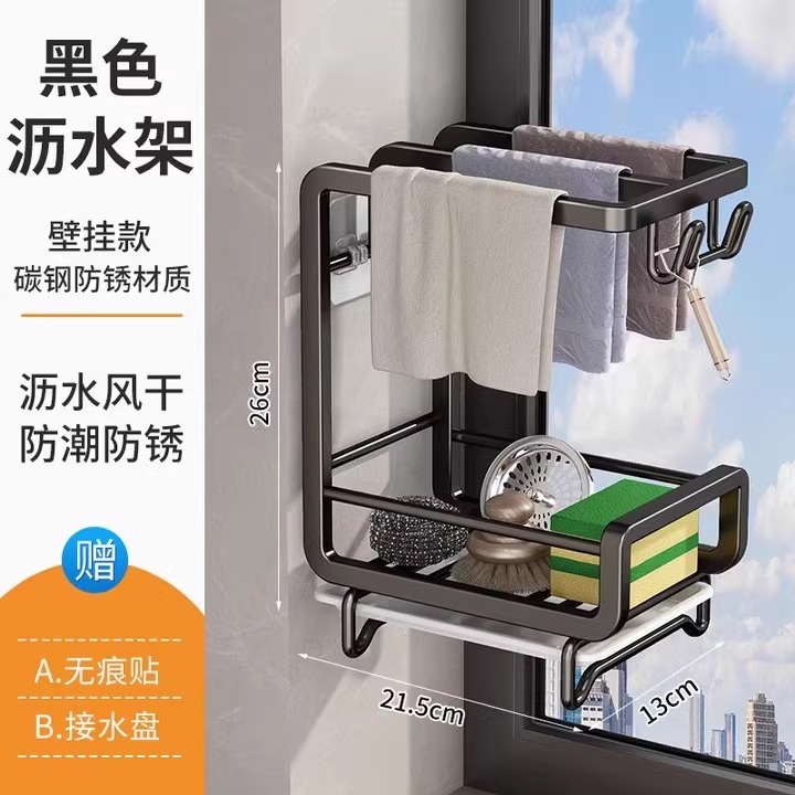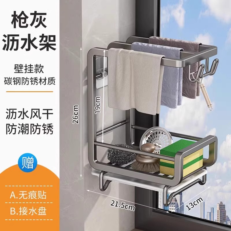 새로운 주방 수납 선반, 다기능 물빠짐 선반, 무타공 탁상형/벽걸이형 수건/싱크대 수납 걸레걸이
