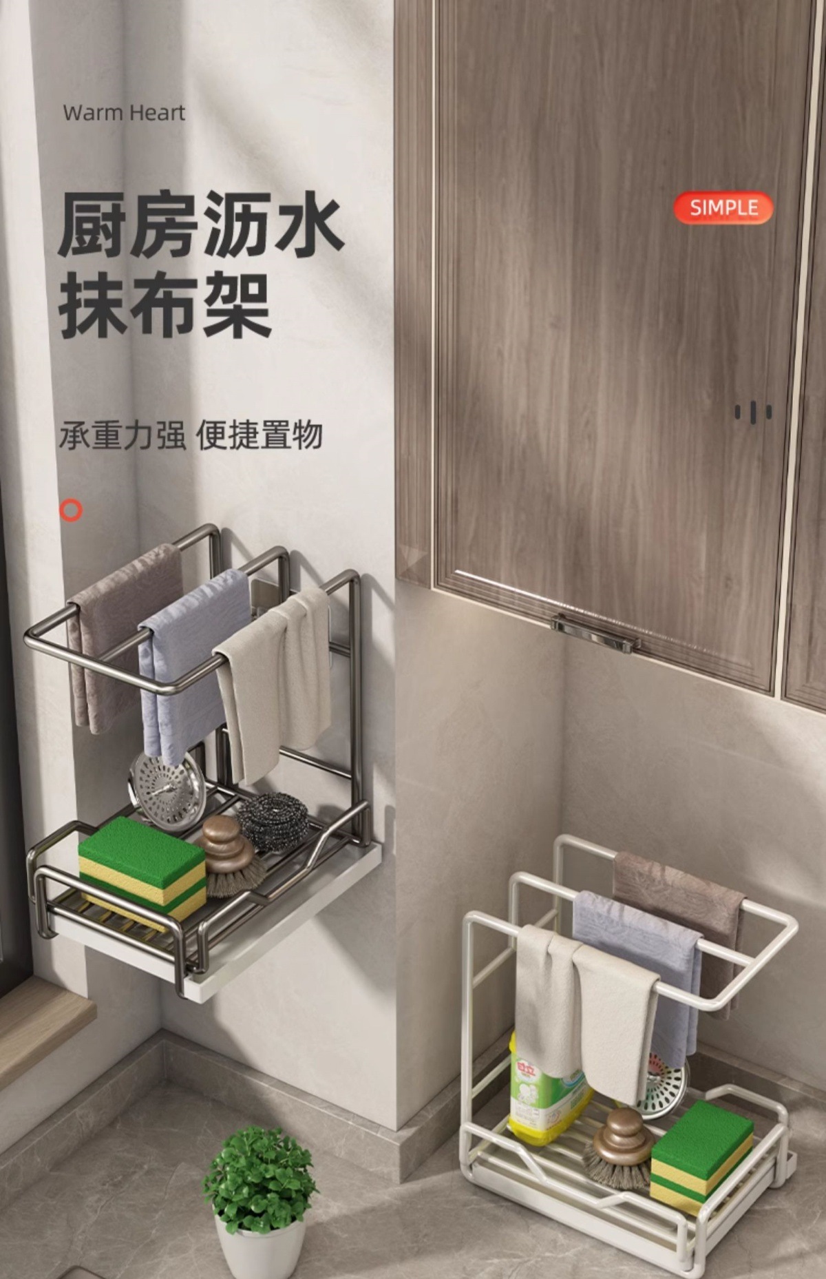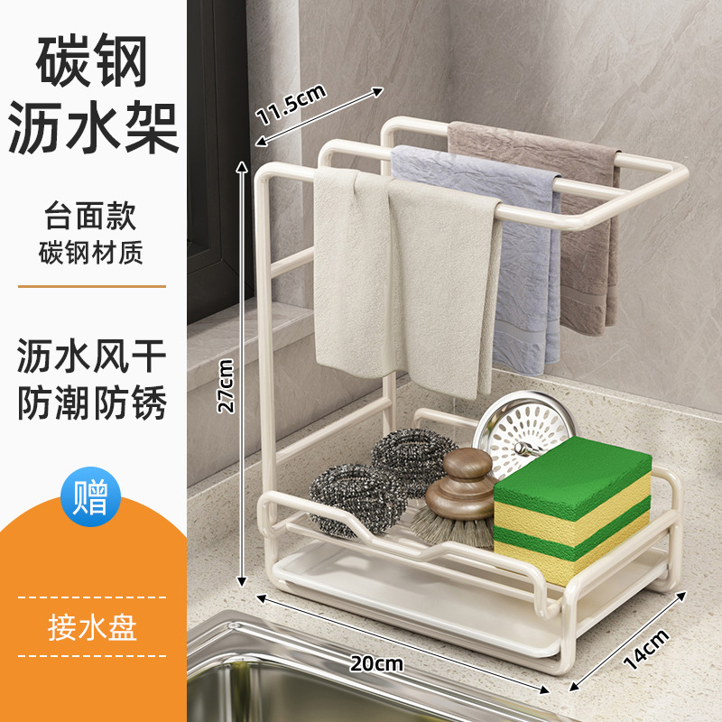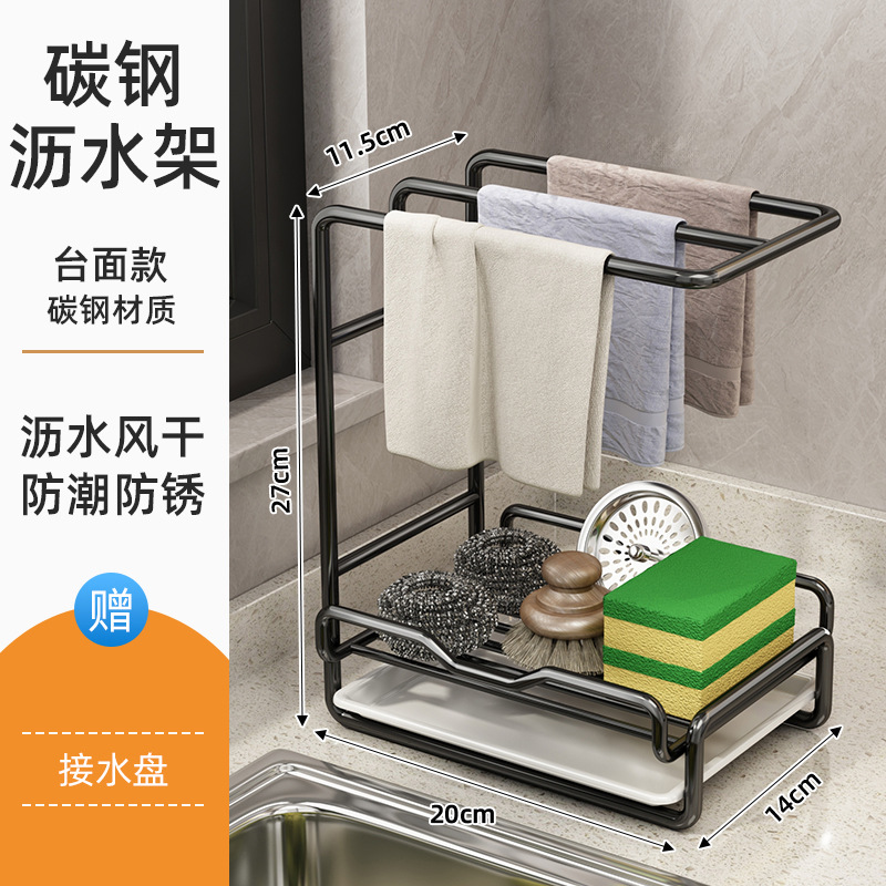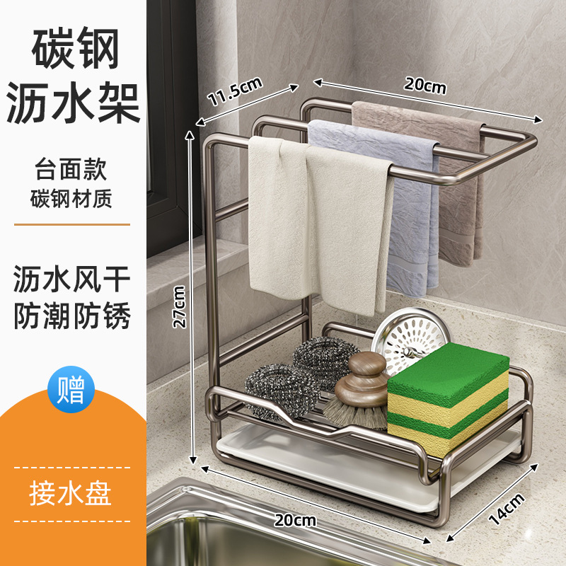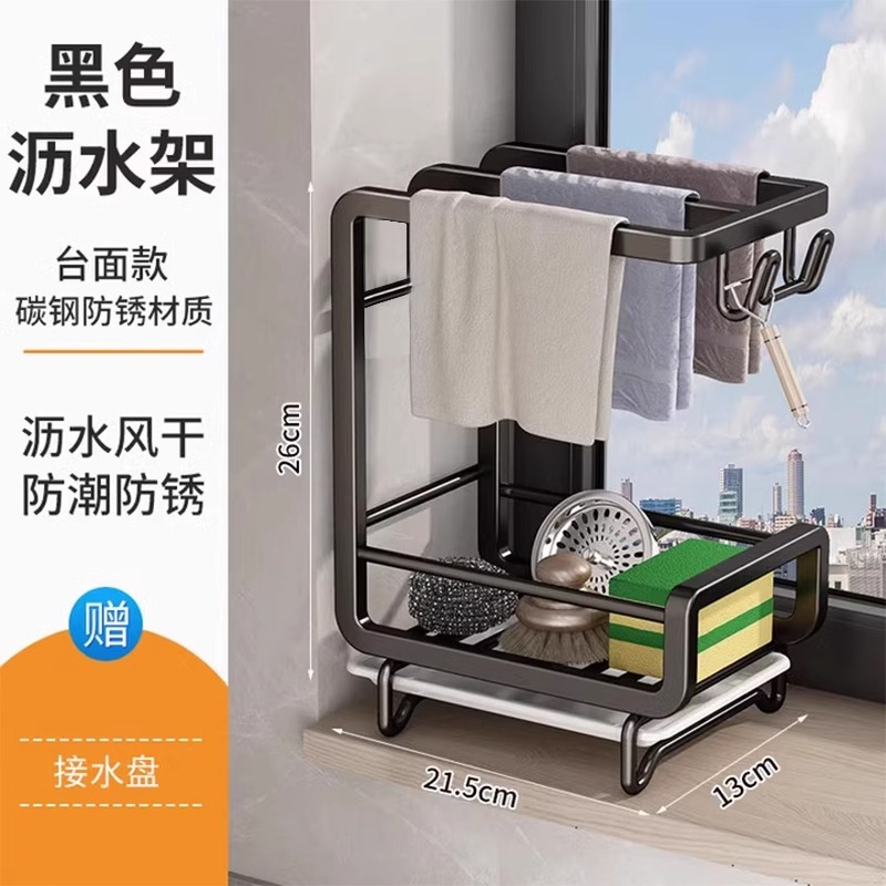 새로운 주방 수납 선반, 다기능 물빠짐 선반, 무타공 탁상형/벽걸이형 수건/싱크대 수납 걸레걸이