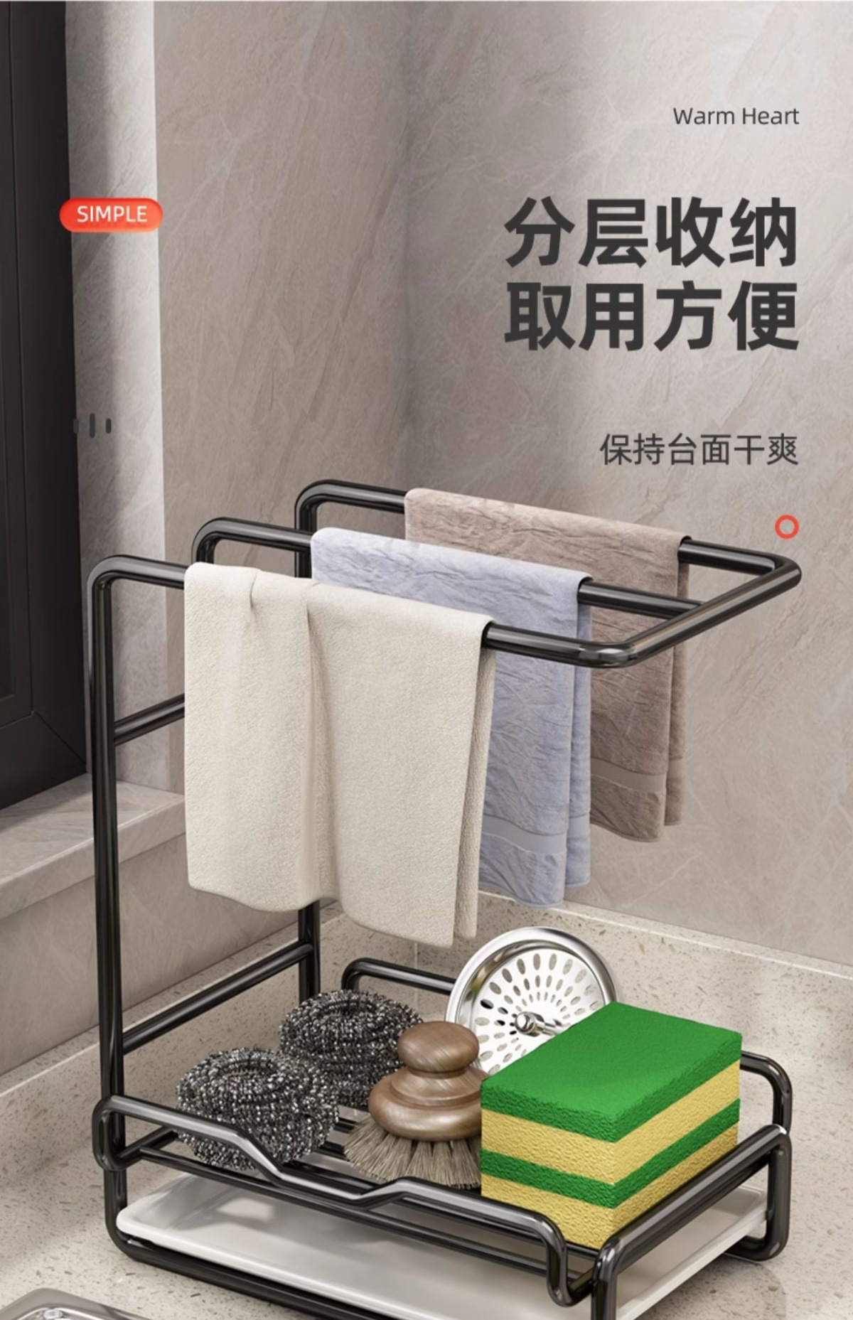 새로운 주방 수납 선반, 다기능 물빠짐 선반, 무타공 탁상형/벽걸이형 수건/싱크대 수납 걸레걸이스토어 가기